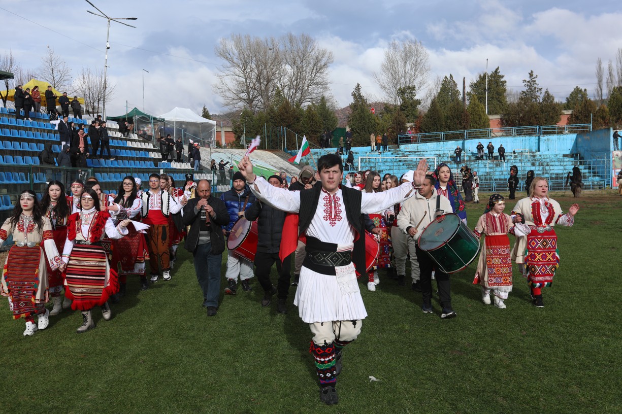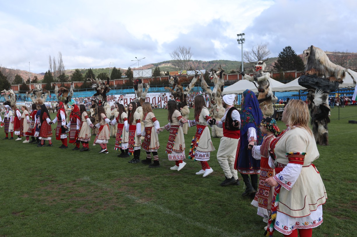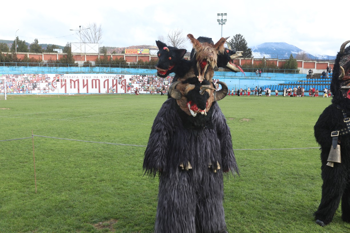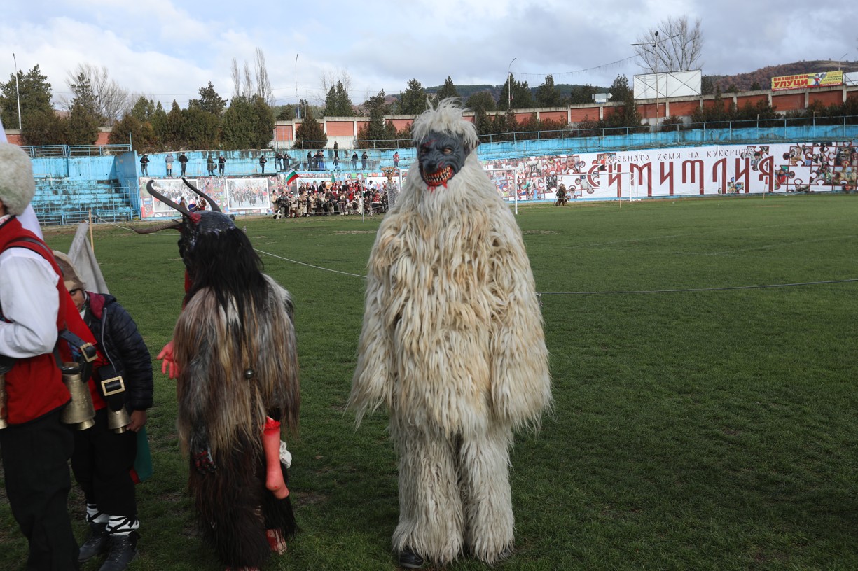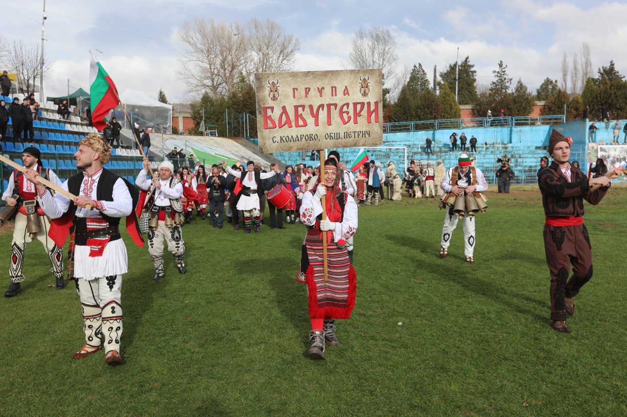 В първия фестивален ден на кукерския празник в Симитлия – древната земя на кукерите – дефилираха осемдесетата група участници, като специално внимание привлекоха бабугерите от село Коларово, община Петрич, с ръководител кметът на селото Евгени Мицков.
