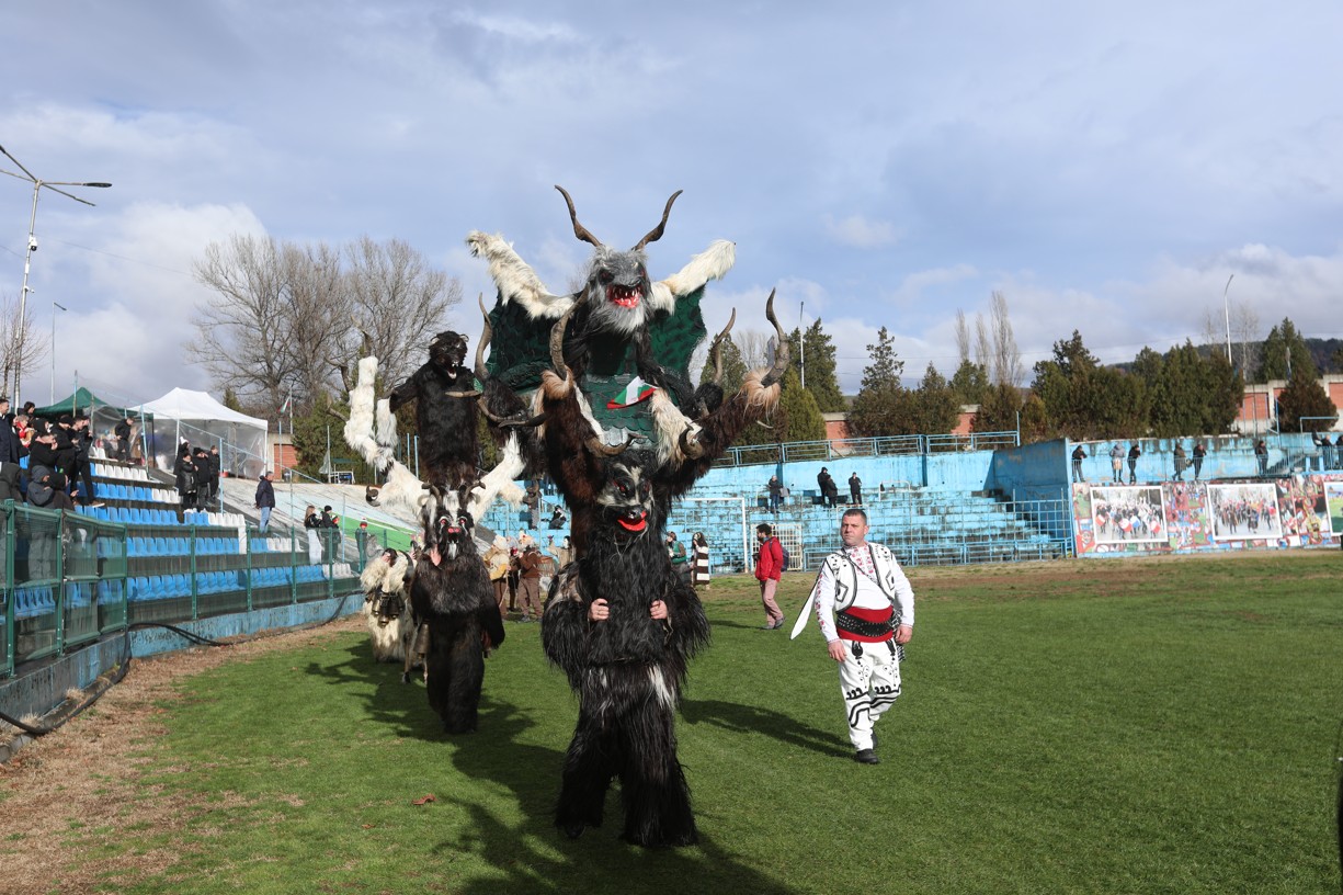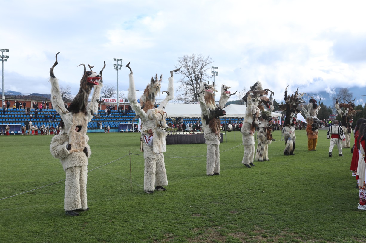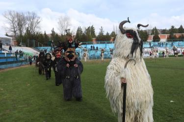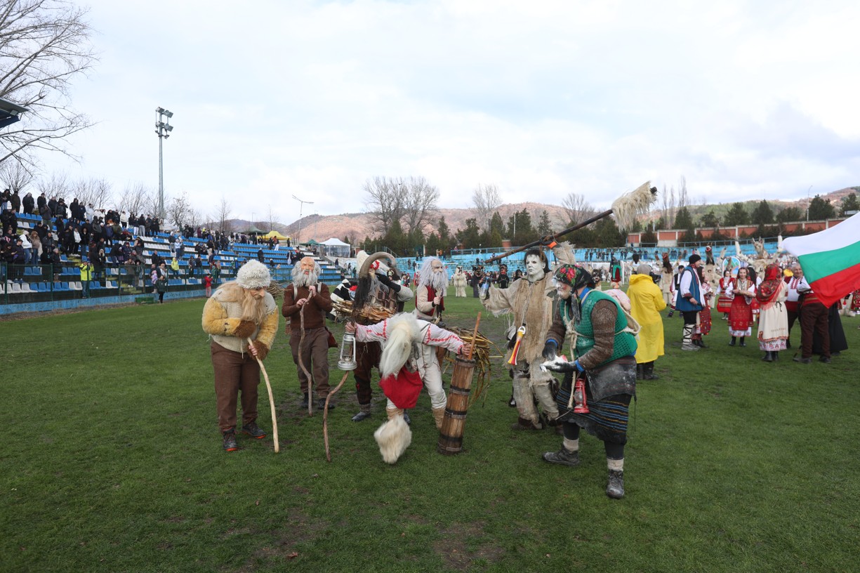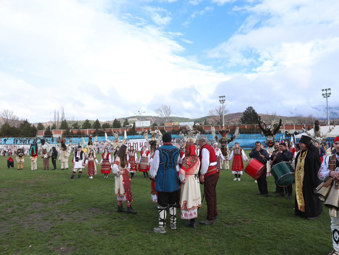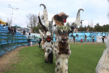 В първия фестивален ден на кукерския празник в Симитлия – древната земя на кукерите – дефилираха осемдесетата група участници, като специално внимание привлекоха бабугерите от село Коларово, община Петрич, с ръководител кметът на селото Евгени Мицков.