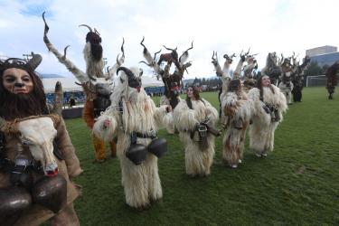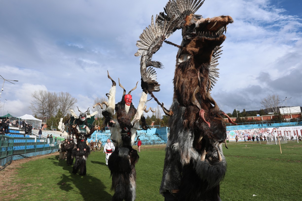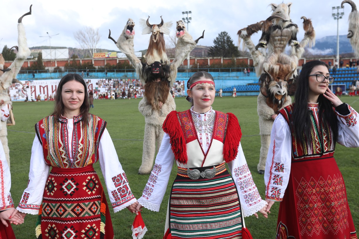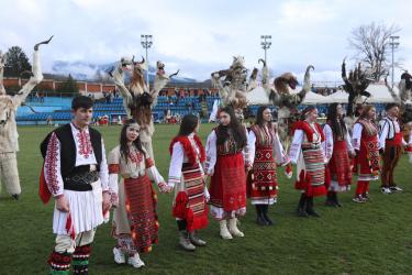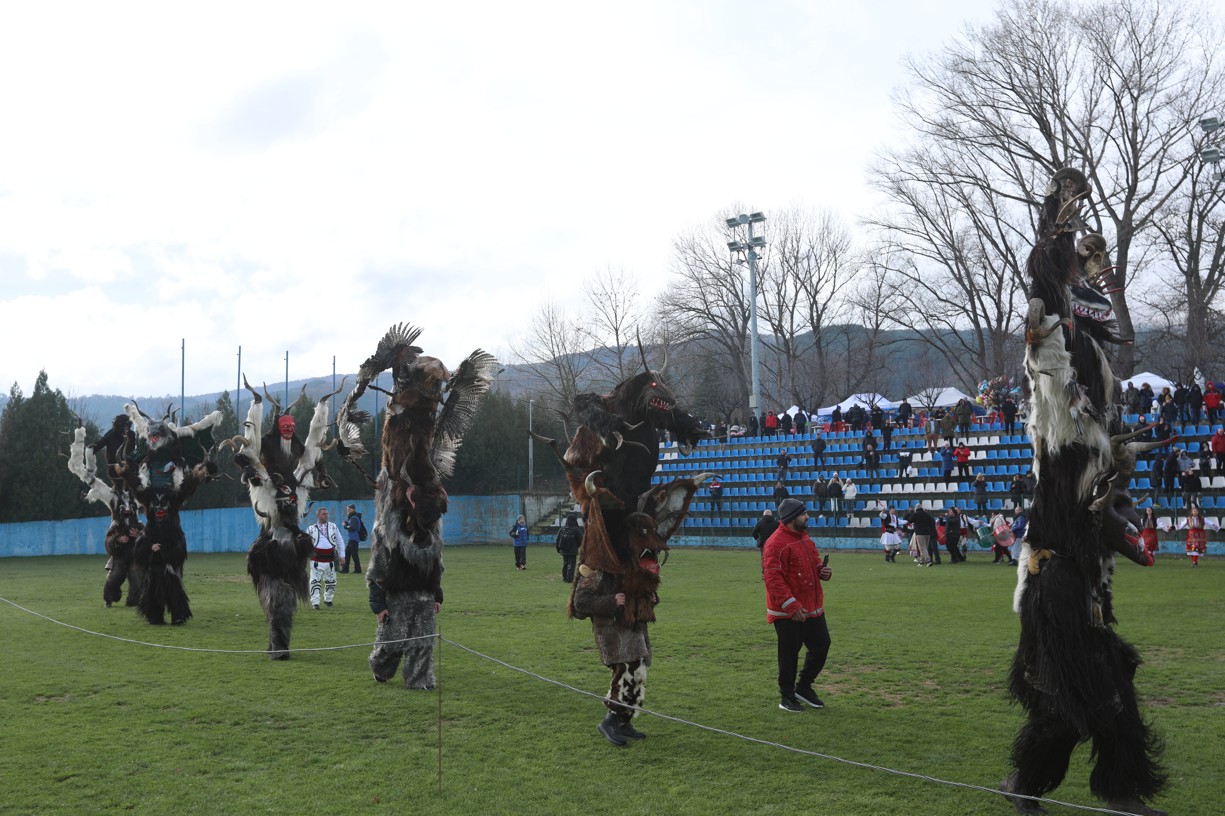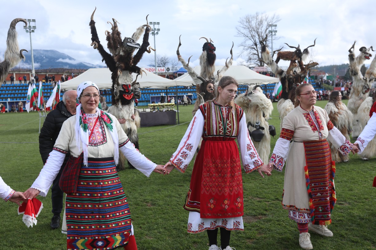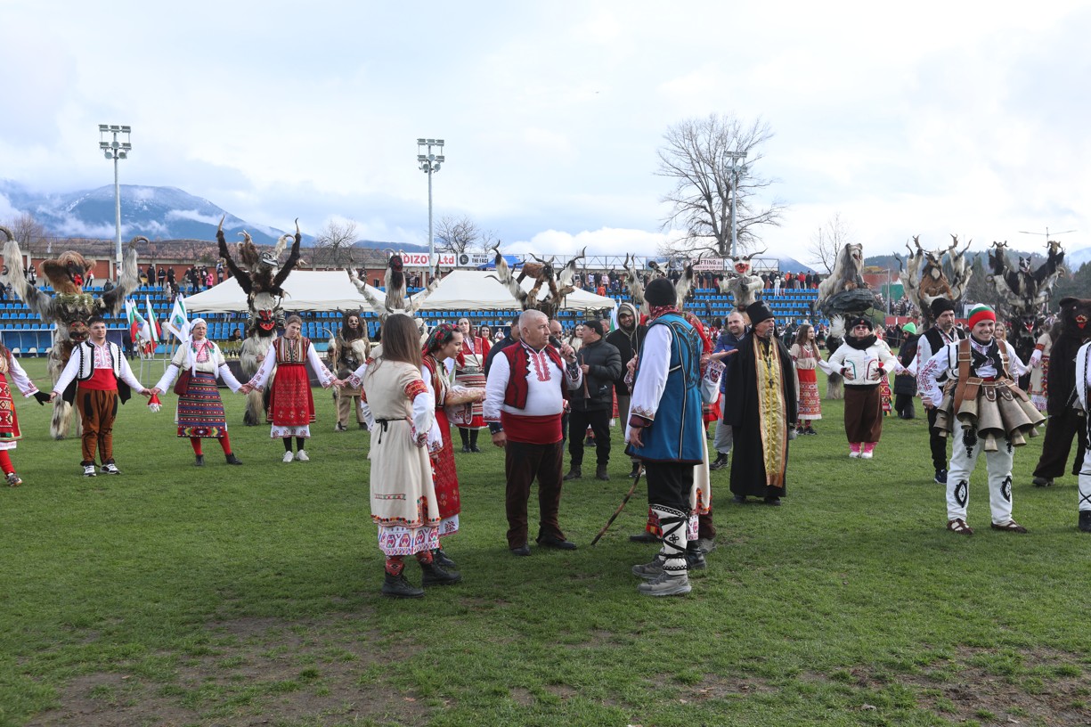 В първия фестивален ден на кукерския празник в Симитлия – древната земя на кукерите – дефилираха осемдесетата група участници, като специално внимание привлекоха бабугерите от село Коларово, община Петрич, с ръководител кметът на селото Евгени Мицков.