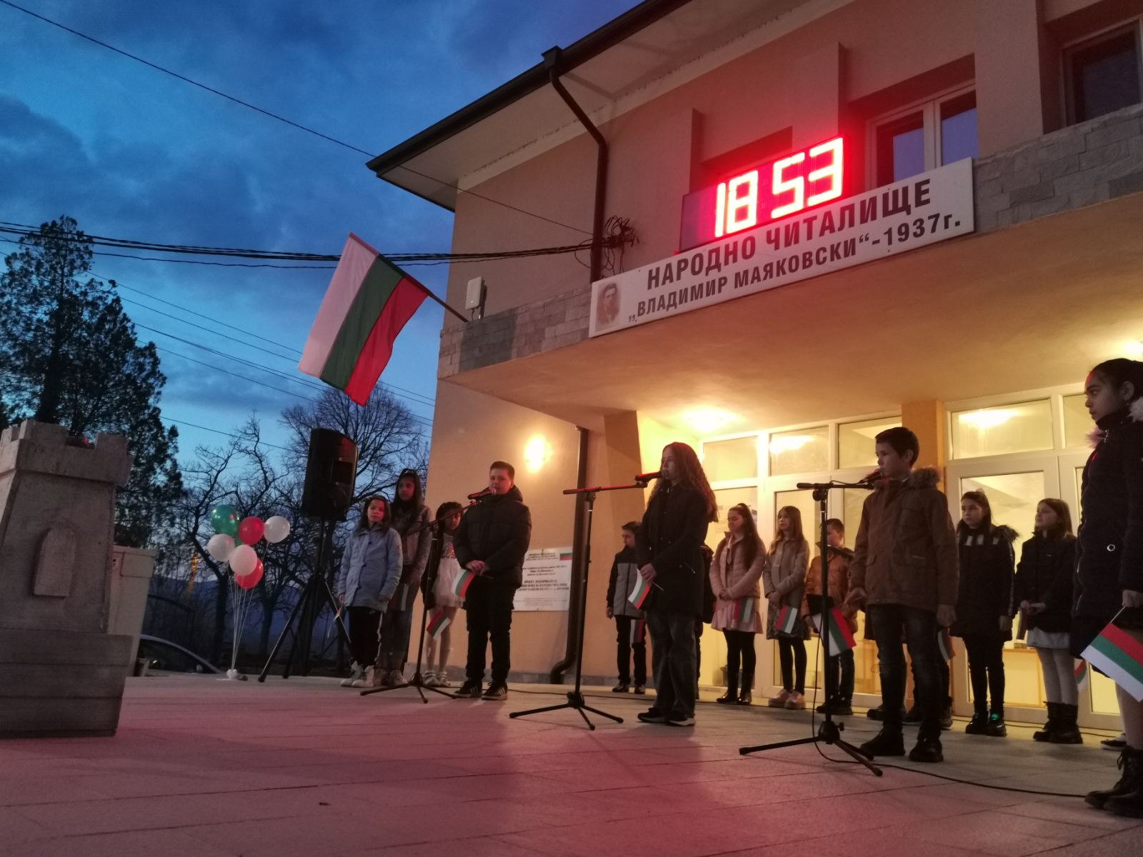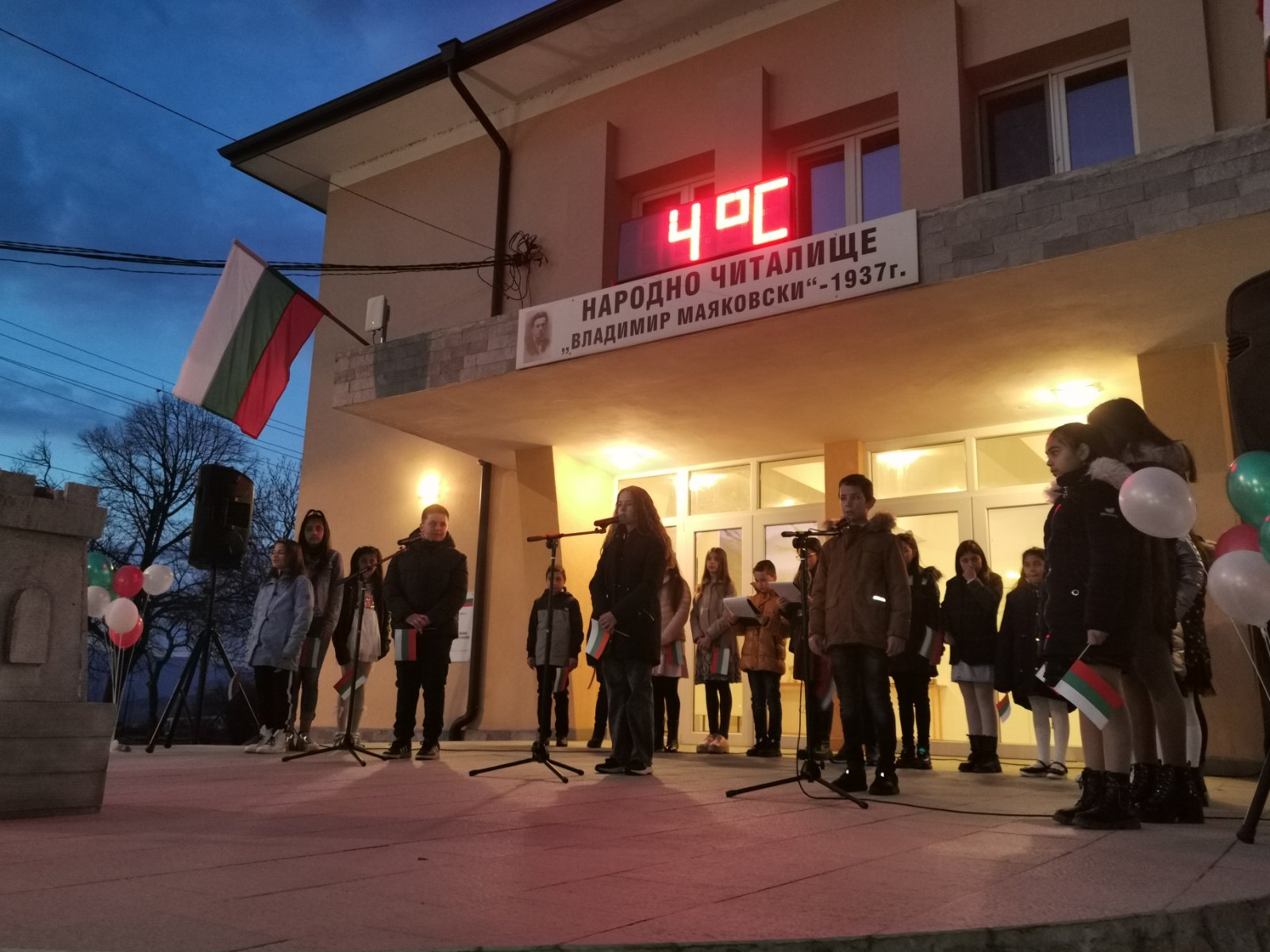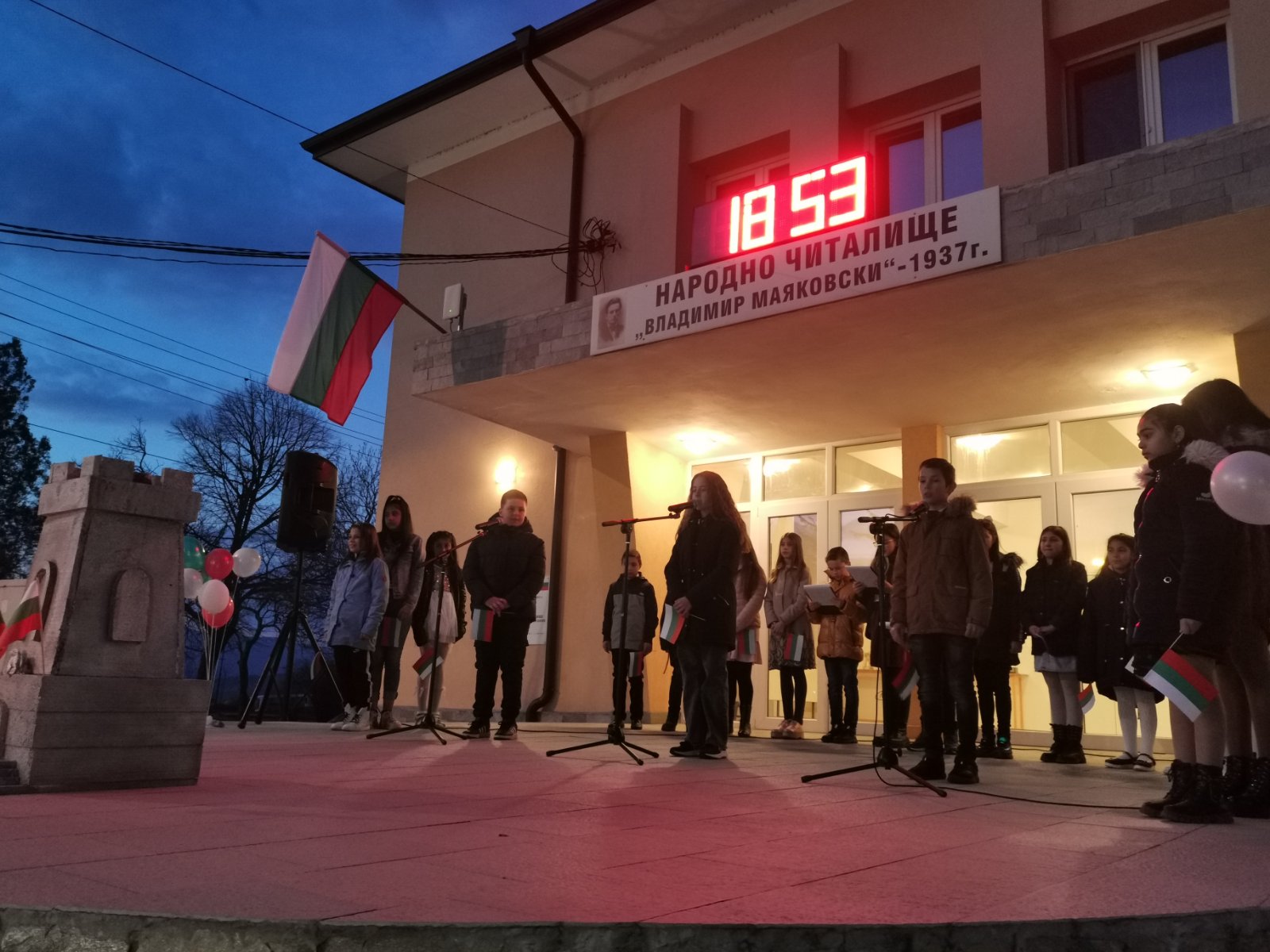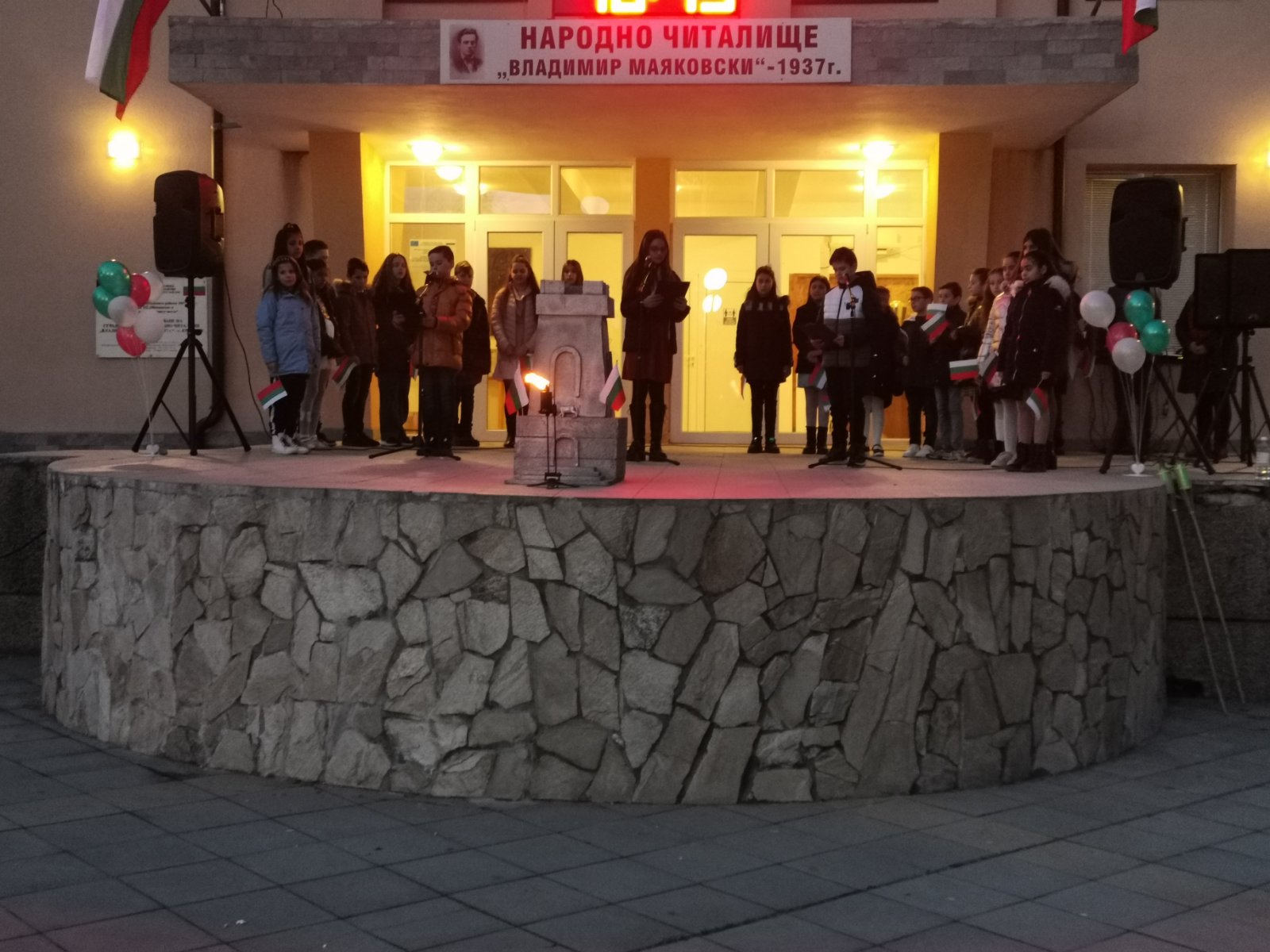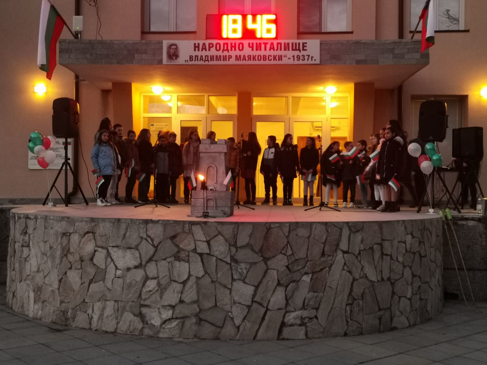 Тази вечер, пред Народно читалище "Владимир Маяковски - 1937" се състоя патриотичен рецитал, подготвен от ученици от Средно училище "Св. Св. Кирил и Методий" - село Крупник!