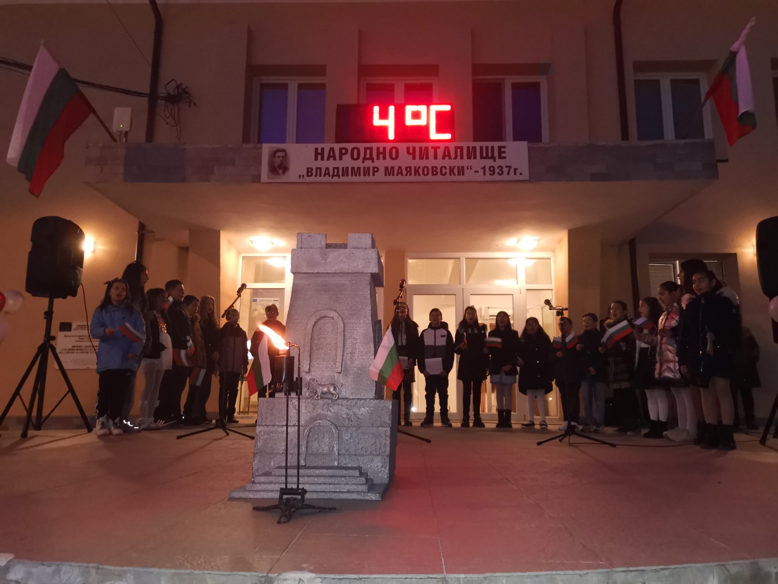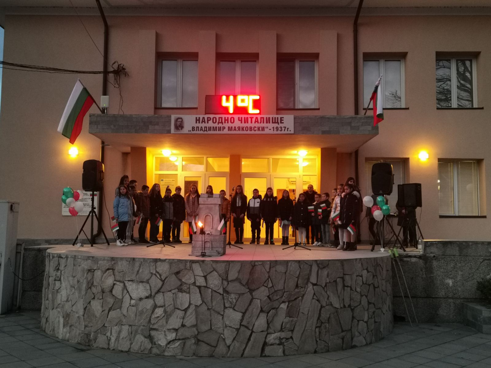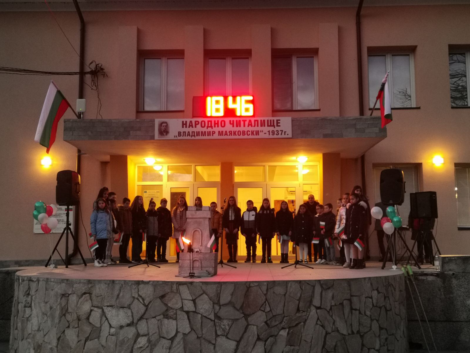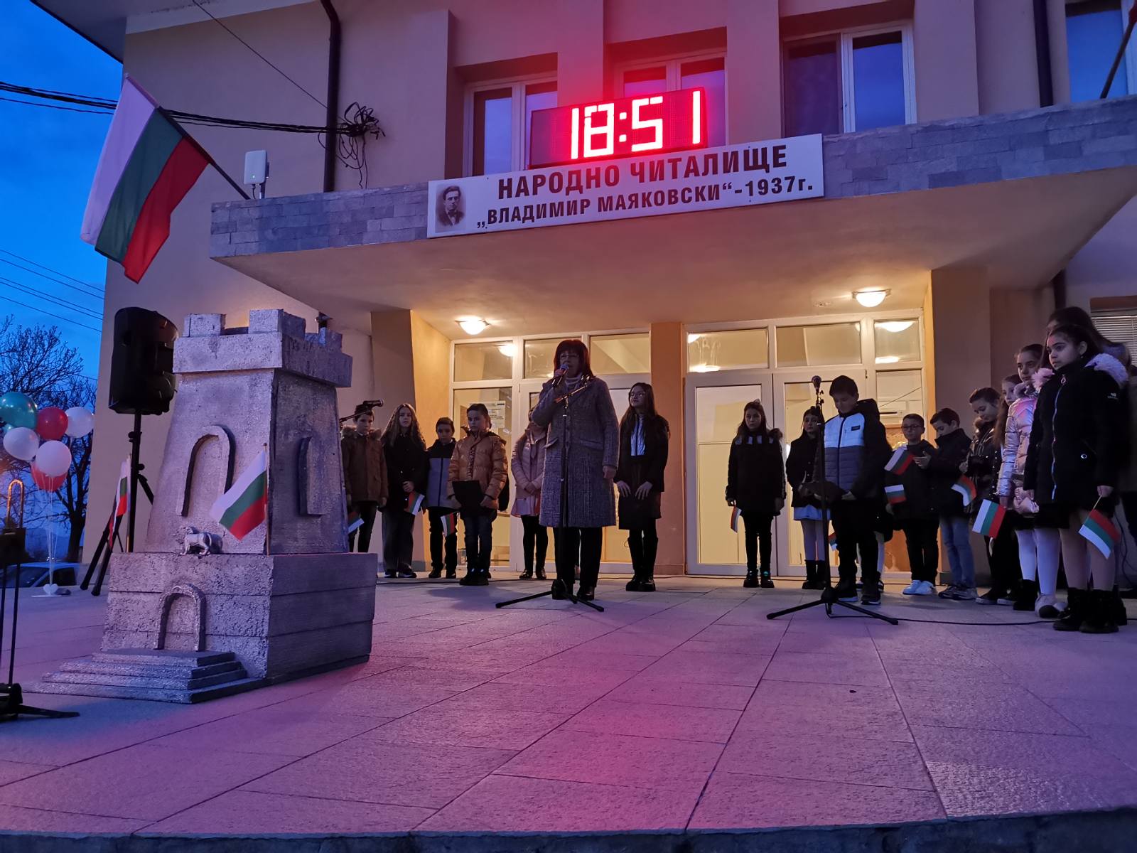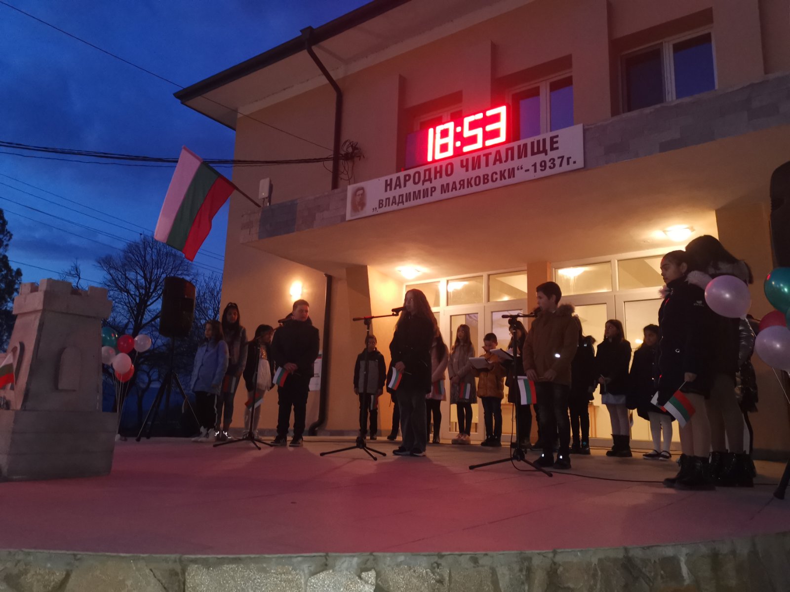 Тази вечер, пред Народно читалище "Владимир Маяковски - 1937" се състоя патриотичен рецитал, подготвен от ученици от Средно училище "Св. Св. Кирил и Методий" - село Крупник!