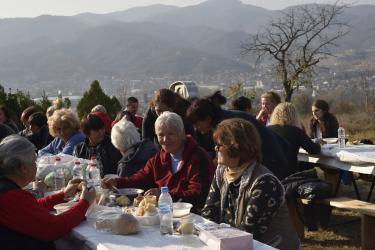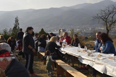 Дълги трапези посрещнаха всички гости в двора на параклиса, наречен "Св. Мина" в Косячката махала на кв. Ораново, а сред тях бяха и кметът на Община Симитли - Апостол Апостолов и председателят на Общинск съвет - Симитли Вилимир Александров.