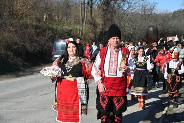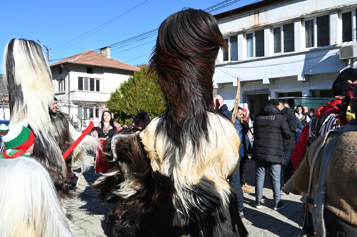От малки до големи, пременени в носии, а кукерите – пищни, с маски, звънци и цветни украшения – изпълват улиците с танци и смях. Сред тях младоженецът и булката веселят народа, мечкарят се вихри със своите мечки, а други колоритни персонажи забавляват малки и големи. Всеки звук на звънците и всяка стъпка на кукера прогонва злите сили и носи здраве, плодородие и благоденствие.