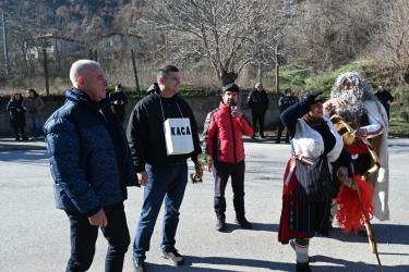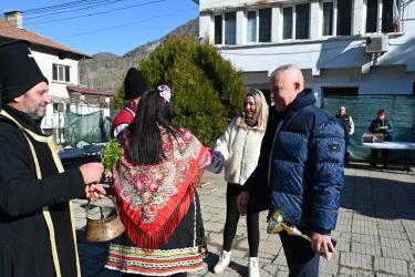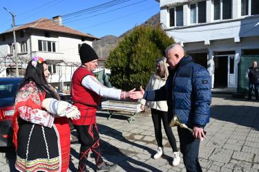 Пред кметството в селото кукерската група на Железница беше посрещната от кмета на община Симитли Апостол Апостолов и кмета на селото Гергана Гиздова. А цялото село празнува с отворени сърца – всеки дом приема скъпи гости, сурвакари, които носят духа на българщината и топлината на общността.