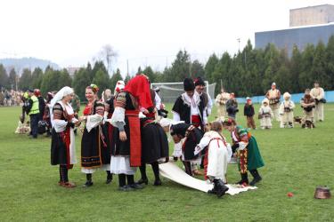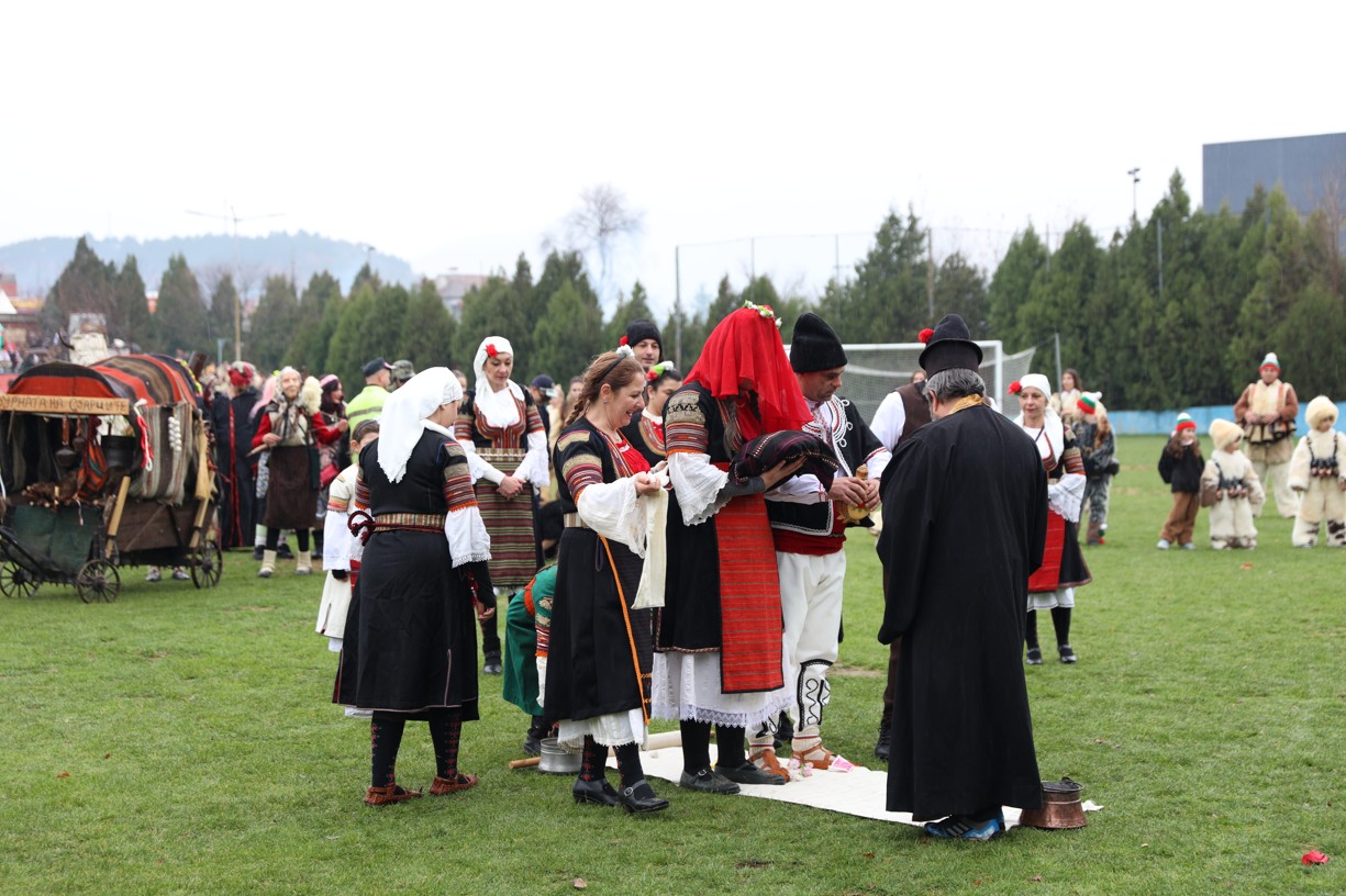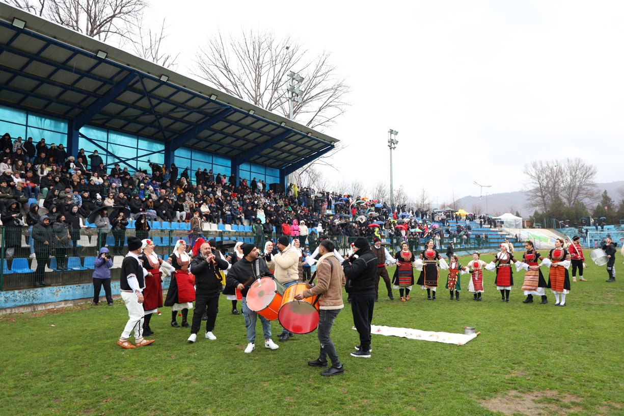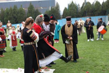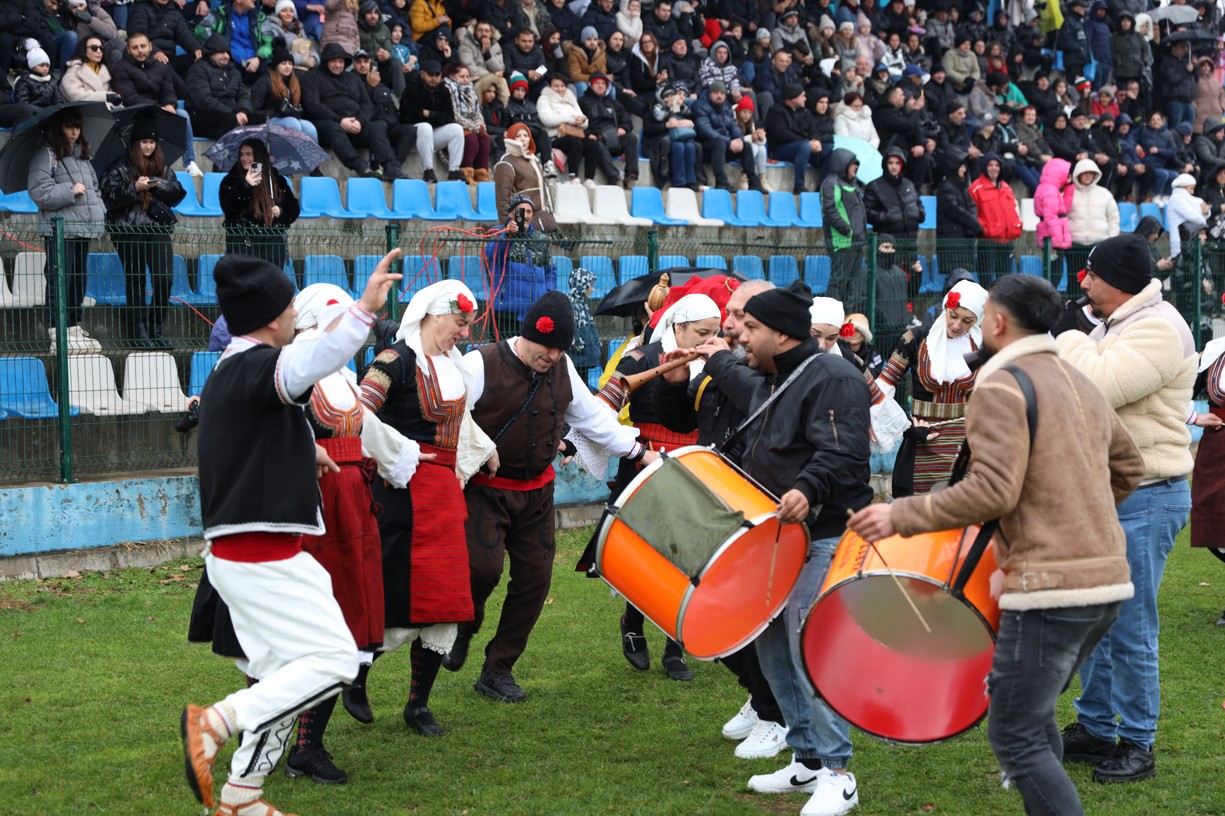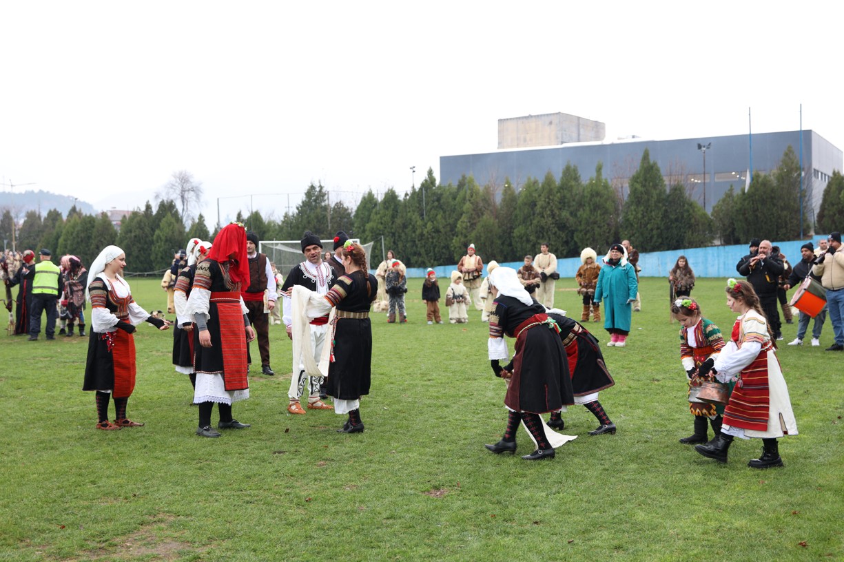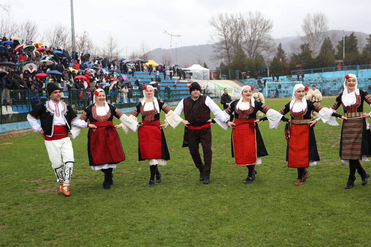На фестивалната сцена в Симитли групата представи ритуала „Сватба“ чрез танц, последван от появата на джамалджиите, които със силния звън на чановете символично изгониха злите сили.