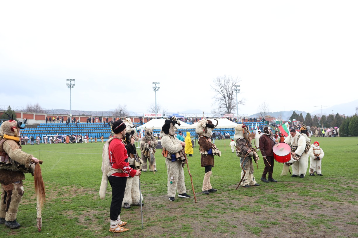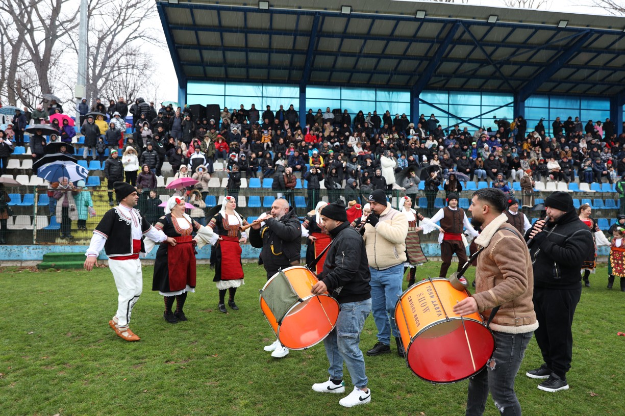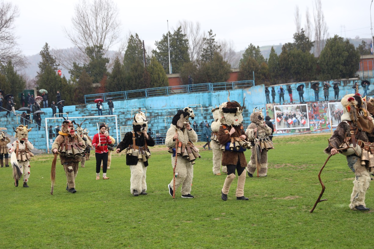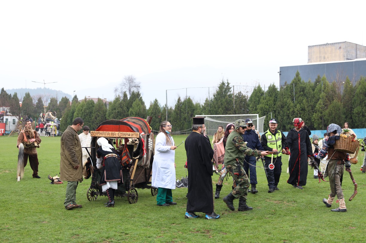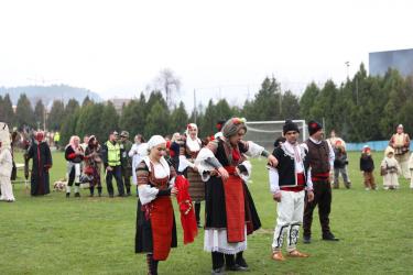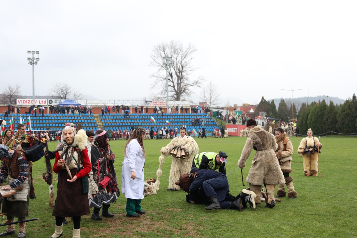 На фестивалната сцена в Симитли групата представи ритуала „Сватба“ чрез танц, последван от появата на джамалджиите, които със силния звън на чановете символично изгониха злите сили.