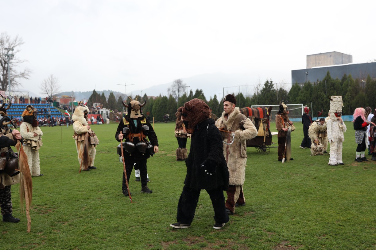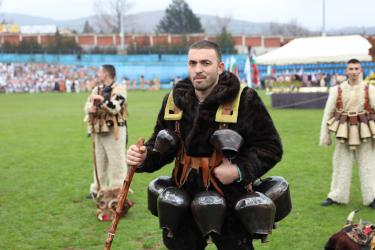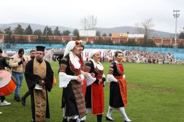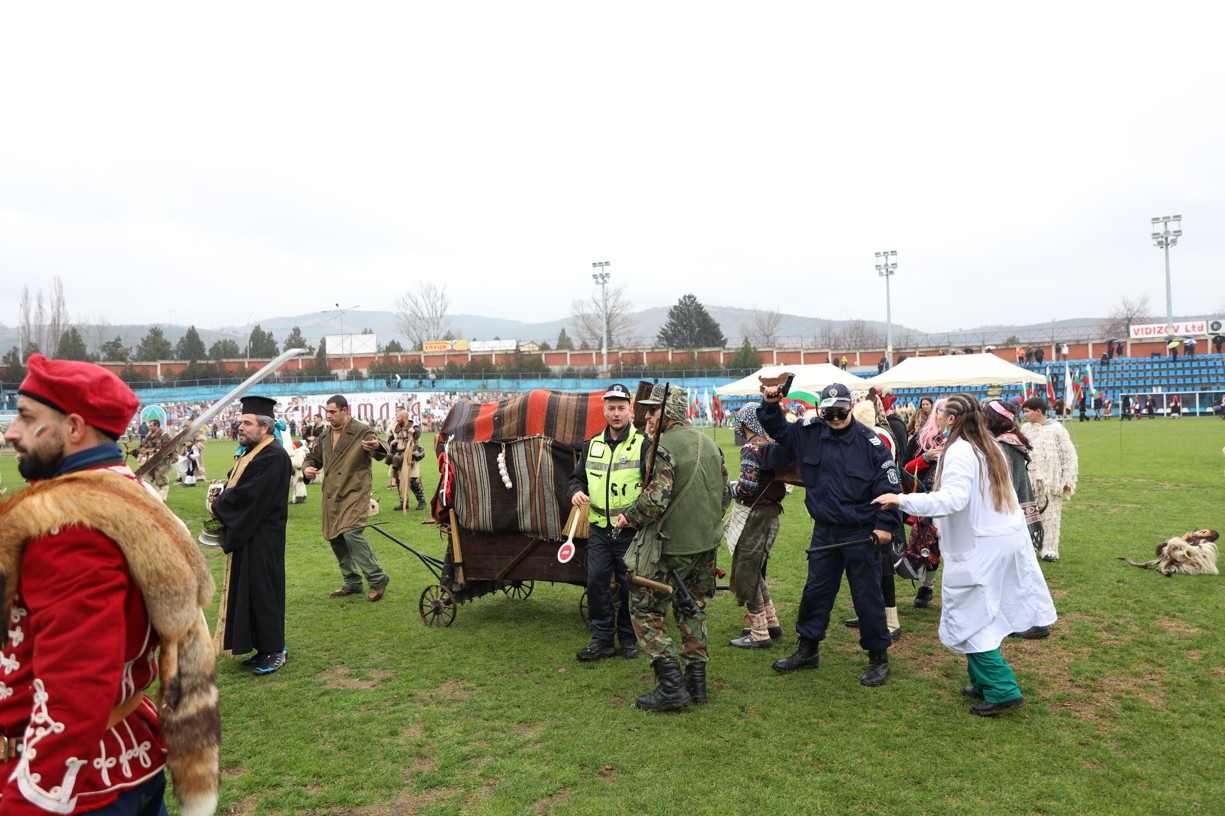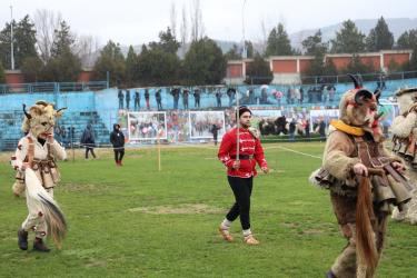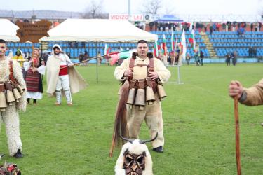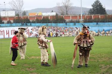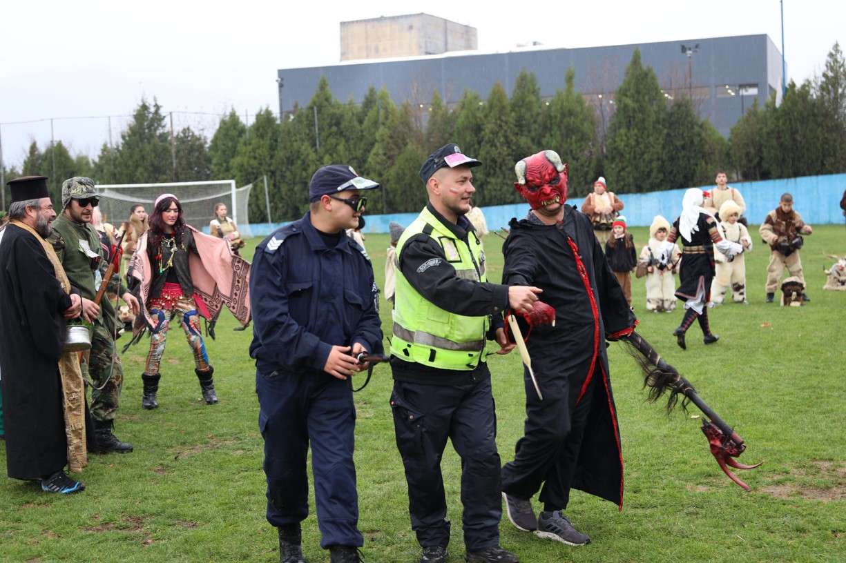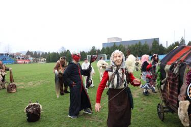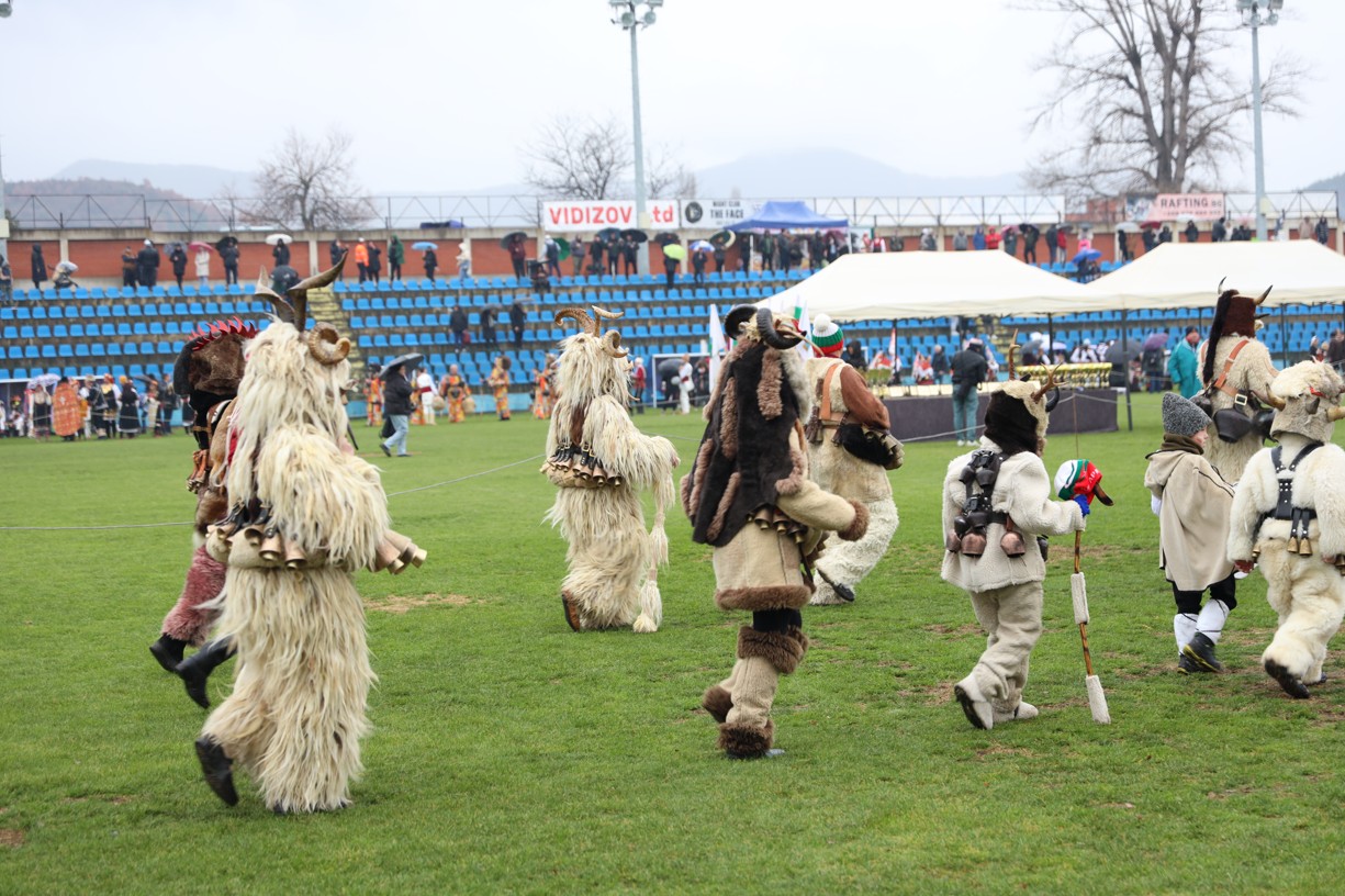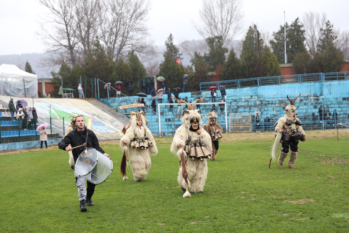 На фестивалната сцена в Симитли групата представи ритуала „Сватба“ чрез танц, последван от появата на джамалджиите, които със силния звън на чановете символично изгониха злите сили.