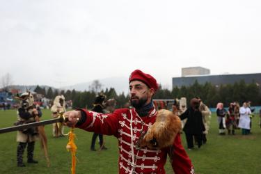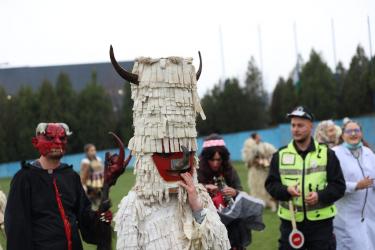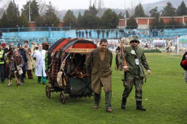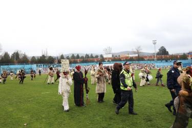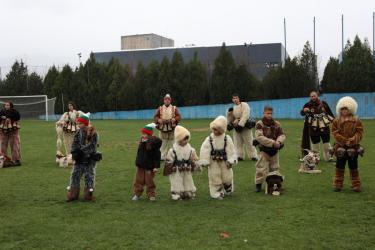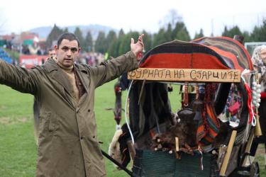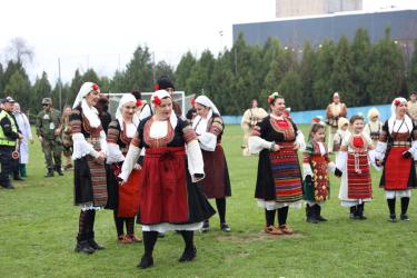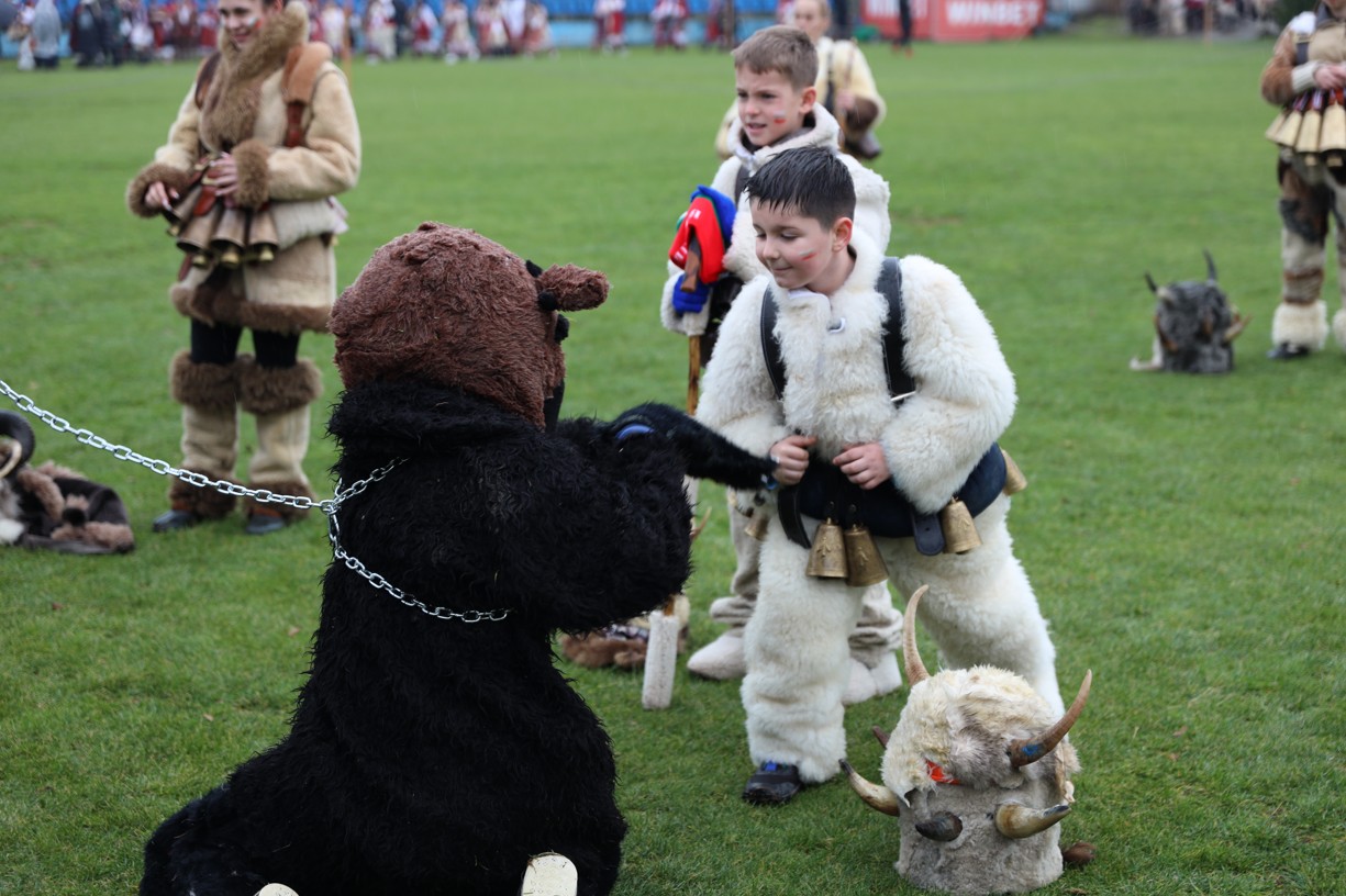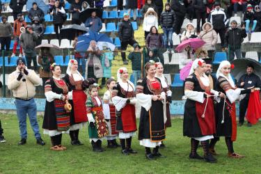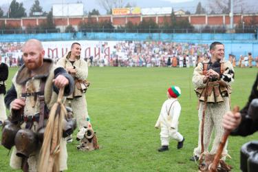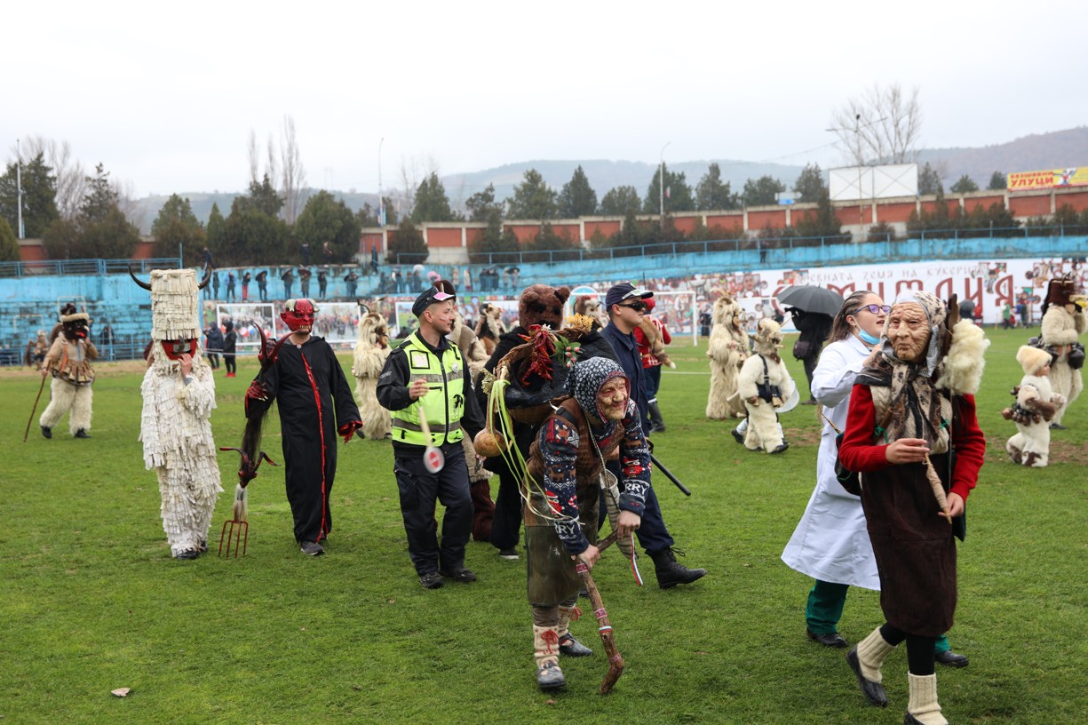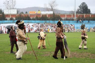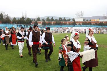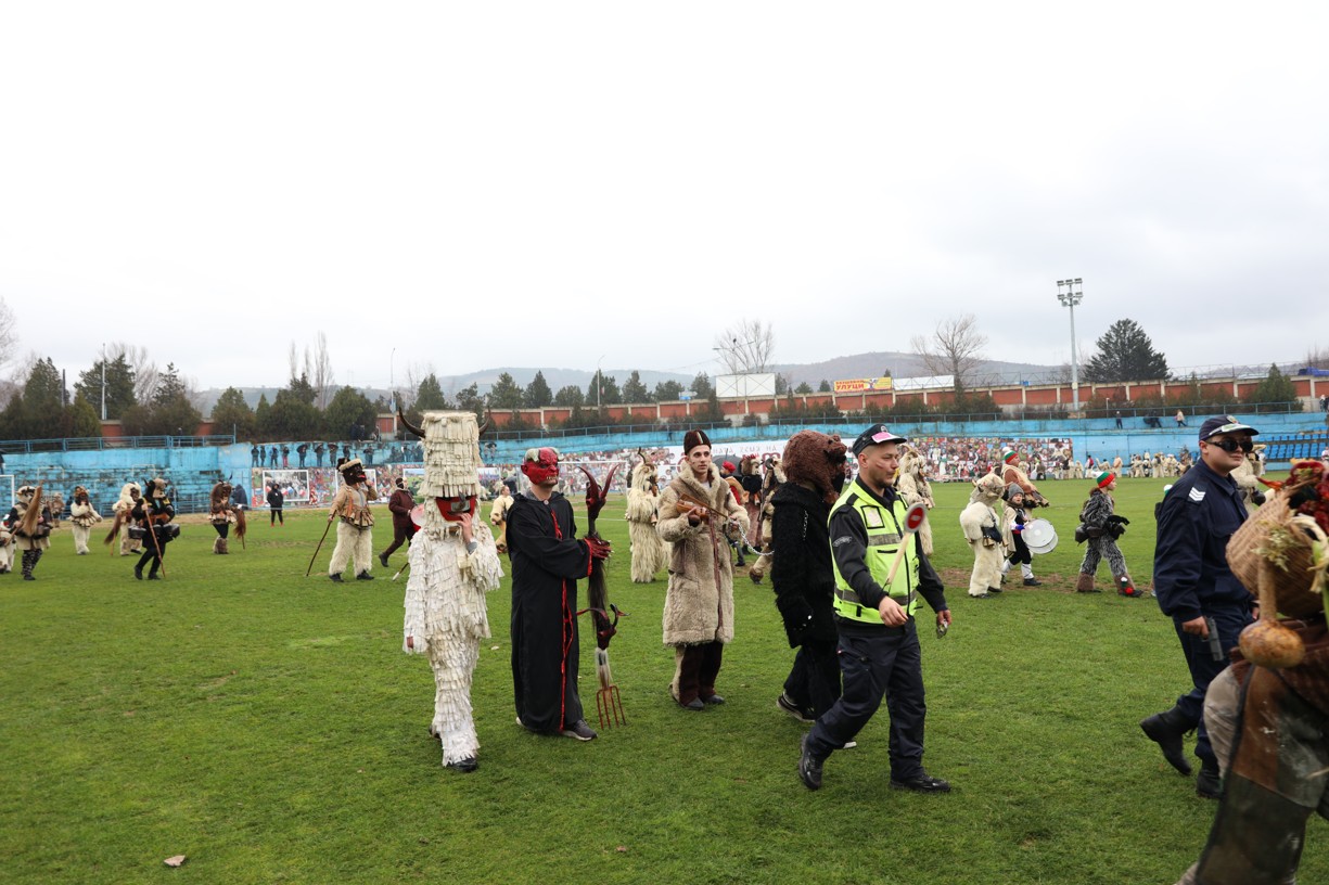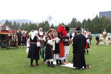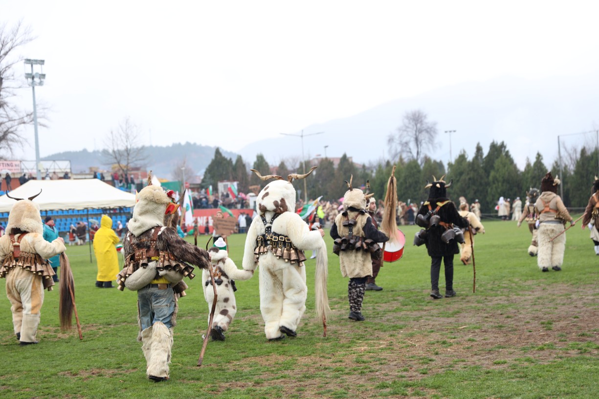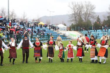На фестивалната сцена в Симитли групата представи ритуала „Сватба“ чрез танц, последван от появата на джамалджиите, които със силния звън на чановете символично изгониха злите сили.