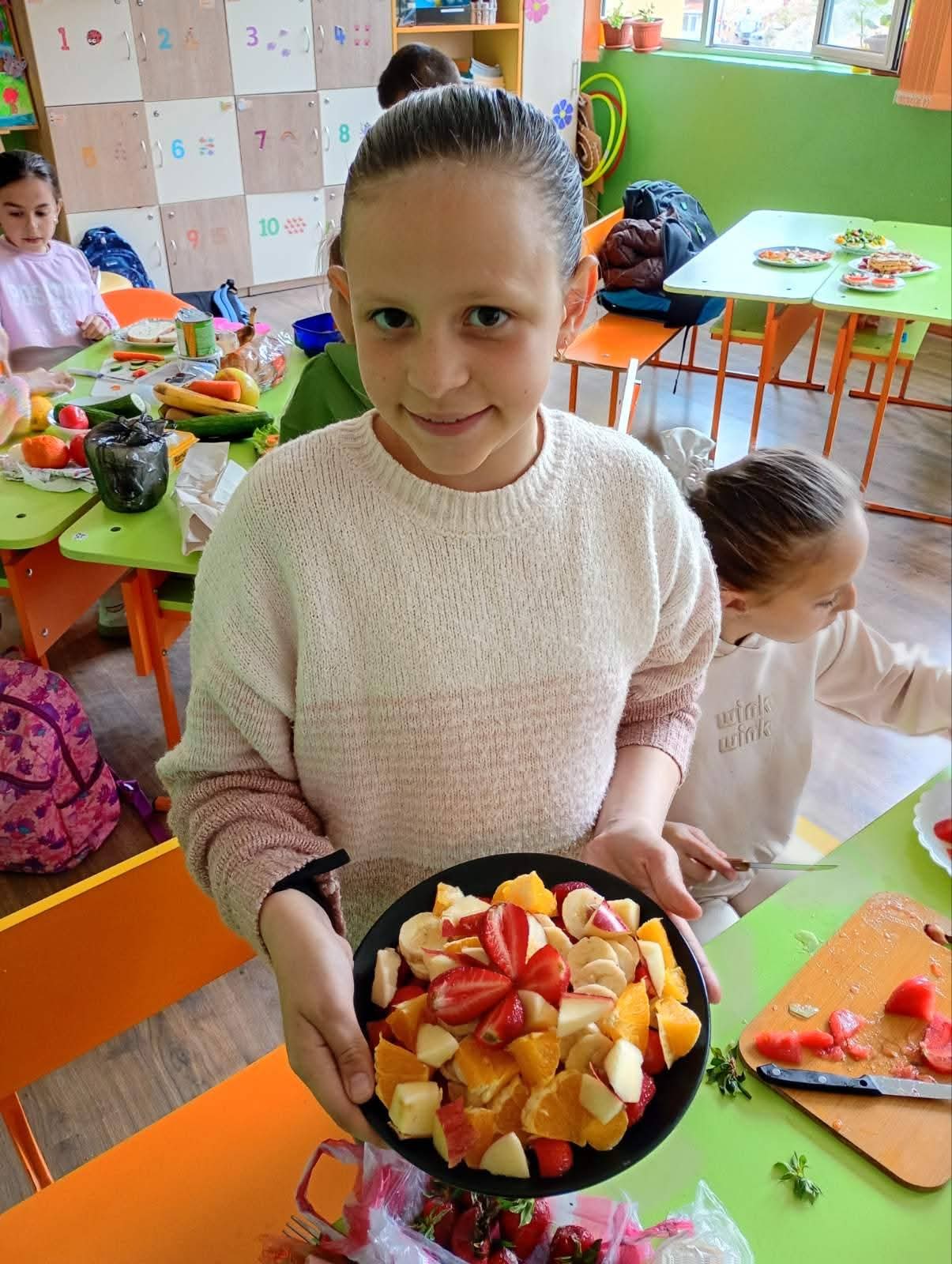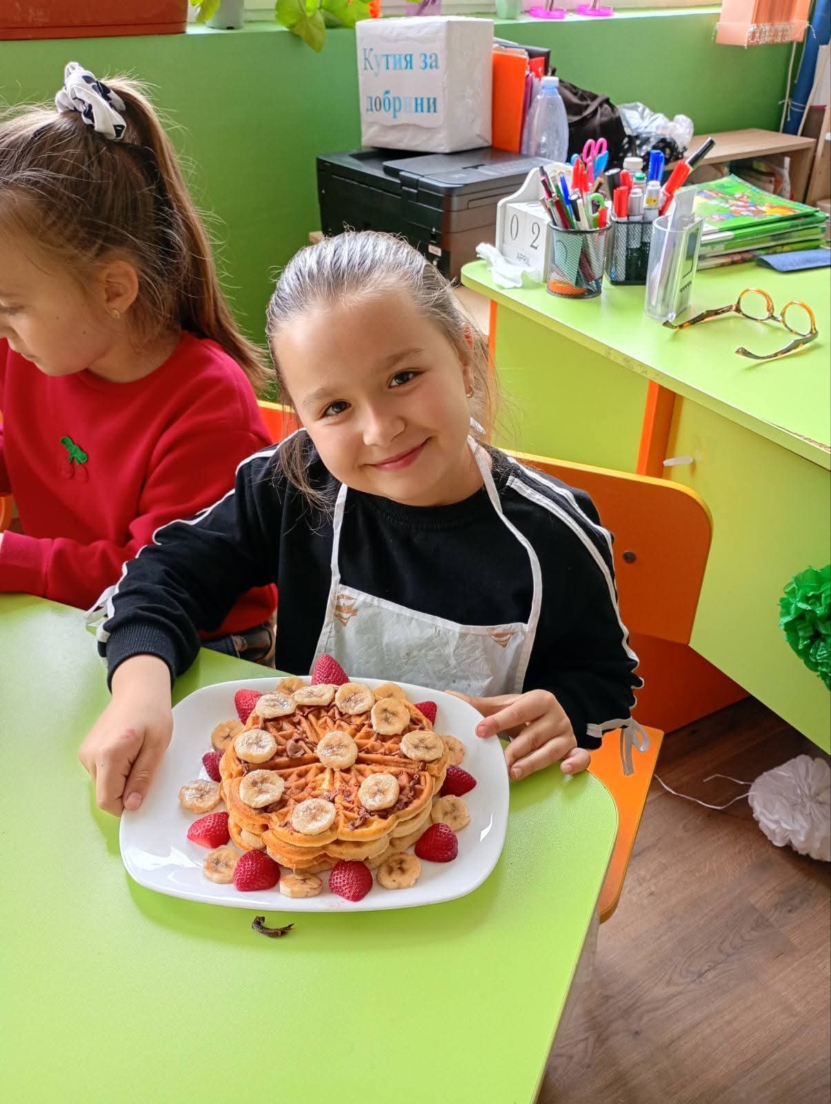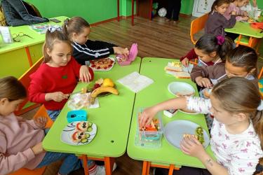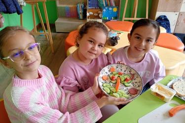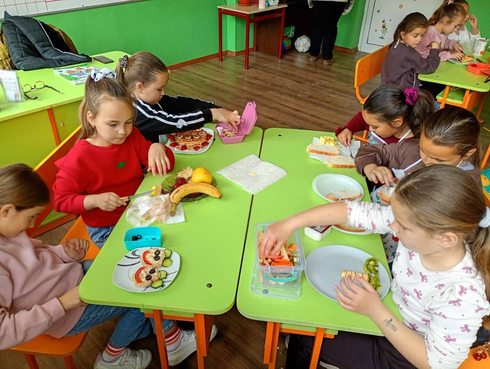 Събитието започна с кратка, но изключително полезна беседа, по време на която децата научиха повече за ползите от балансираното хранене и значението на здравословния начин на живот. Последва и инструктаж за безопасно боравене с кухненските прибори, който подготви малките участници за практическата част.