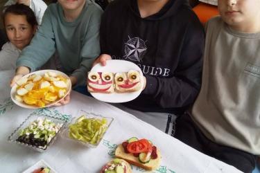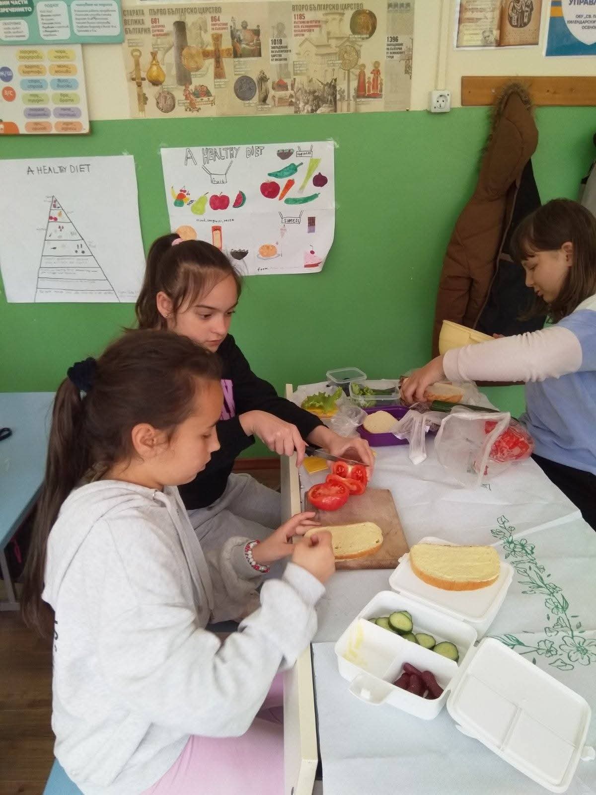 С много ентусиазъм, старание и творческо вдъхновение учениците се включиха в приготвянето на разнообразни и апетитни ястия – свежи салати, вкусни сандвичи и изкушаващи десерти. Всяко дете вложи въображение и желание, превръщайки продуктите в истински малки кулинарни произведения.