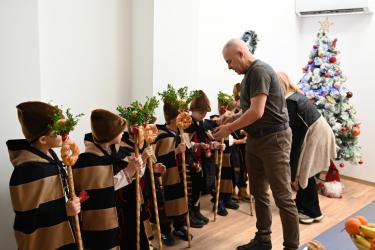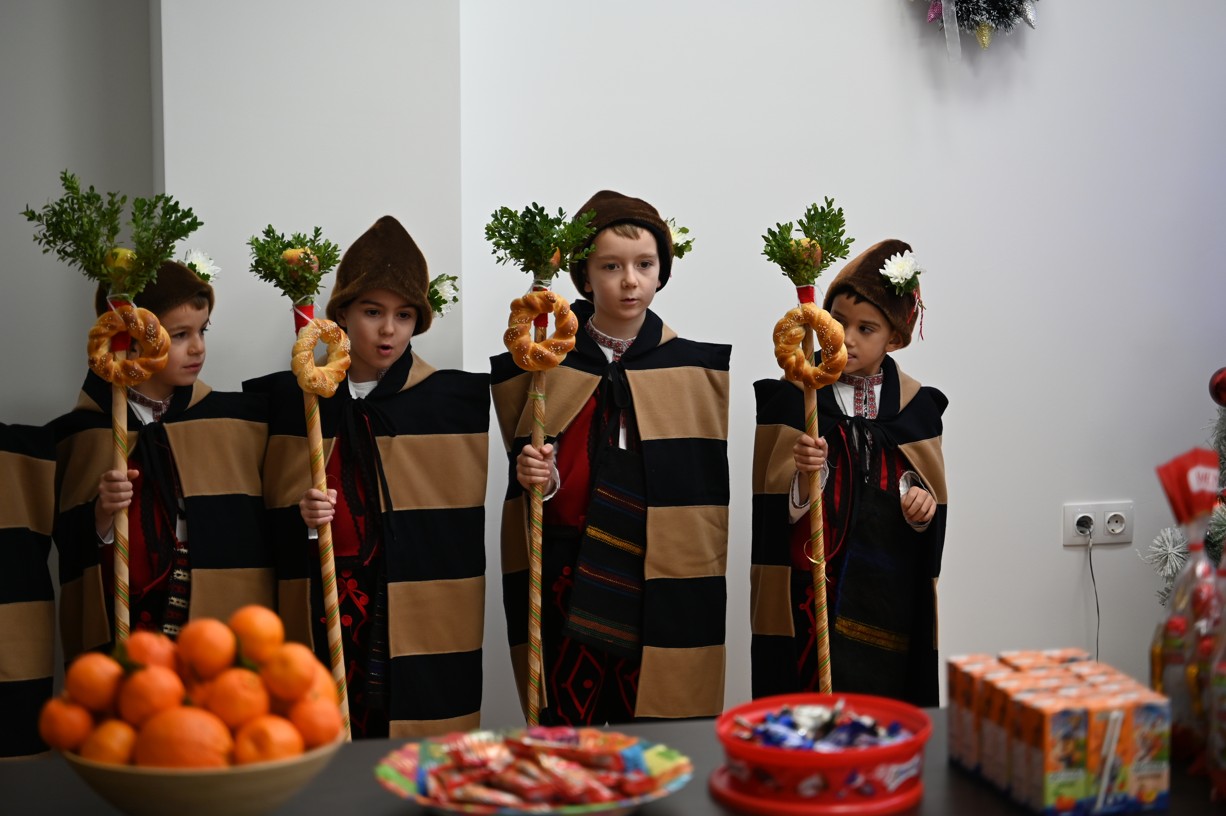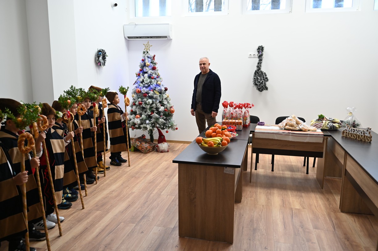 Децата изпълниха традиционните наричания и изпяха коледни песни, а също така рецитираха стихотворения, като внесоха много настроение и празнична атмосфера. Градоначалникът се обърна към своите малки гости и им благодари за радостта, която създадоха в администрацията, като им пожела: „Бъдете здрави, щастливи и не спирайте да ни радвате. Ще ви чакаме отново и догодина!“