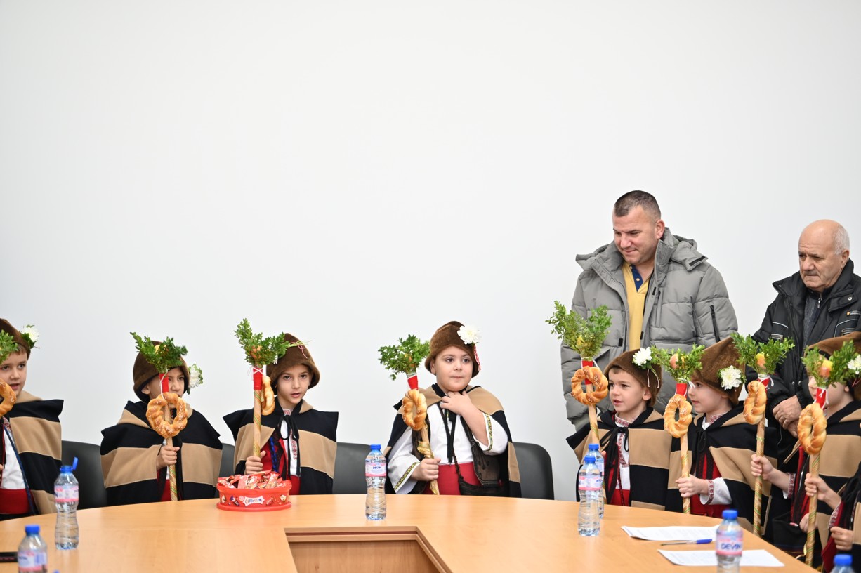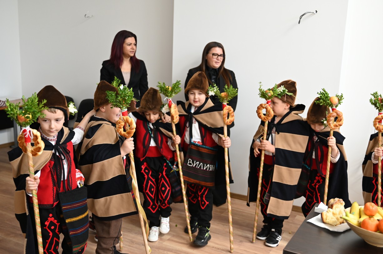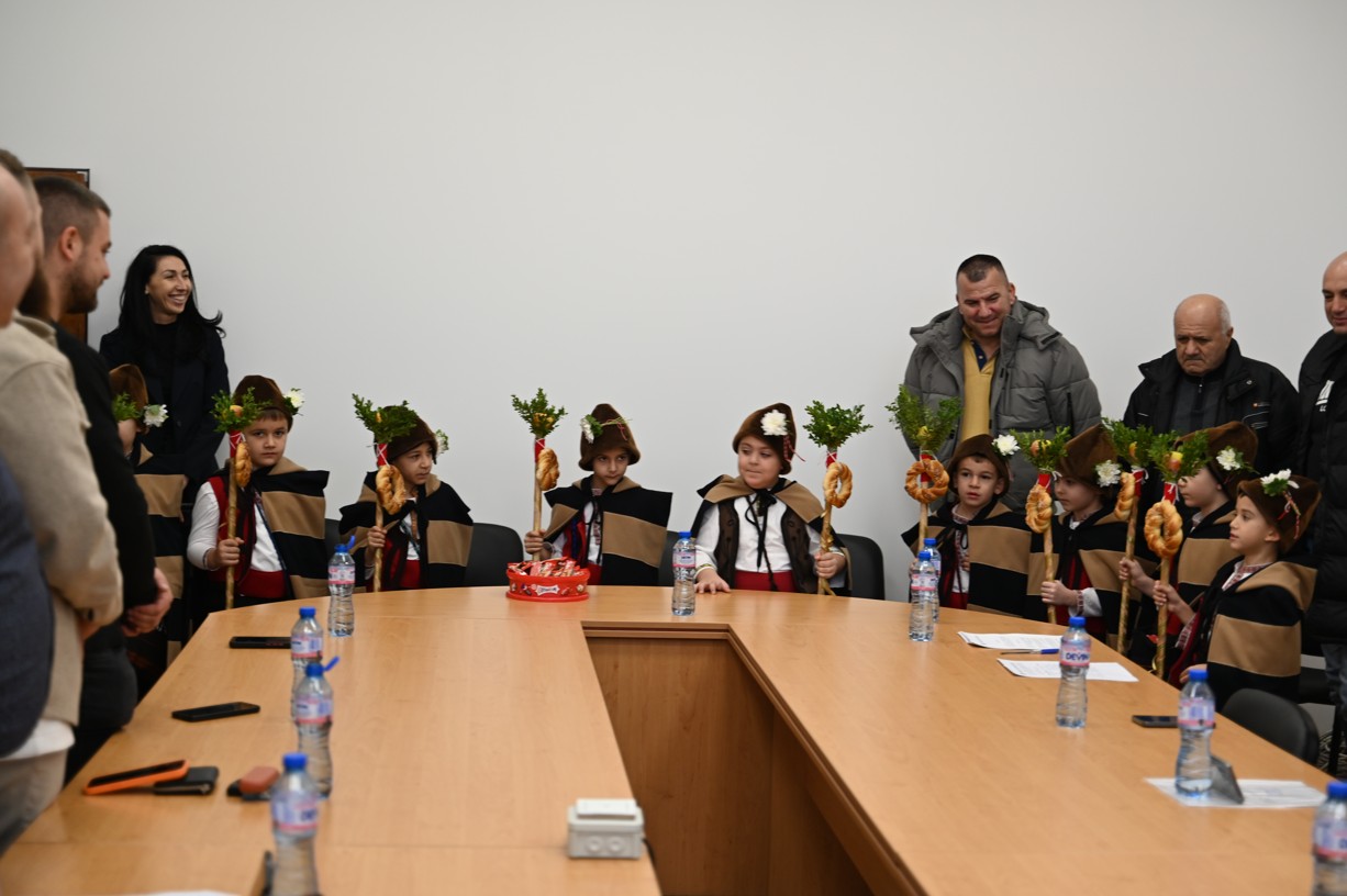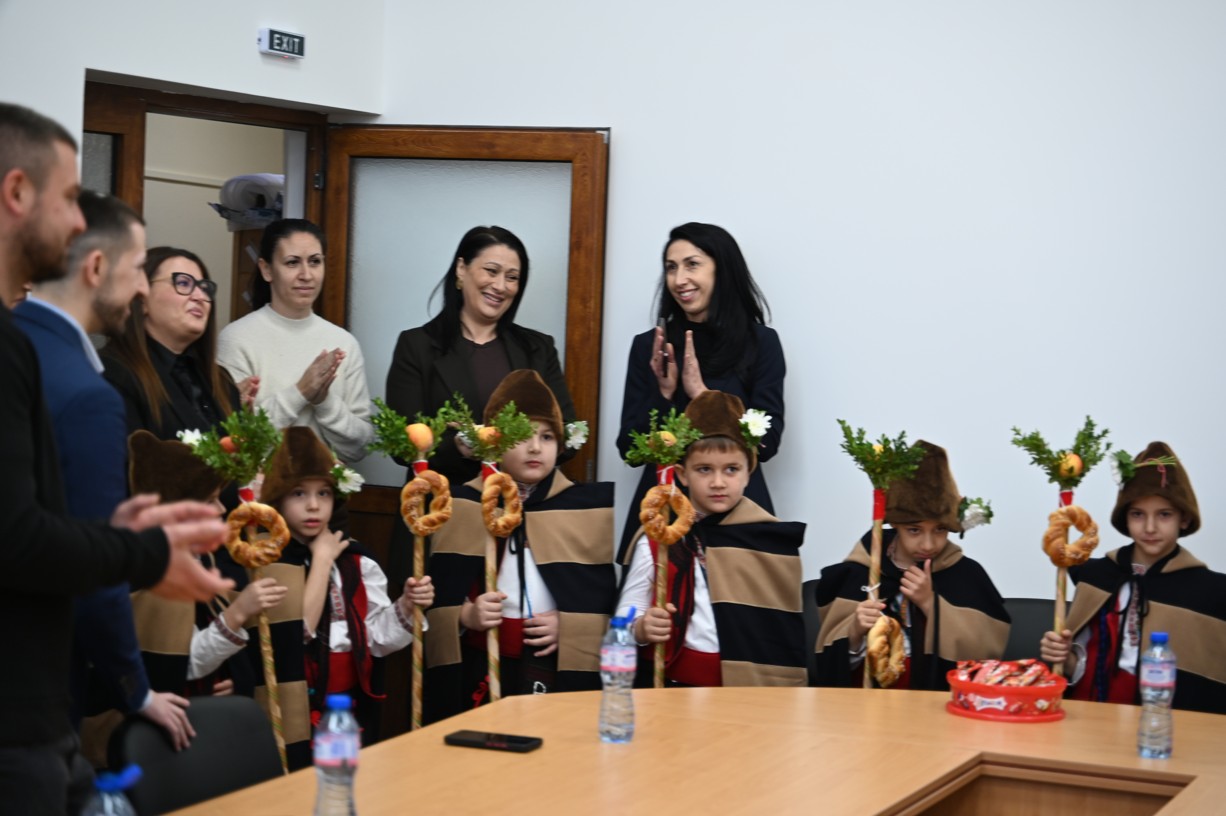 Малки коледари орисаха кмета и служителите на община Симитли за здраве и берекет