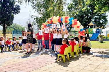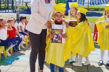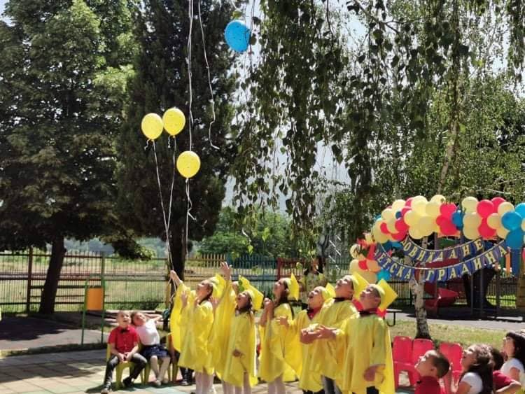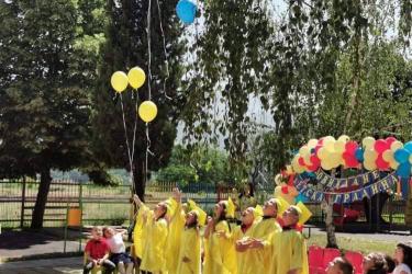 Всяко детенце получи сертификат за завършване. В края на тържеството малките абитуриенти, облечени в тоги, пуснаха в небето красиви цветни балони.