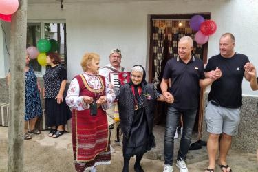 От своя страна столетницата покани гостите в дома си, където бе подредила трапеза, на която не липсваха задължителните елементи за един рожден ден - погача и вкусна торта.
