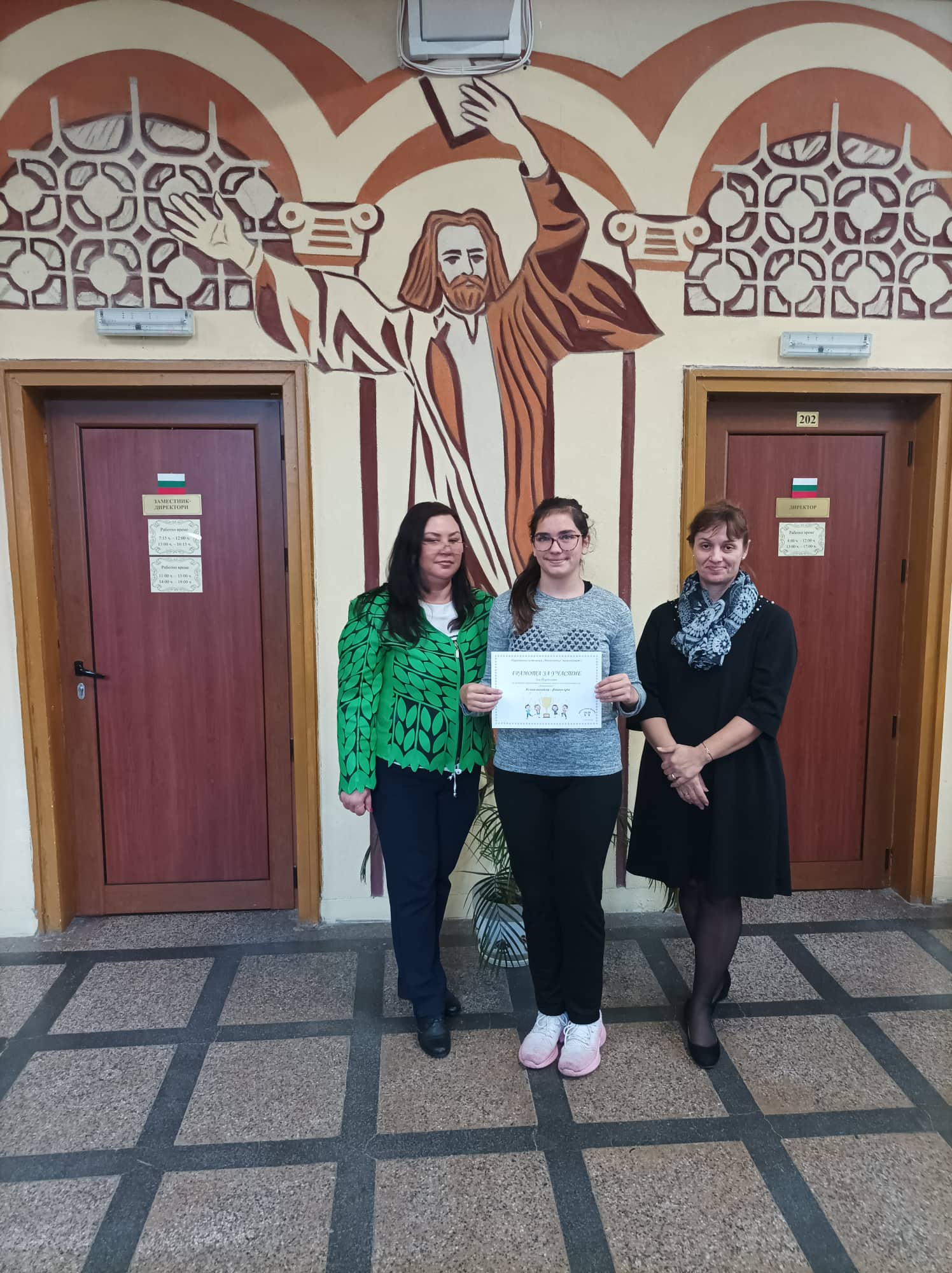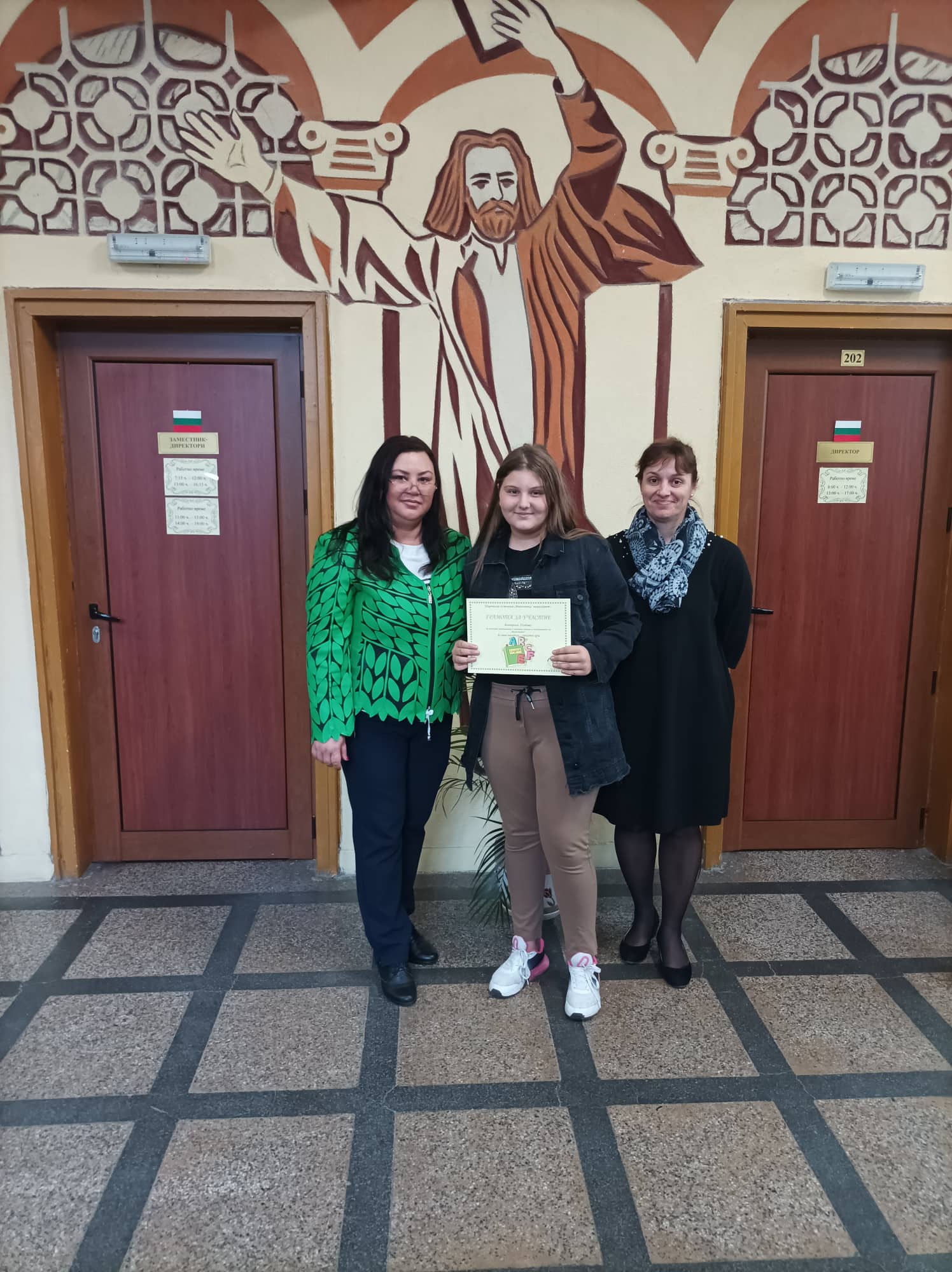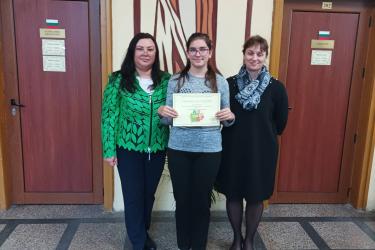 Грамота за участие и достойно представяне: Катерина Гиздова, Стефани Чивиева, Петя Цветанова и Василена Чивиева – 6. А кл.; Зоя Йорданова – 6. А кл.