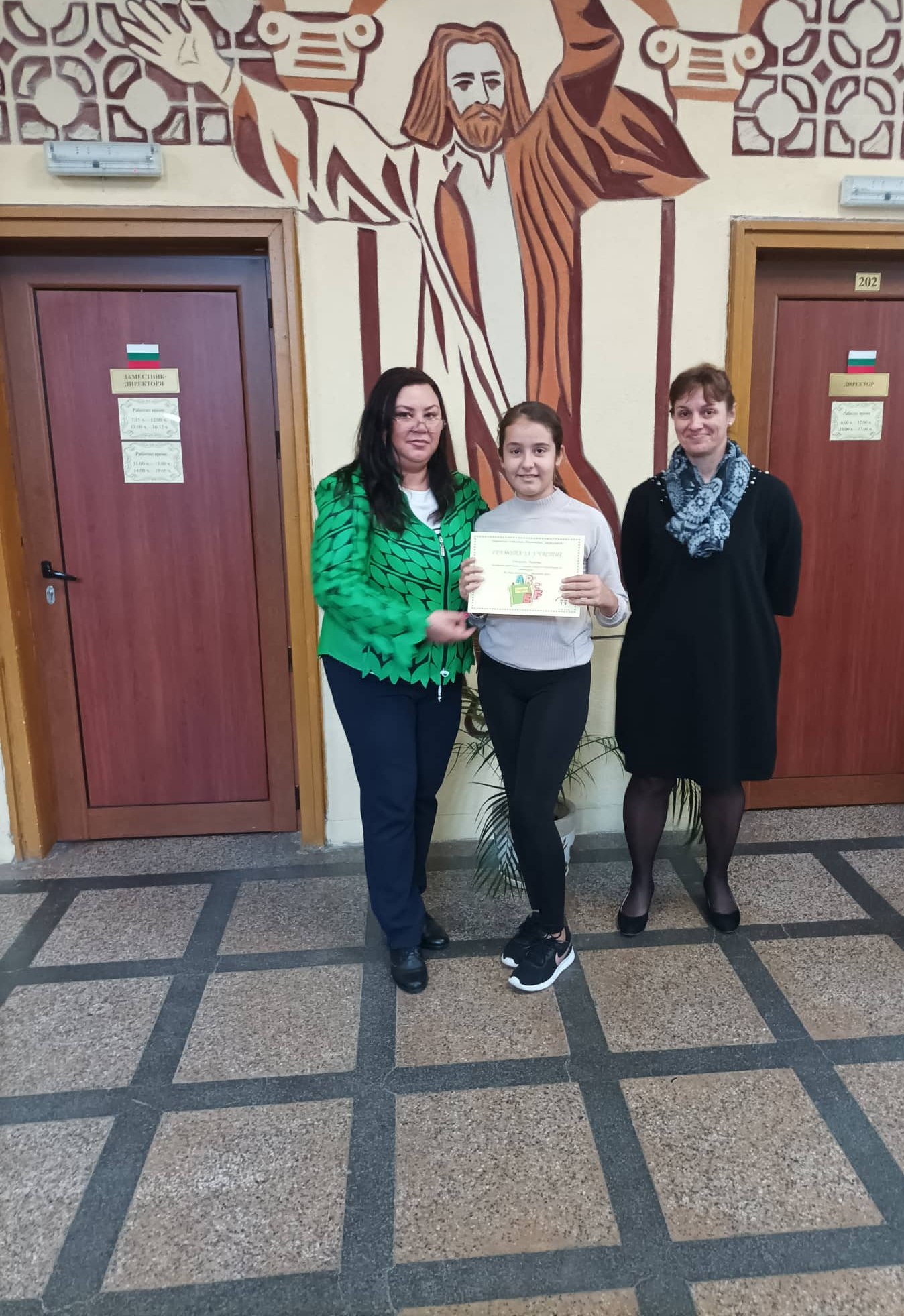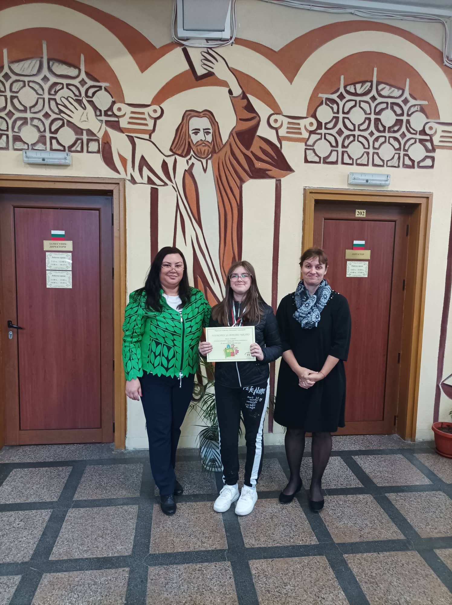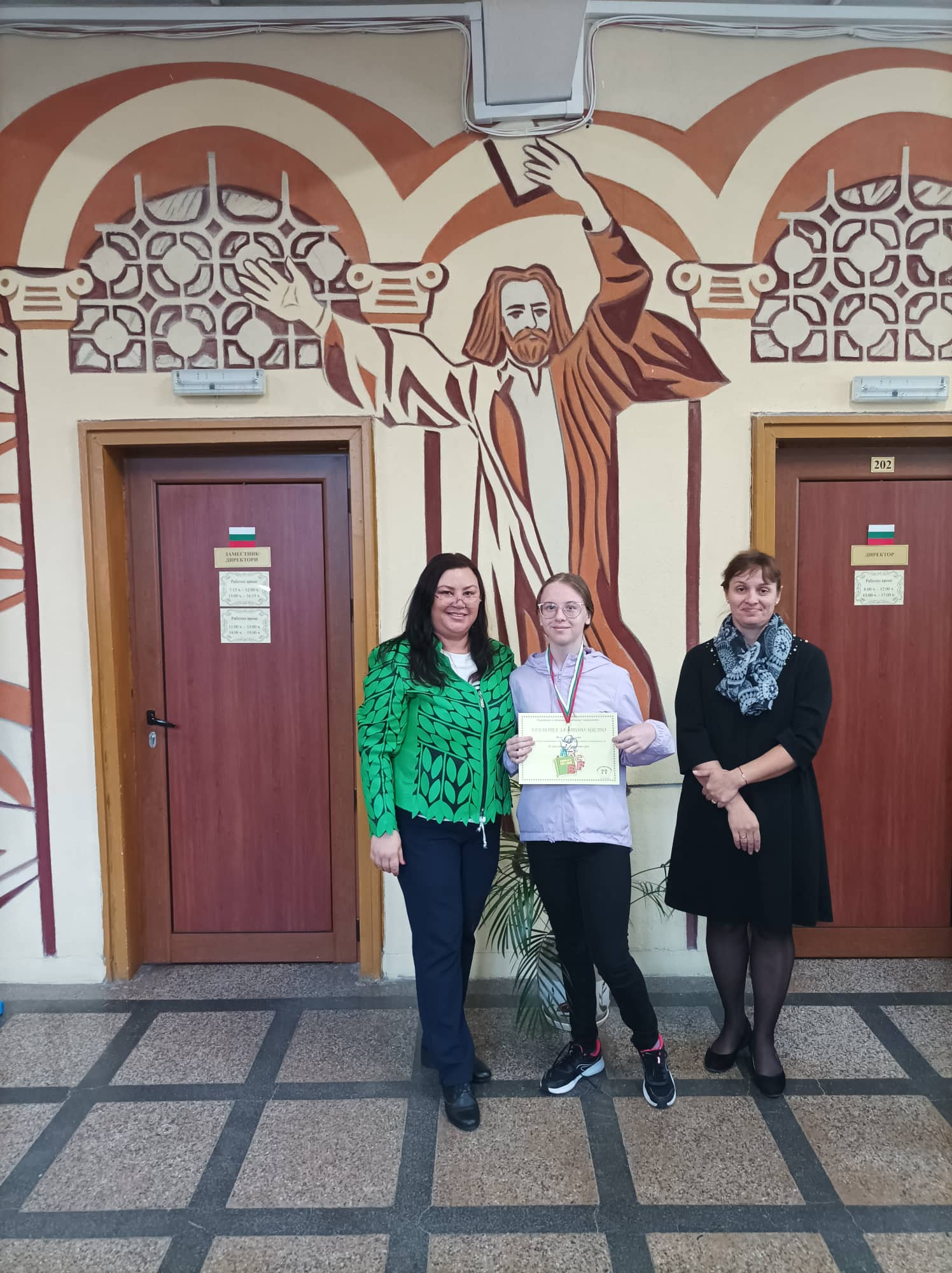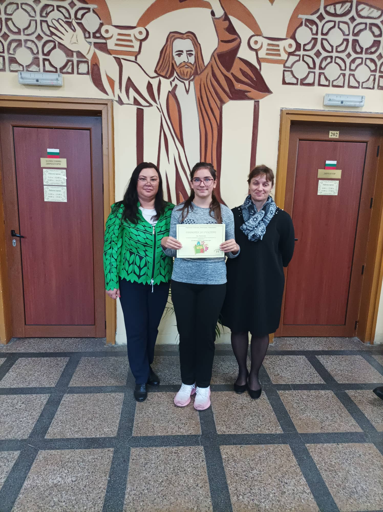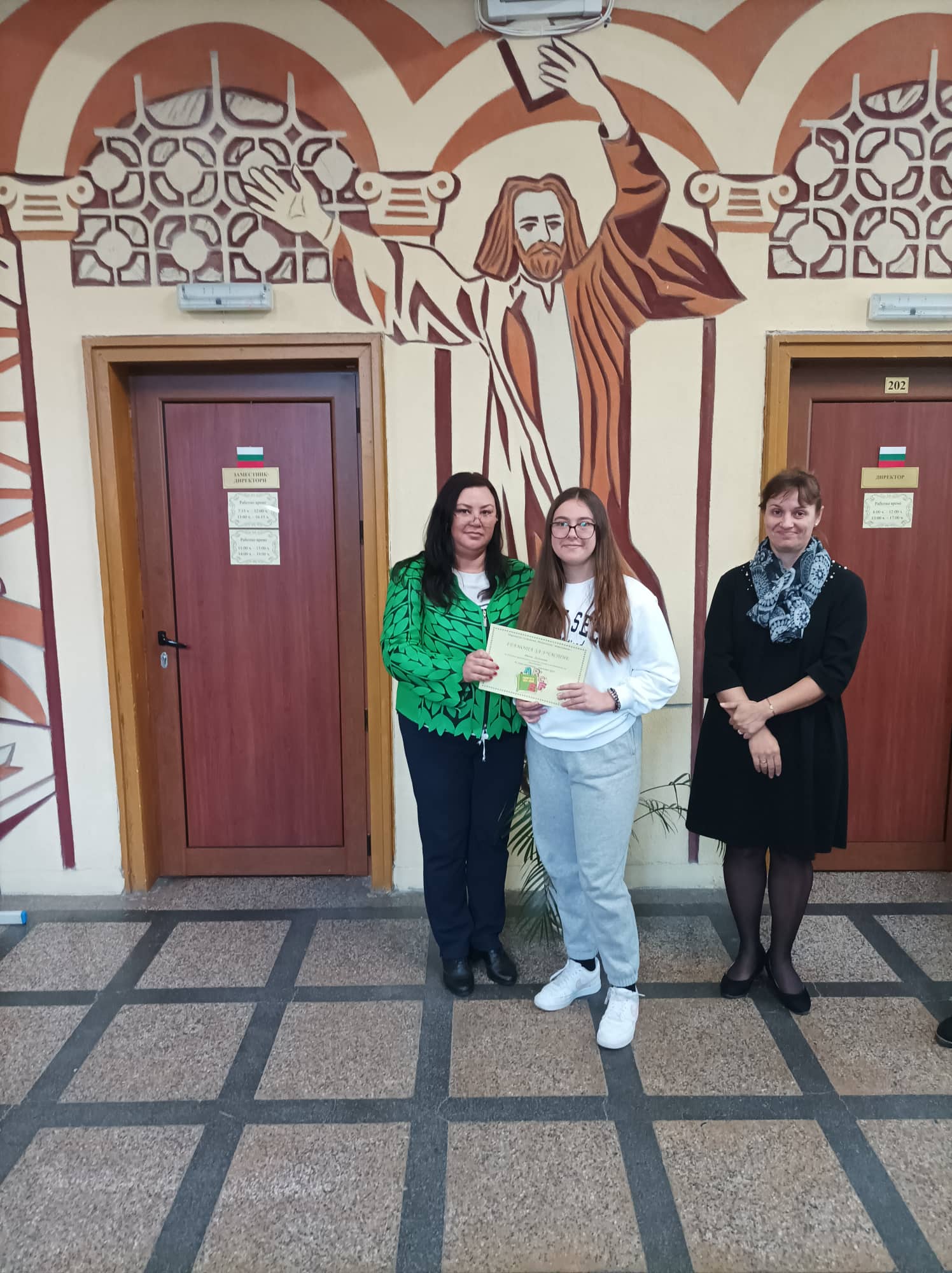 Грамоти: Георги Глинджурски, Ивона Дамянова, Гергана Шопова, 7. Б кл.