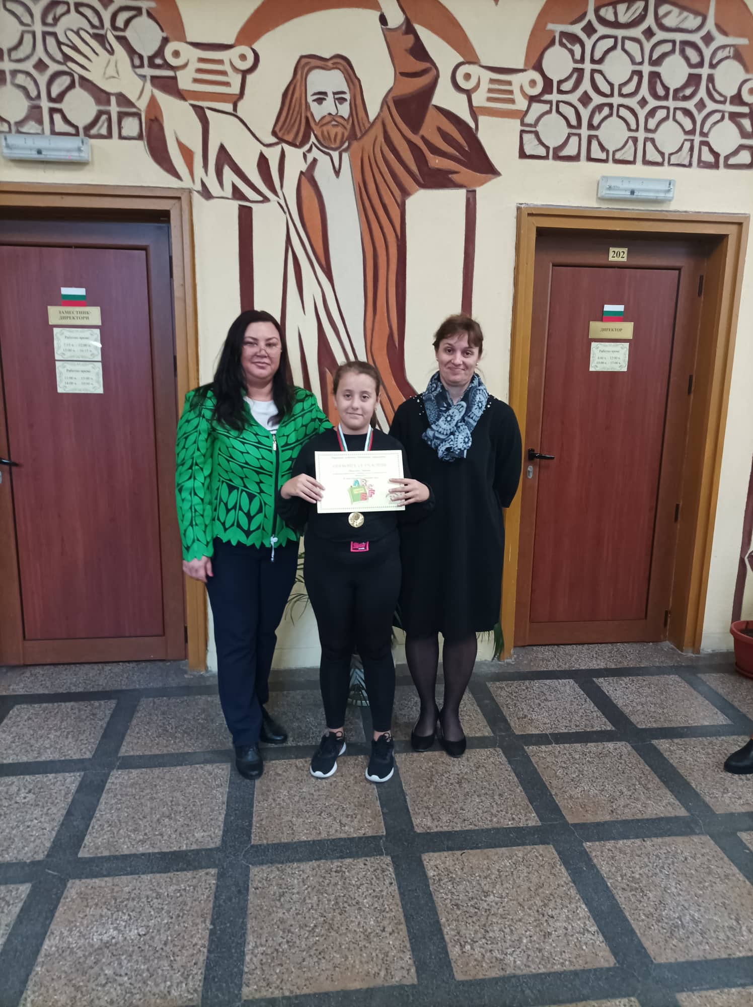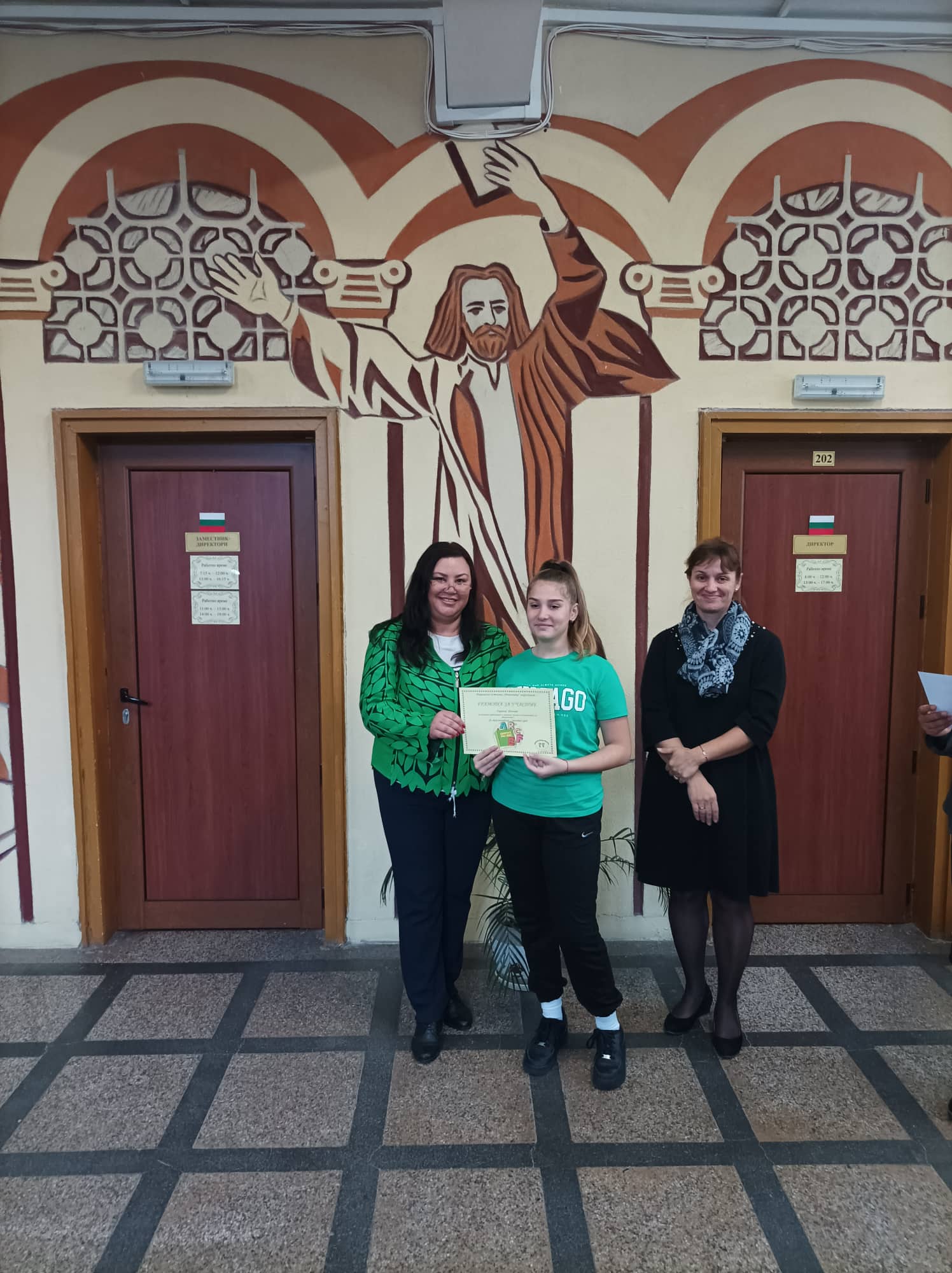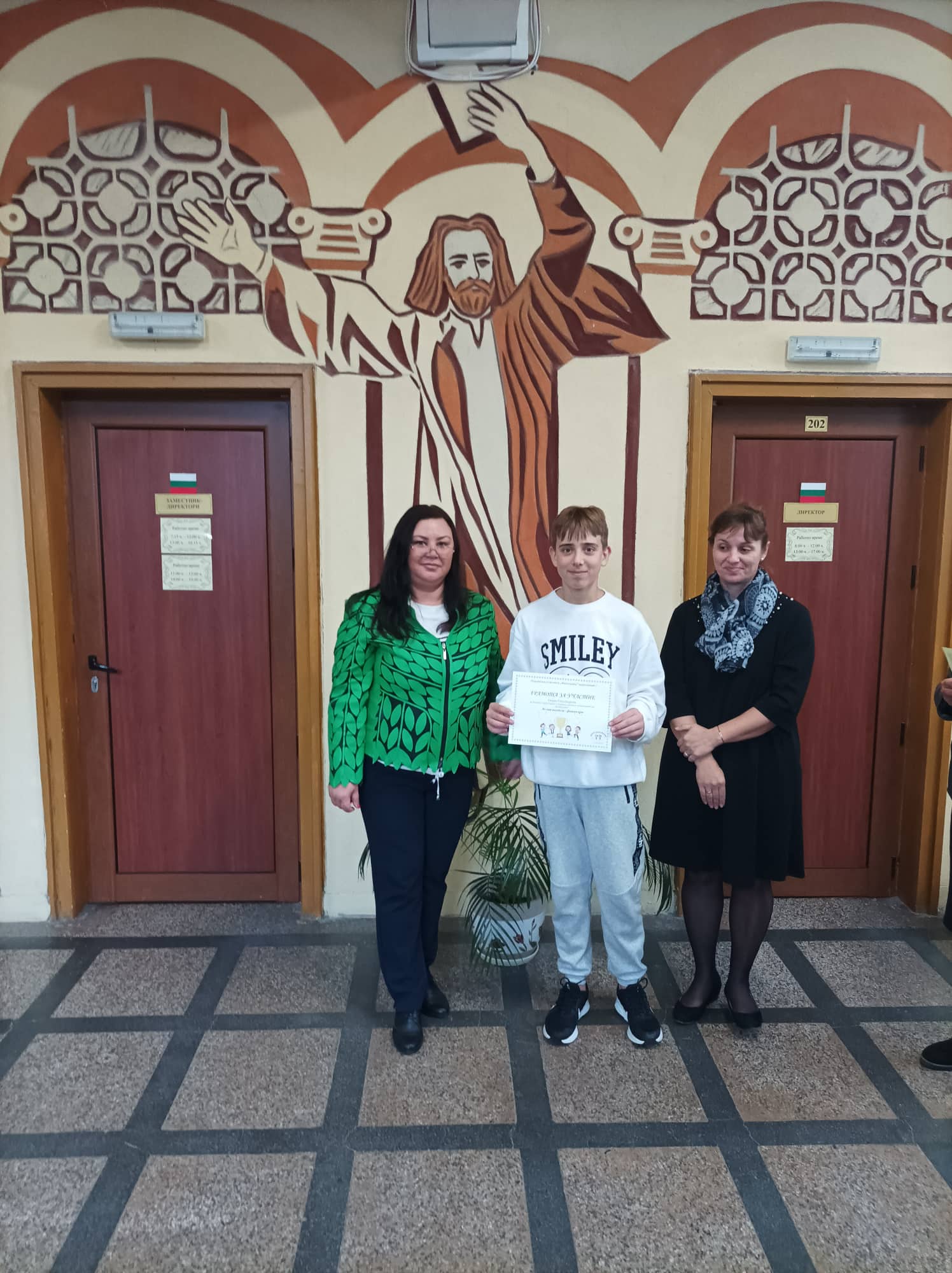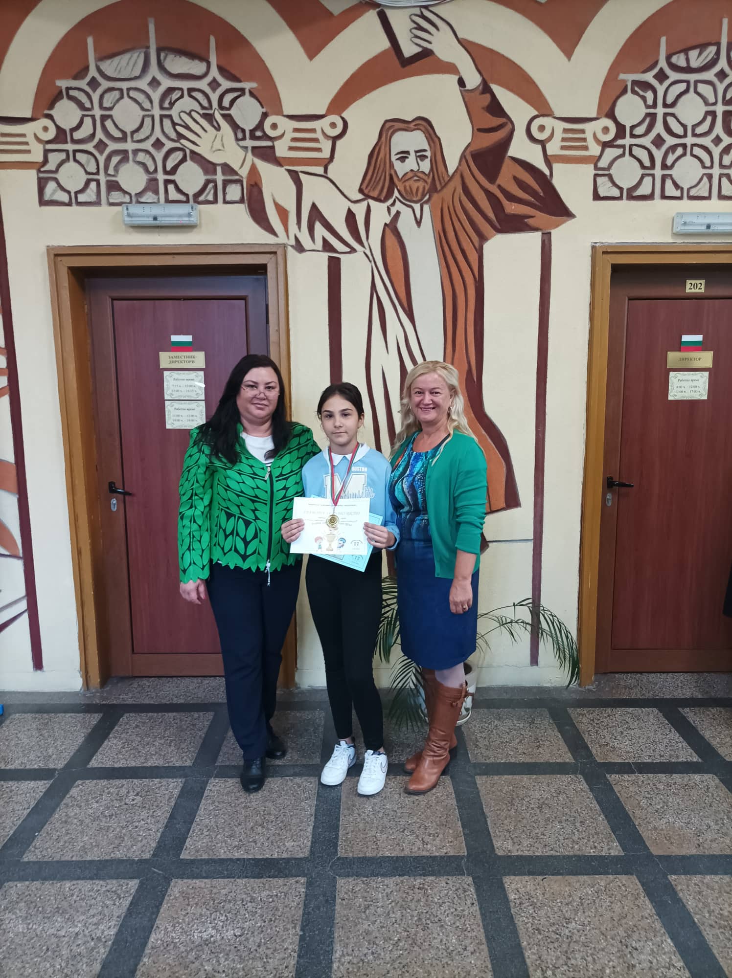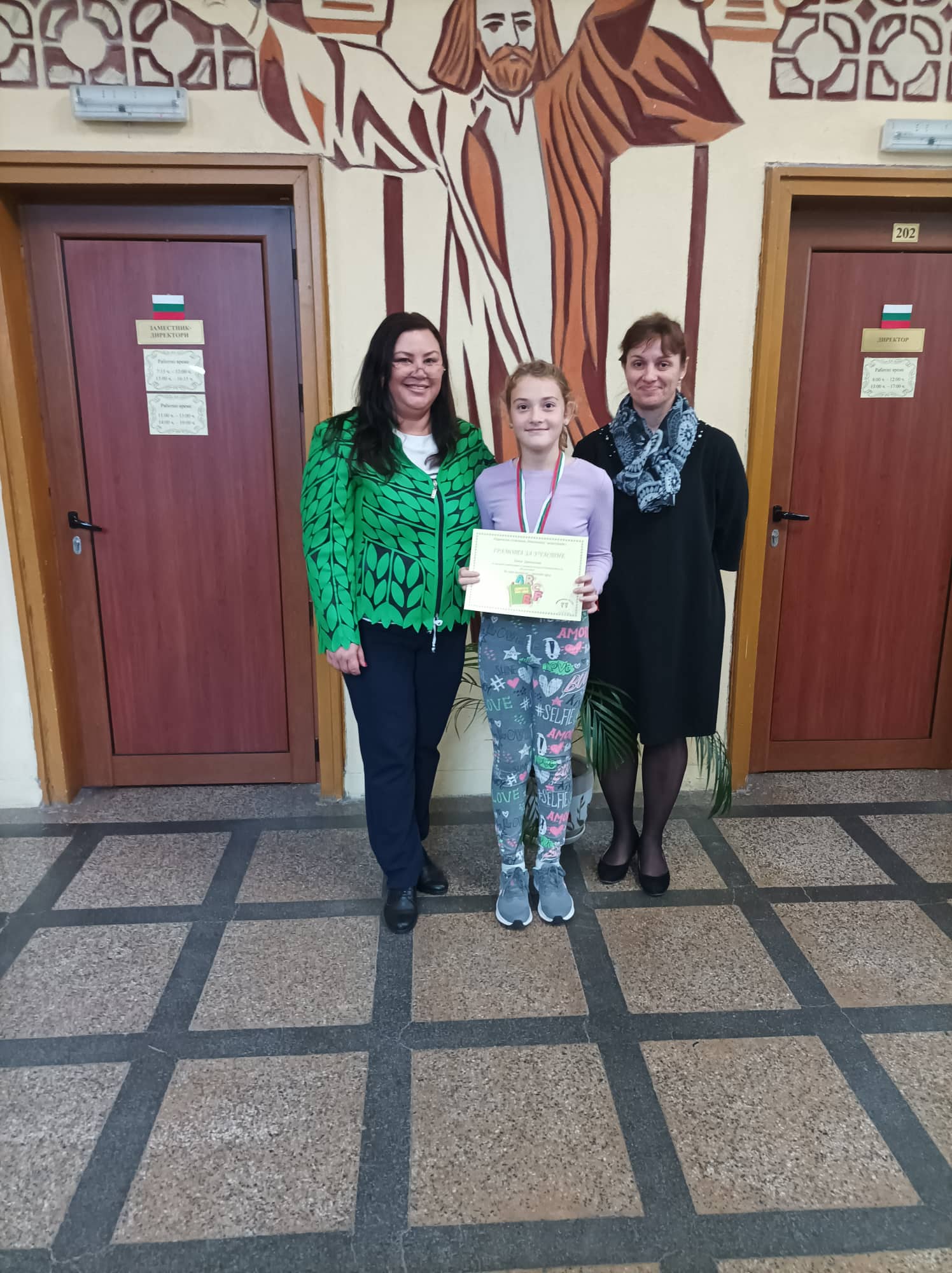 Грамоти: Георги Глинджурски, Ивона Дамянова, Гергана Шопова, 7. Б кл.