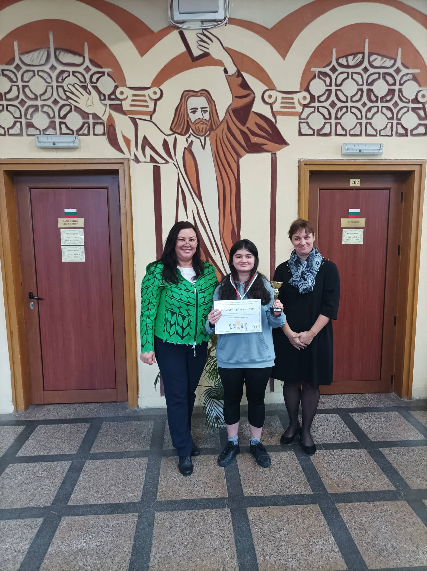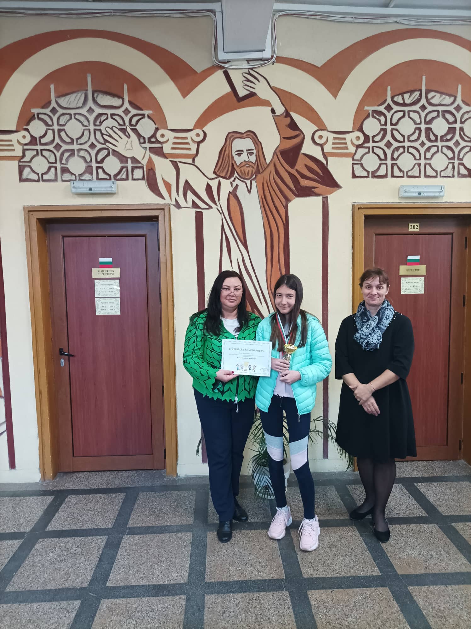 Директорът връчи две златни купи, множество златни, сребърни и бронзови медали, както и грамоти за отлично представяне в пролетния и във финалния кръг на „Родна реч”. Ето и резултатите: