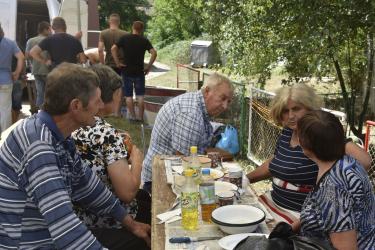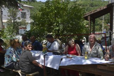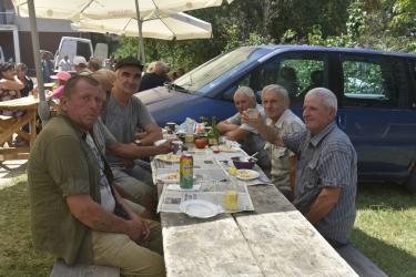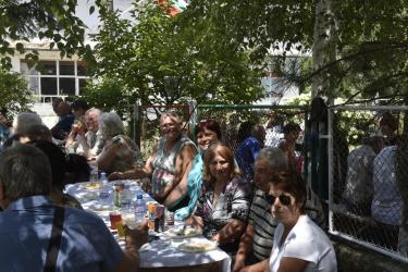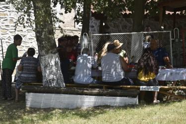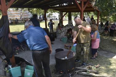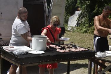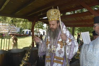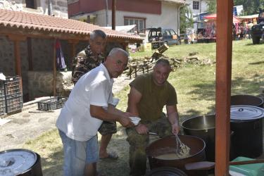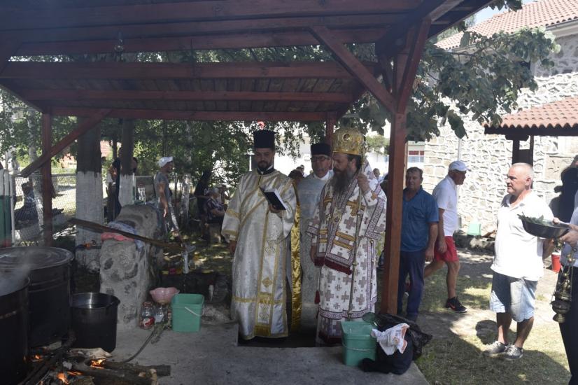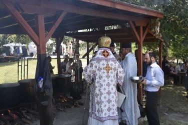 Негово високопреосвещенство благослови и вкусния курбан, който се приготвя от майстори – готвачи. Общо 11 казан врят в момента и ще бъдат раздадени на всички жители и гости на село Градево по повод днешния събор „Илинден“.