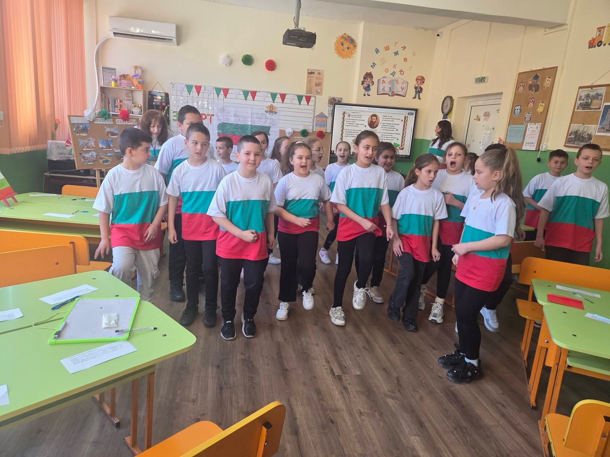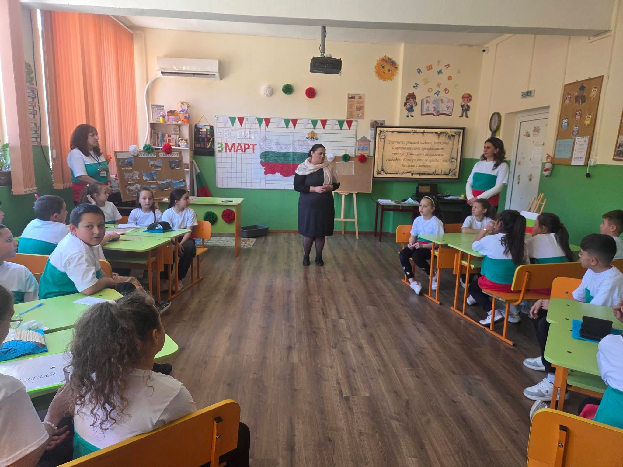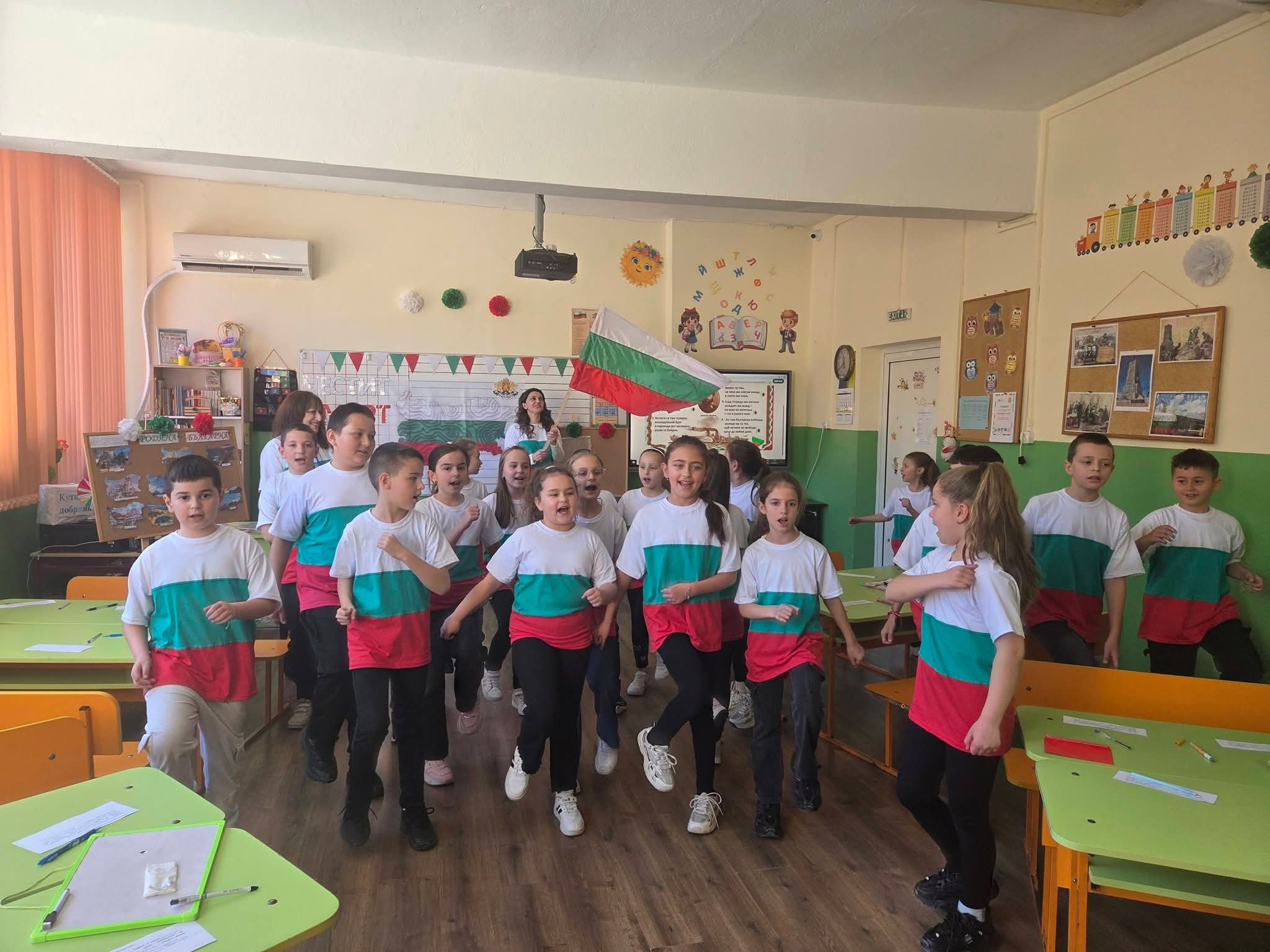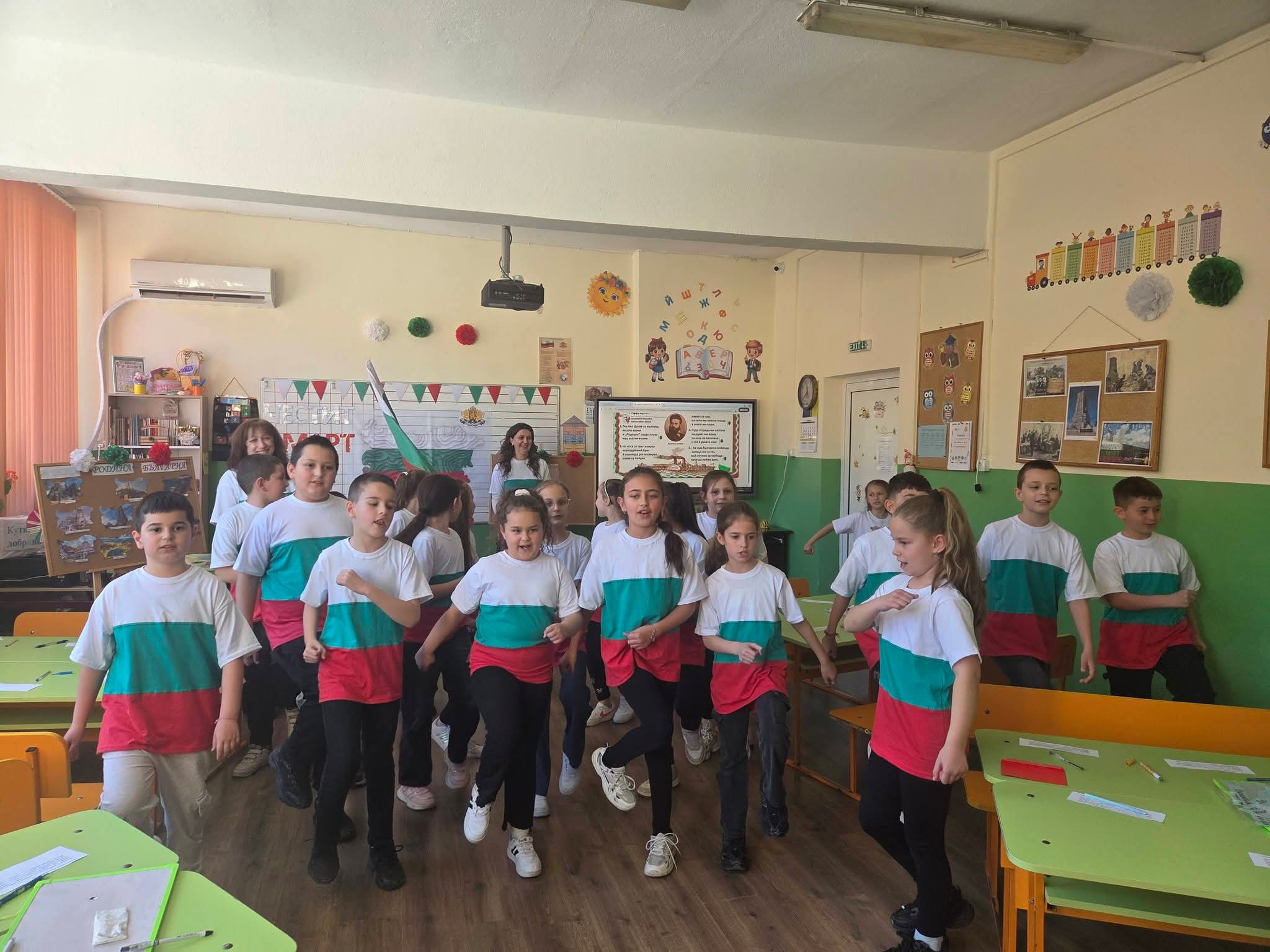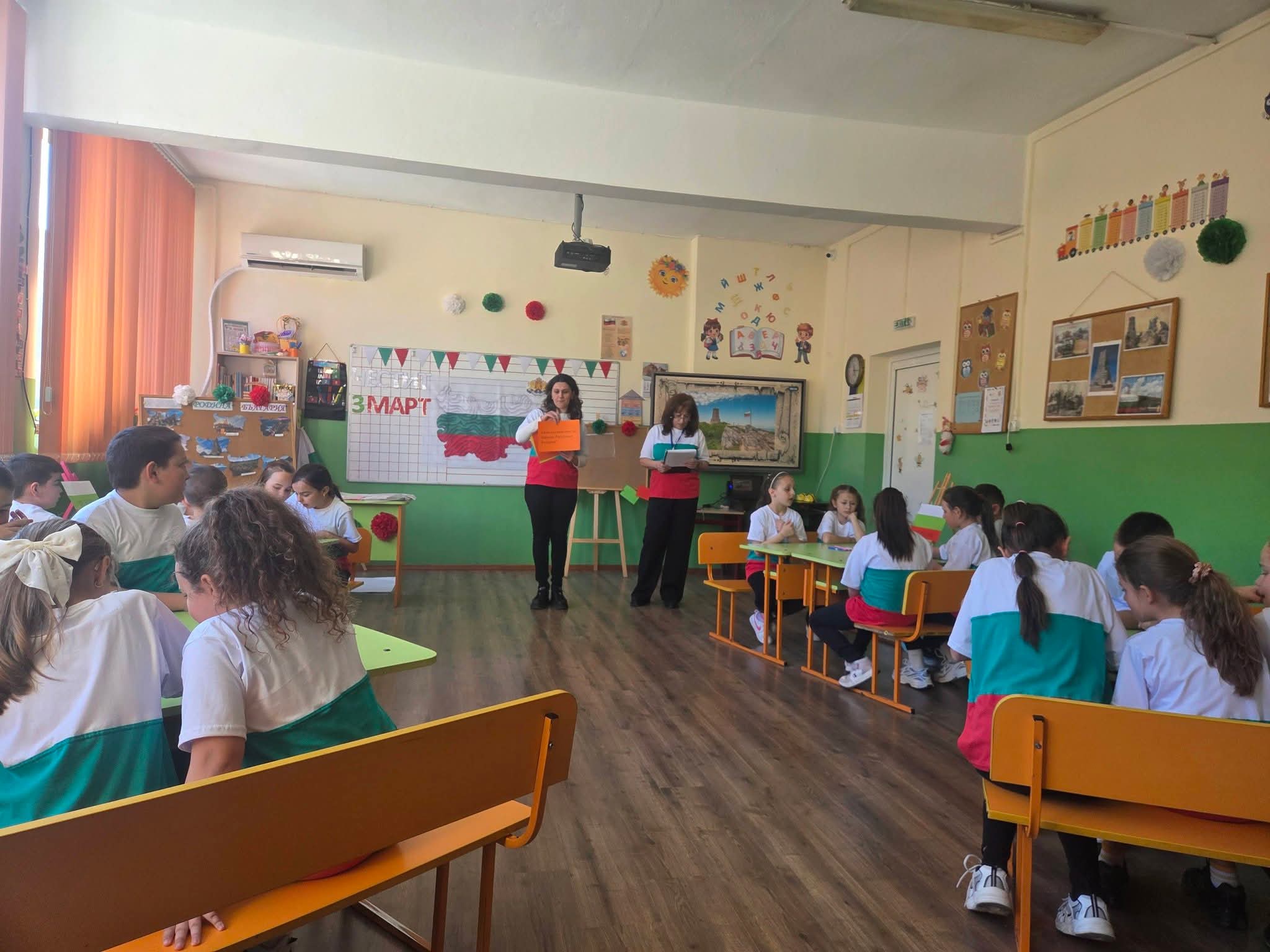 Тържественото начало беше поставено с рецитал на ученици, посветен на България и нейните герои. След това Изабел Змиярова вдъхновено изпълни стихотворението „Аз съм българче“, а Денис Синяков гордо развя българското знаме. Урокът продължи с изпълнение на химна на Република България, създавайки силно чувство на патриотизъм и единство. 🇧🇬