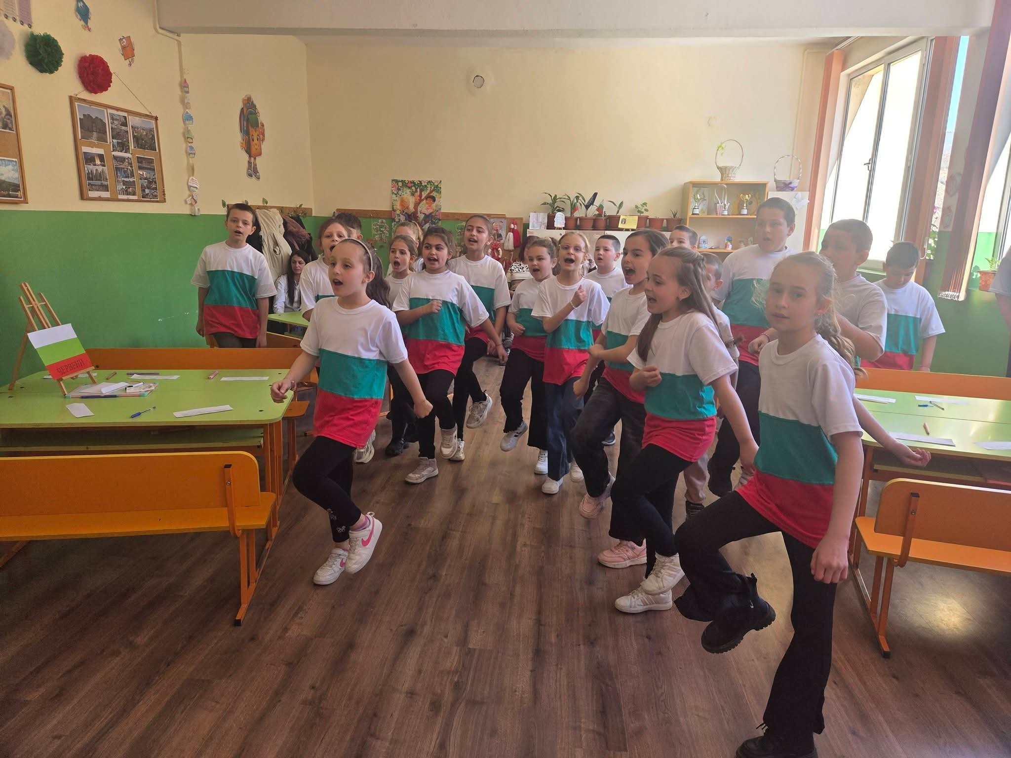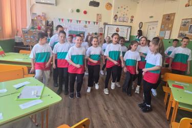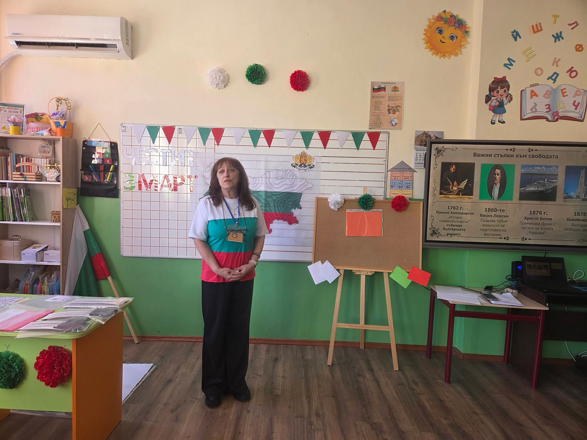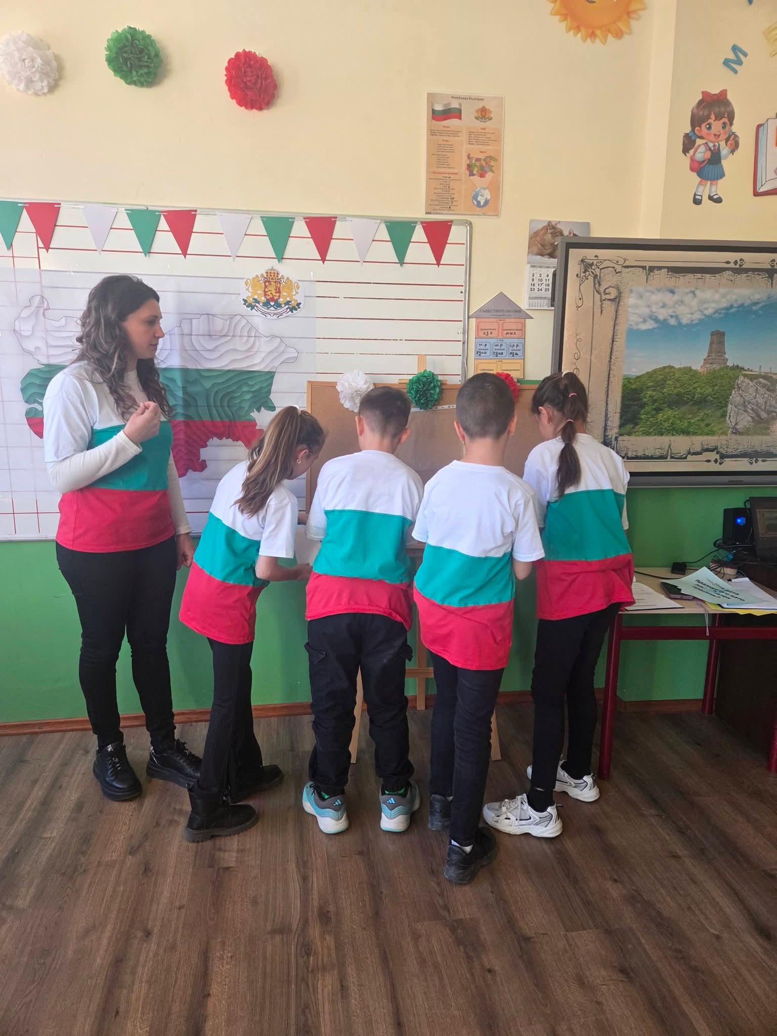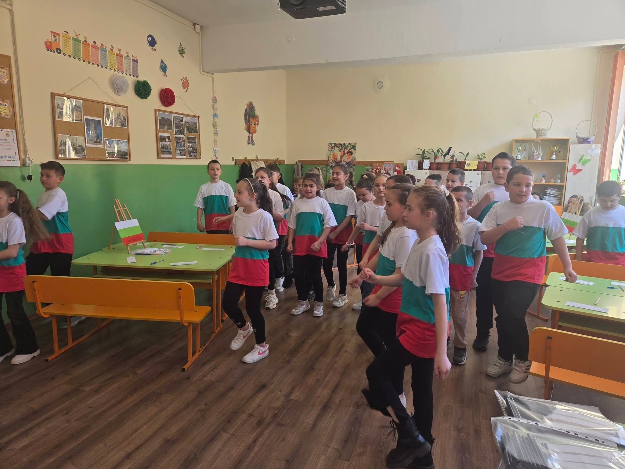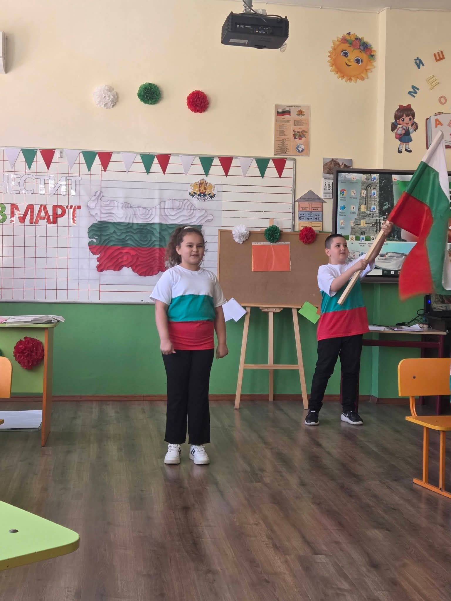 Тържественото начало беше поставено с рецитал на ученици, посветен на България и нейните герои. След това Изабел Змиярова вдъхновено изпълни стихотворението „Аз съм българче“, а Денис Синяков гордо развя българското знаме. Урокът продължи с изпълнение на химна на Република България, създавайки силно чувство на патриотизъм и единство. 🇧🇬