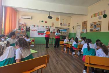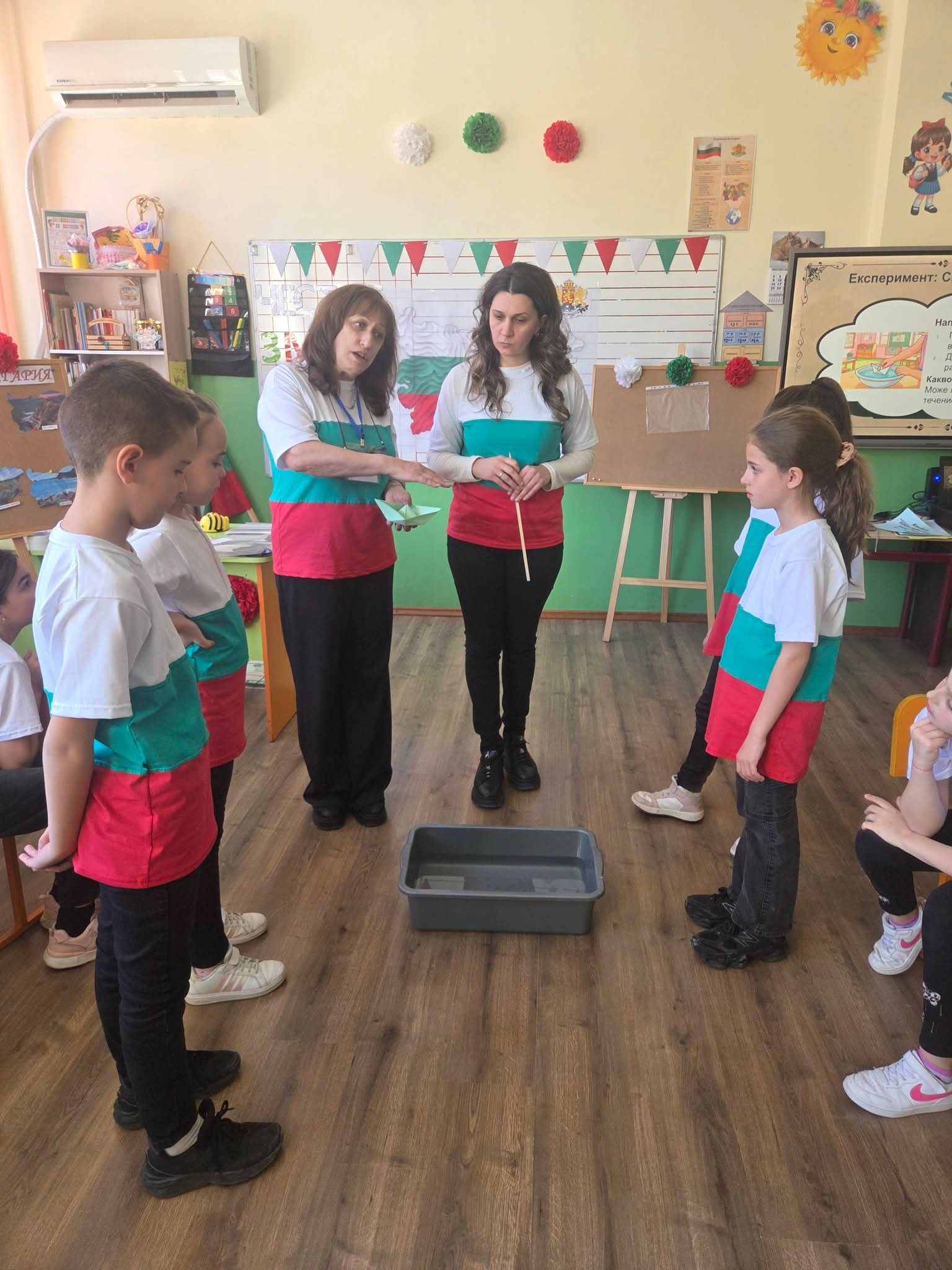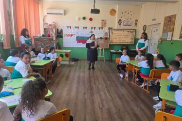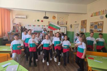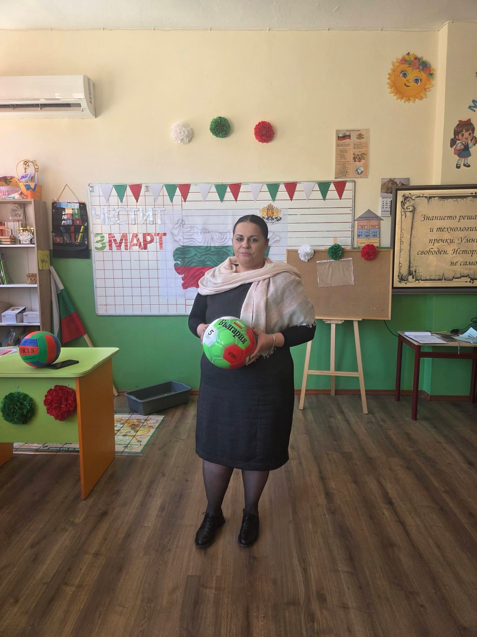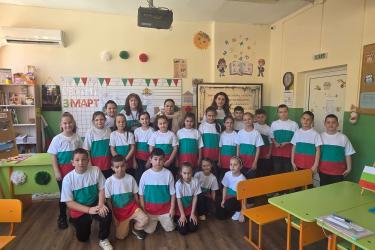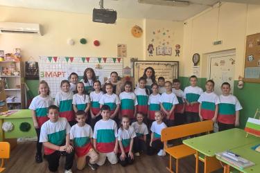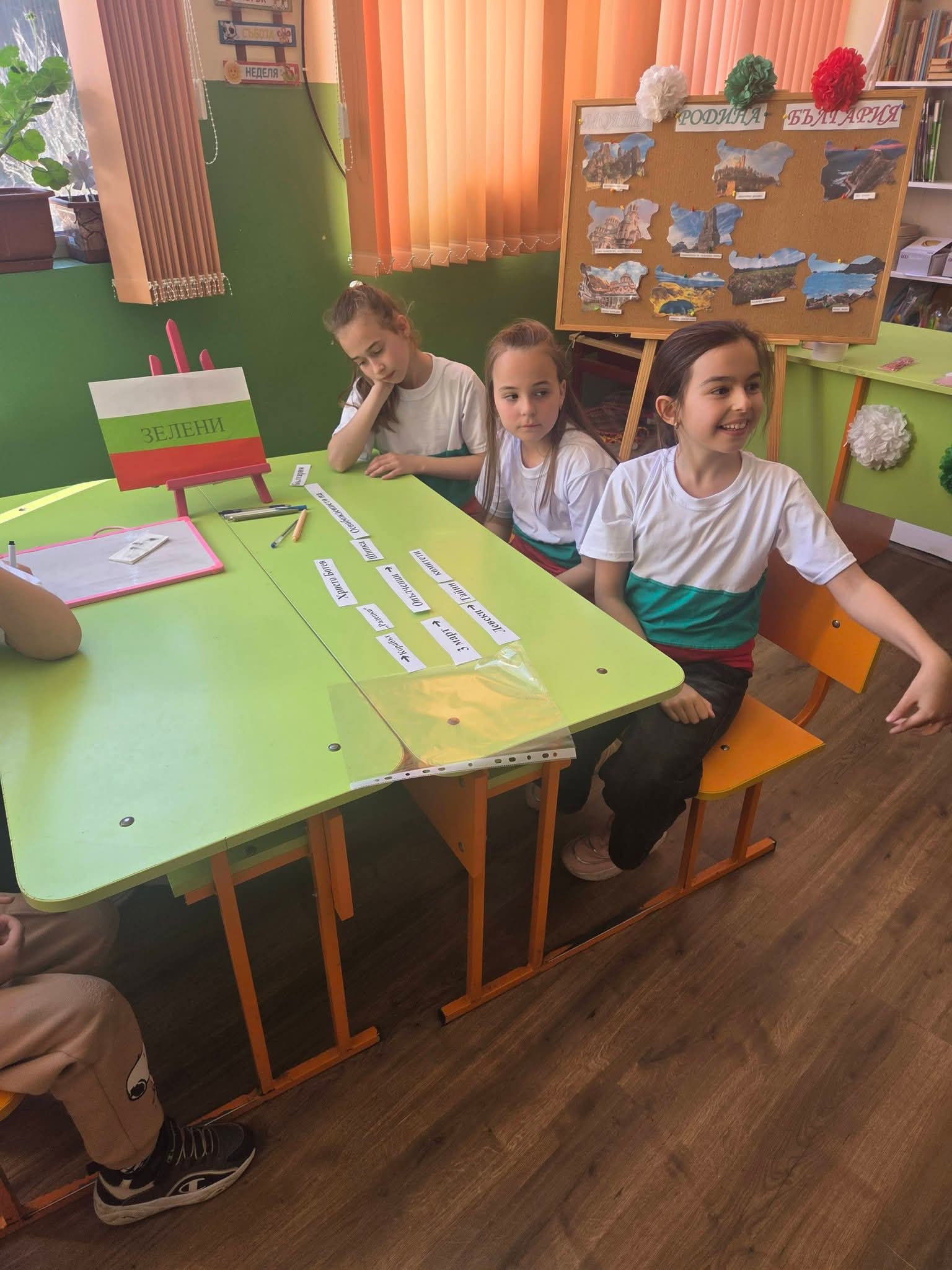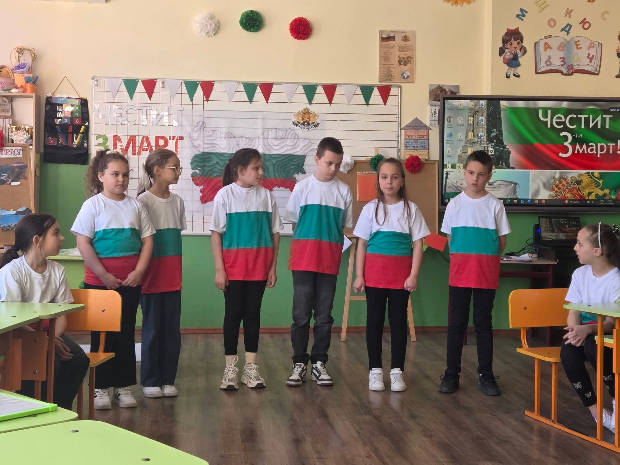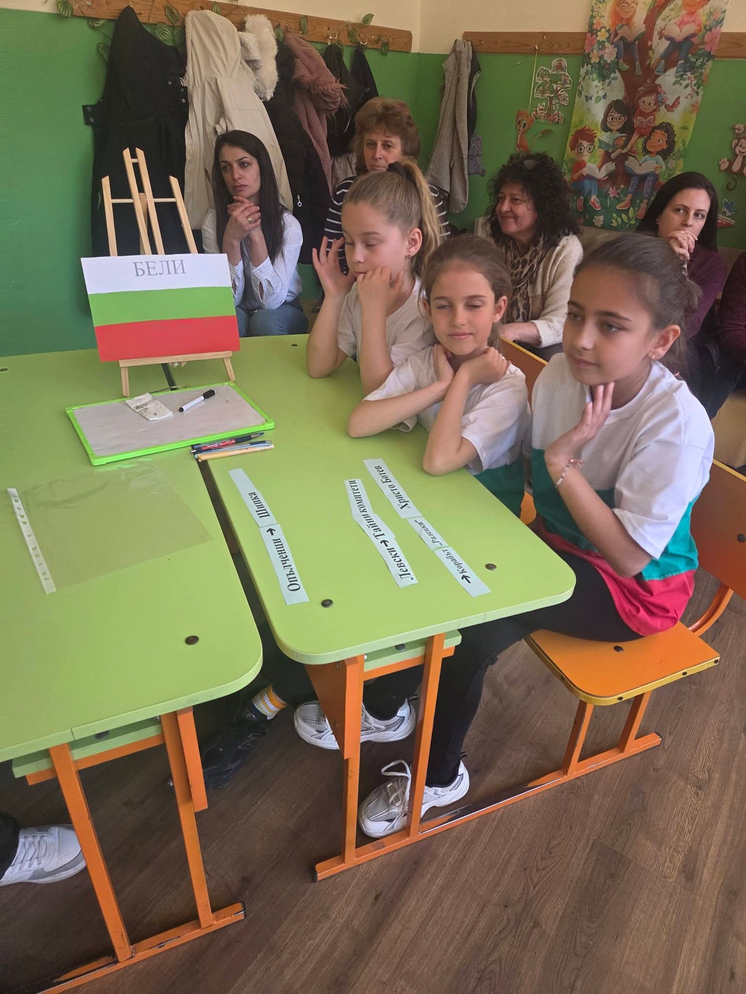 Тържественото начало беше поставено с рецитал на ученици, посветен на България и нейните герои. След това Изабел Змиярова вдъхновено изпълни стихотворението „Аз съм българче“, а Денис Синяков гордо развя българското знаме. Урокът продължи с изпълнение на химна на Република България, създавайки силно чувство на патриотизъм и единство. 🇧🇬