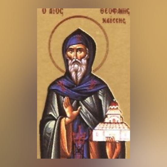 Св. Теофан е роден в Янина в началото на XVI век. Замонашва се в светогорския манастир Дохиар и е избран за игумен на манастира.