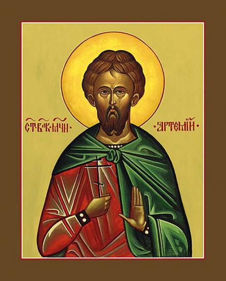 По това време в Антиохия се намирал египетският управител Артемий, известен като славен воин още при св. император Константин Велики. Той бил с Константин, когато на небето се появило чудното знамение на Христовия кръст. При царуването на Констанций на него било поръчано да пренесе от Ахаия в Цариград мощите на светите апостоли Андрей, Лука и Тимотей.