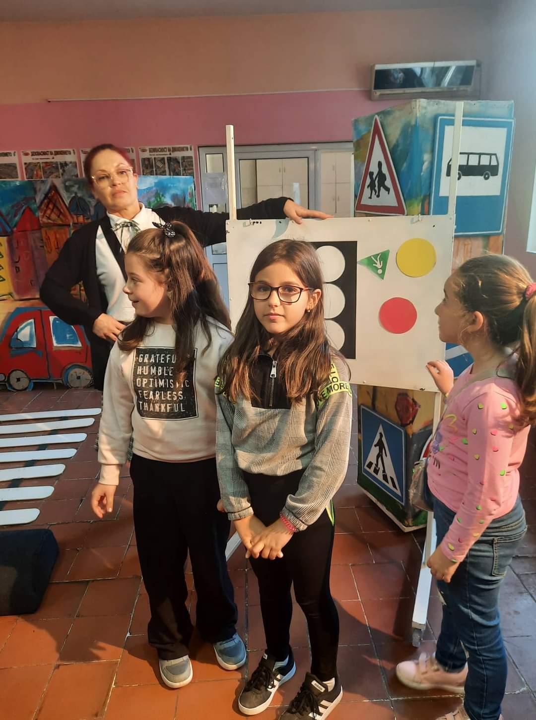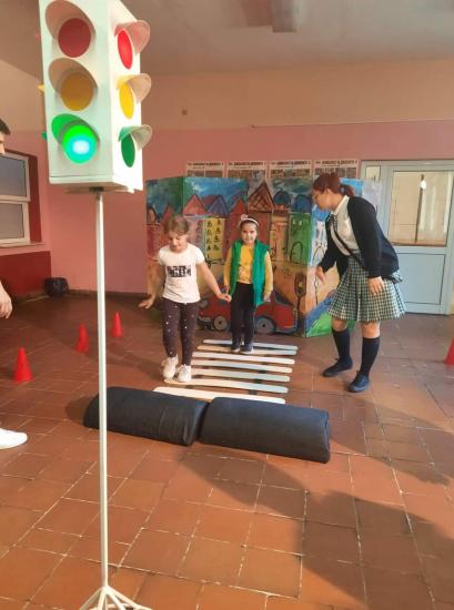 С музика, танци и игри малчуганите бяха отведени в света на пътните знаци, регулировчиците, светофарите и превозните средства.