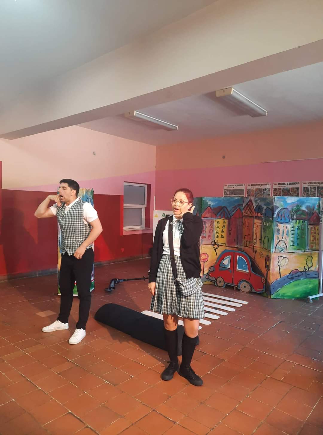 Драматичен театър "Никола Вапцаров" - Благоевград гостува на СУ "Св. Св. Кирил и Методий" - село Крупник с постановката "Весел светофар" от Панайот Цанев.