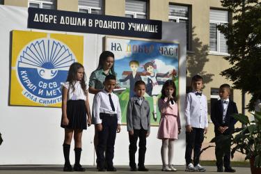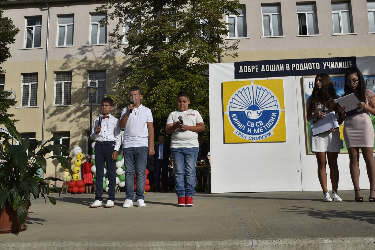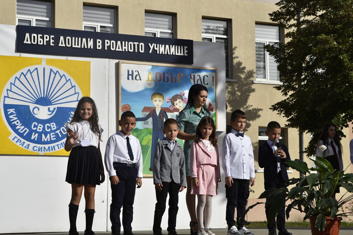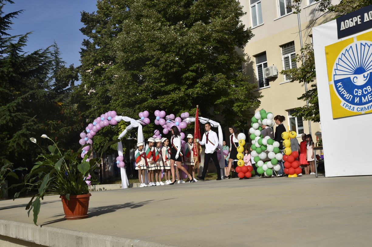 Днес първият училищен звънец в СУ „Св. Св. Кирил и Методий“ – град Симитли удари тържествено не само за първокласниците, които за първи път прекрачиха прага на учебното заведение, но и за всички останали ученици, които с гордост носят емблемата на родното училище.