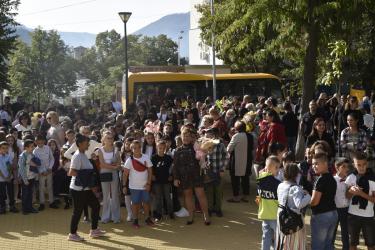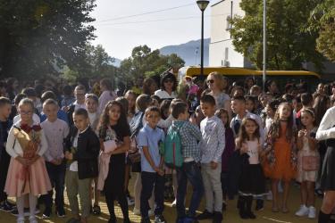 Спазена бе и старата българска традиция – преди децата да прекрачат прага на любимото училище, директорът листна менче с вода, за да им „върви по вода“, както гласи старата народна мъдрост.