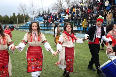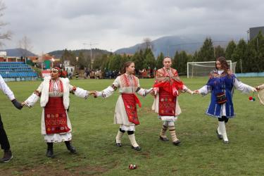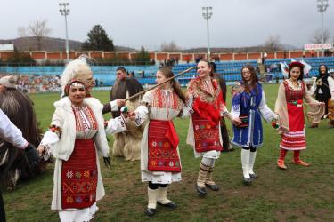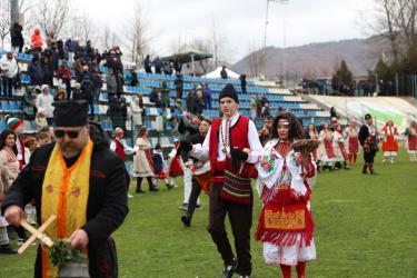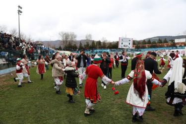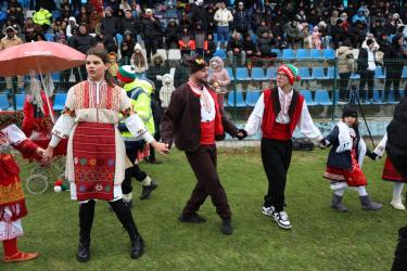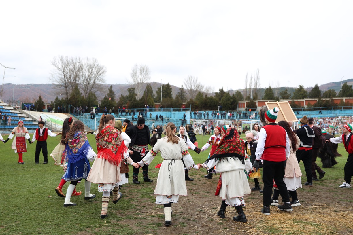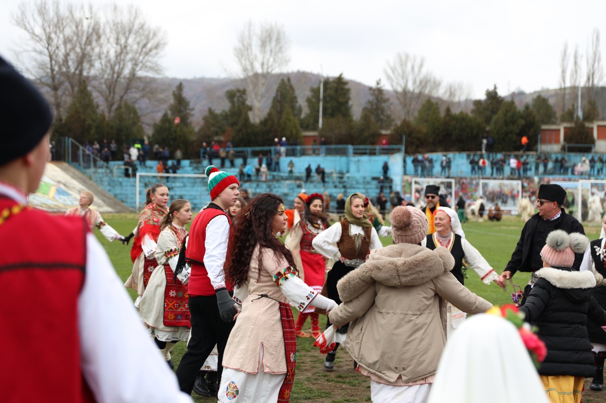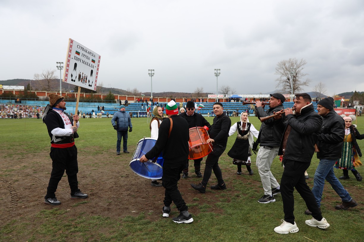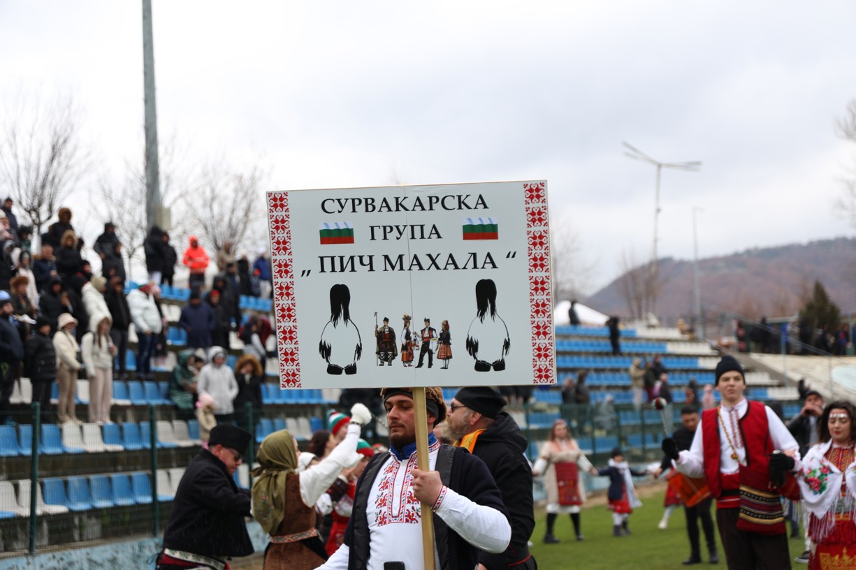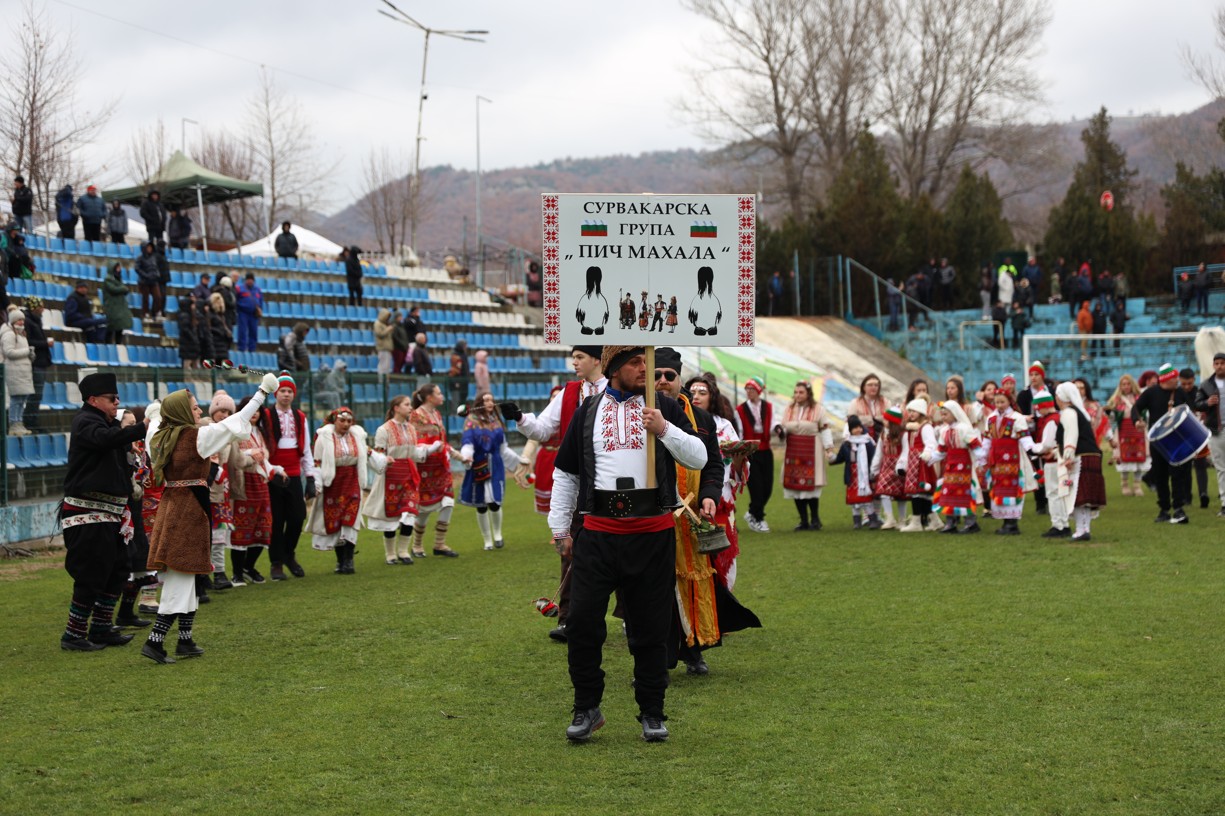 Пред публиката на трибуните днес групата пресъздаде обичая „Сватба“, представен с автентичност, колорит и силно въздействие. Ръководители на кукерската група на "Пич махала" са Димитър Грозданов и Любомир Алексов.