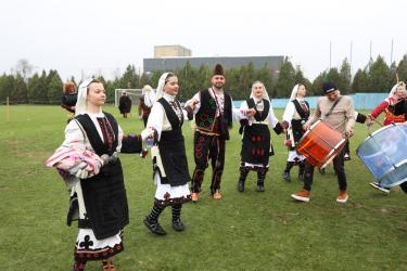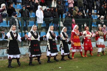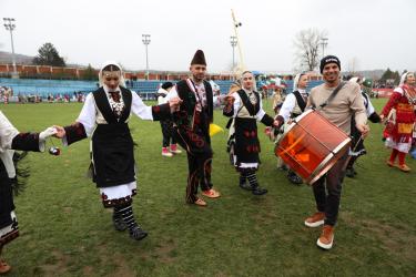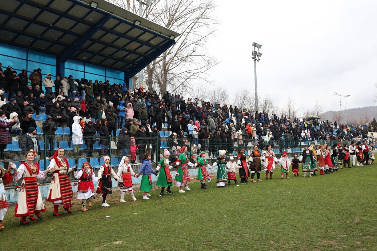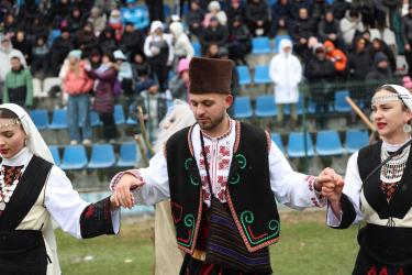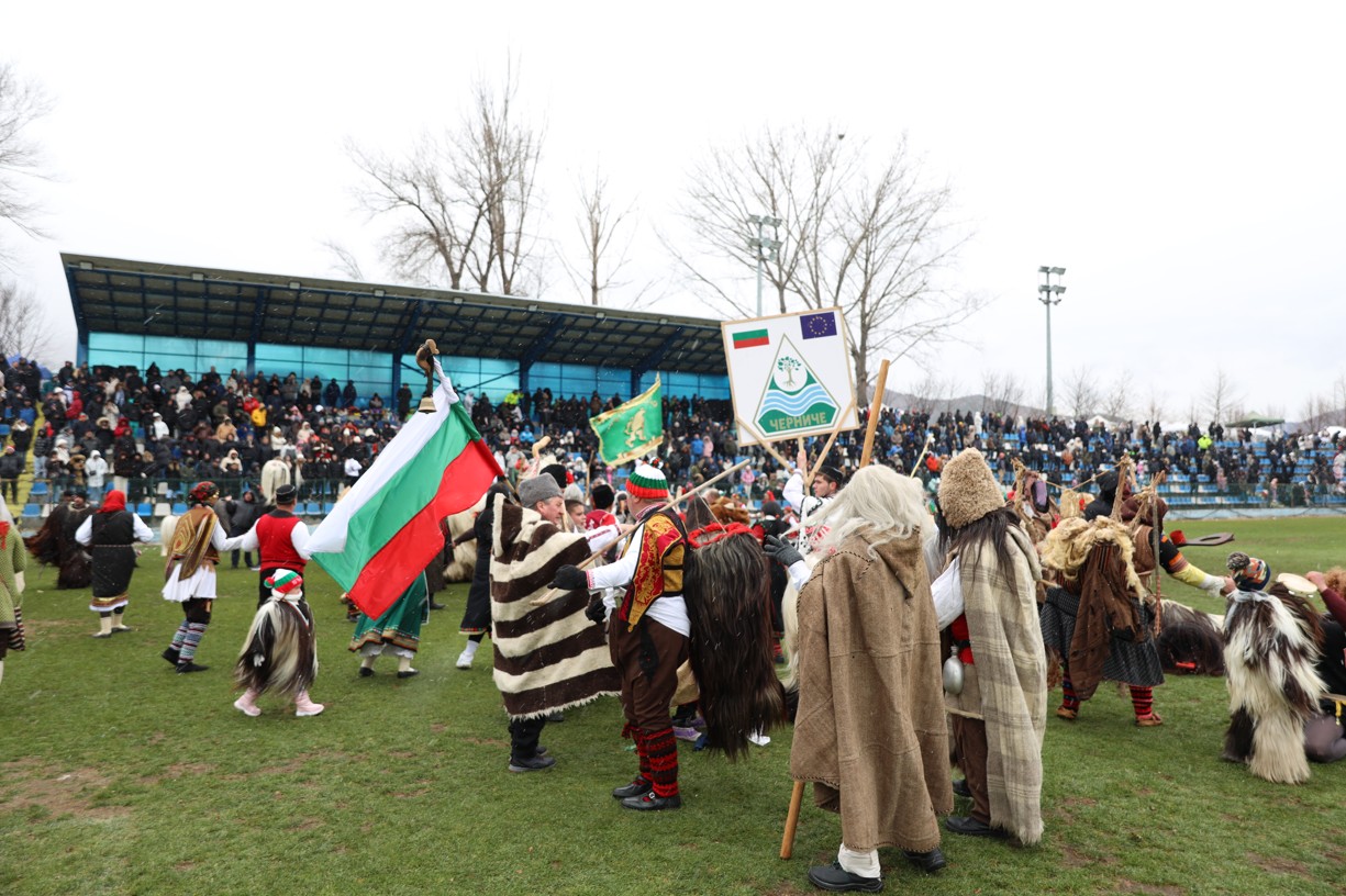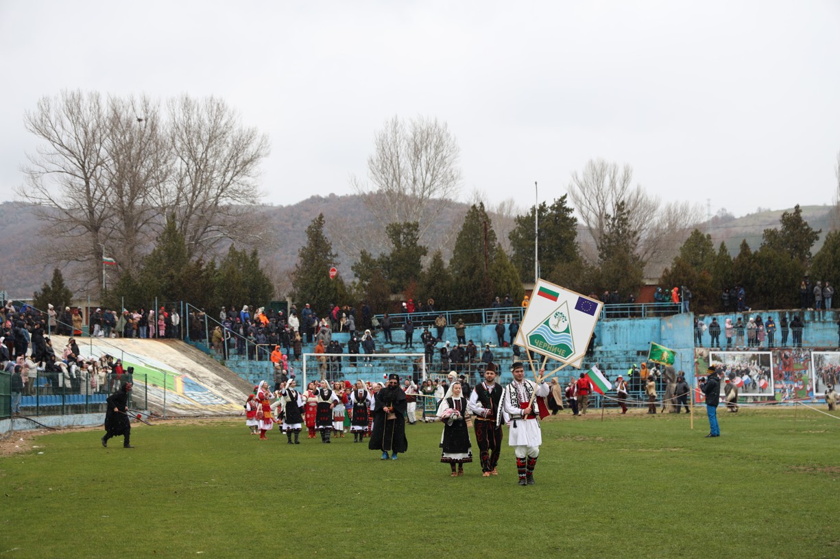 Красивата кукерска група от село Черниче впечатли публиката на фестивала „Симитлия – Древната земя на кукерите“ 2026. Водени от кмета на селото Георги Стефанов, участниците дефилираха пред многобройната публика и се превърнаха в един от акцентите на неповторимия фестивал в Симитли.