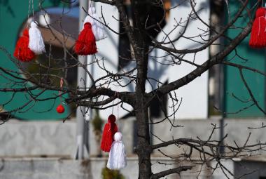 Дърветата, на площада в Симитли, грейнаха в мартенска премяна
