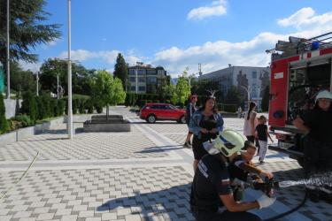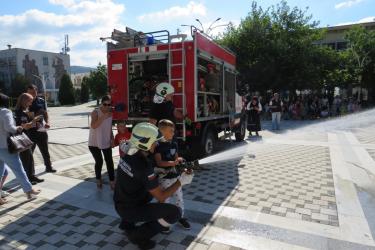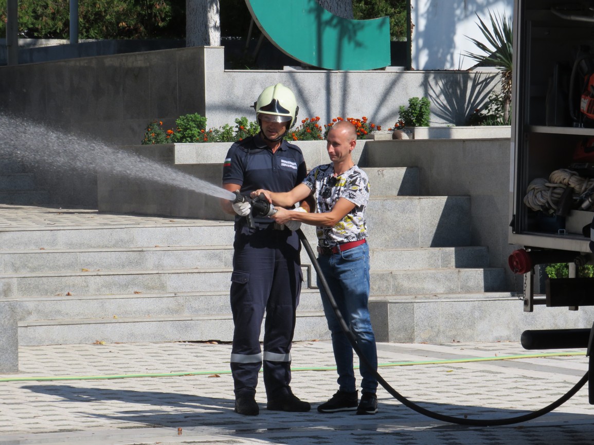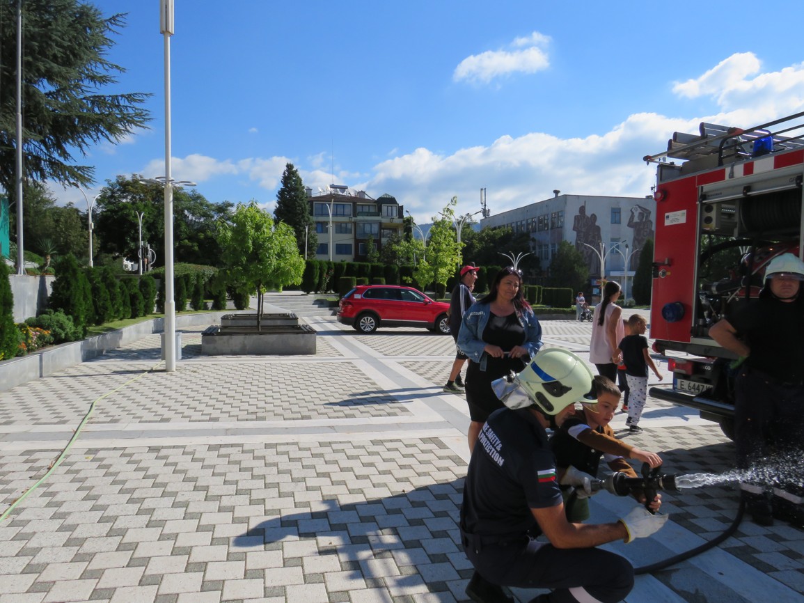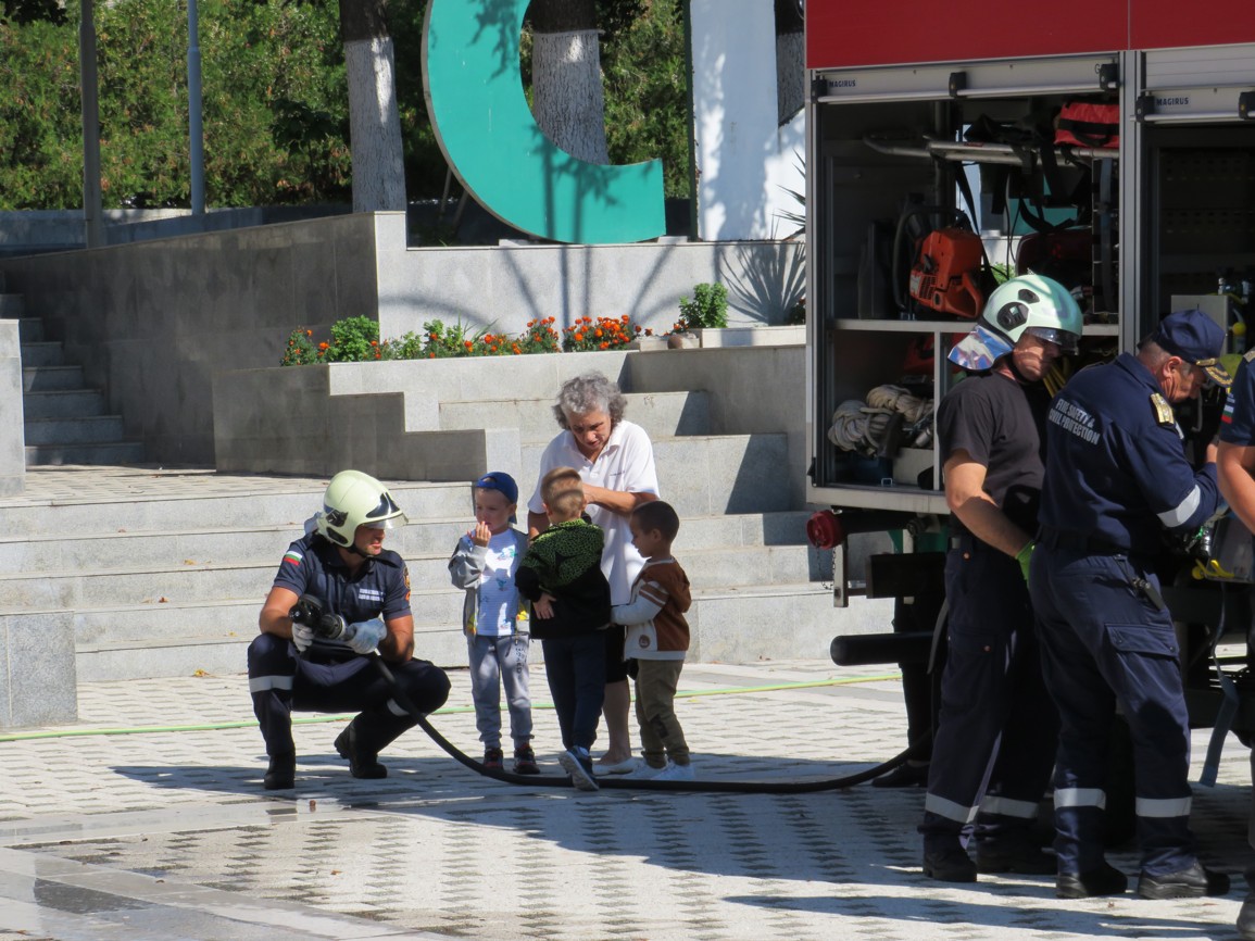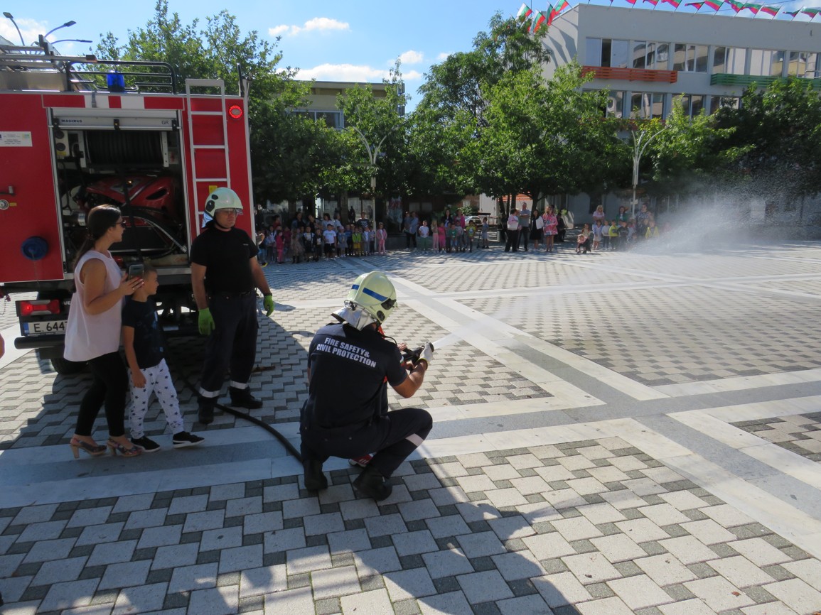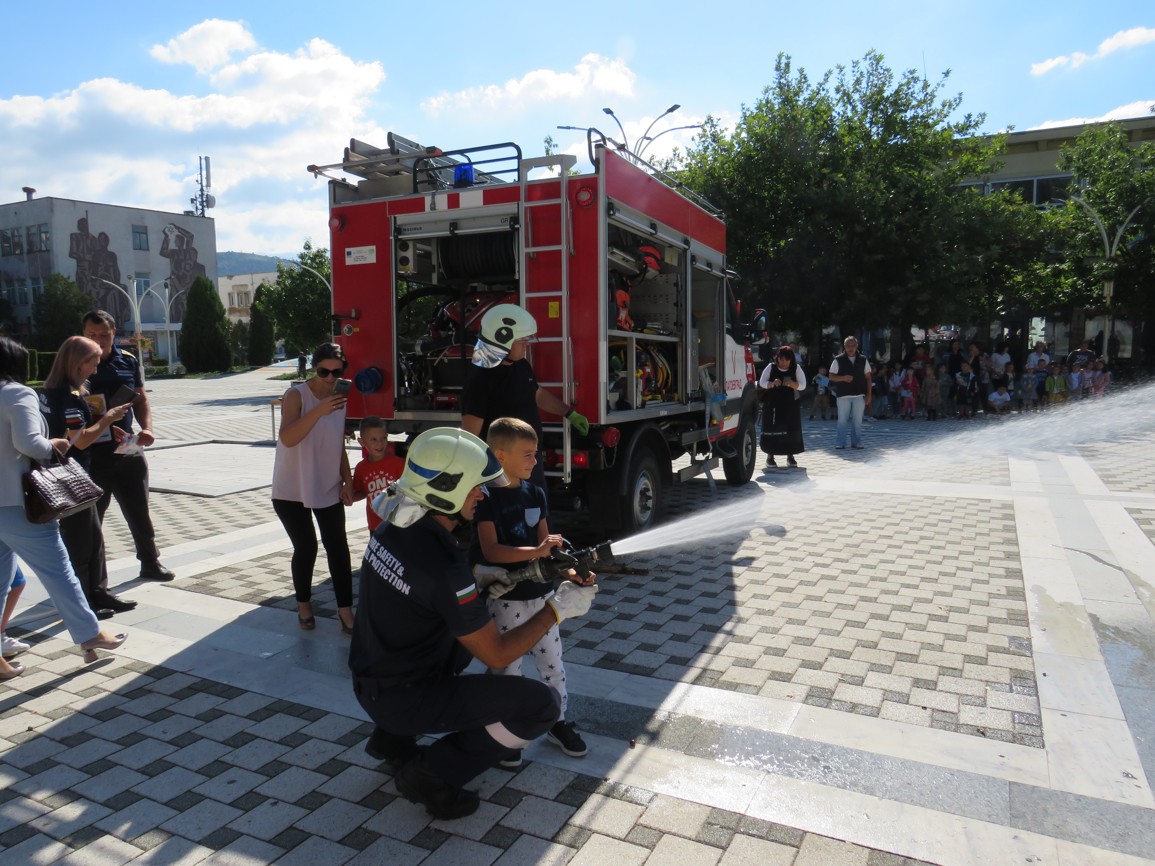 Още в ранните часове на деня на площад „Септември“ паркира пожарен автомобил, около който се събраха дечица от нашата община, за да се запознаят с работата на пожарникарите. Опитни огнеборци им разказаха колко опасни са пожарите и защо е важно да спазваме правилата за пожарна безопасност не само в горите, но и в домовете си.