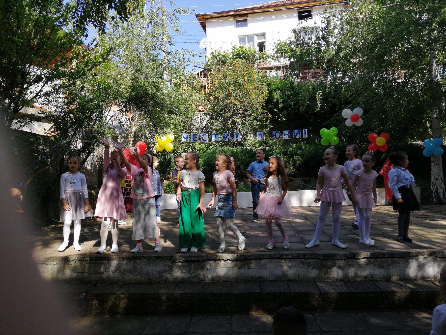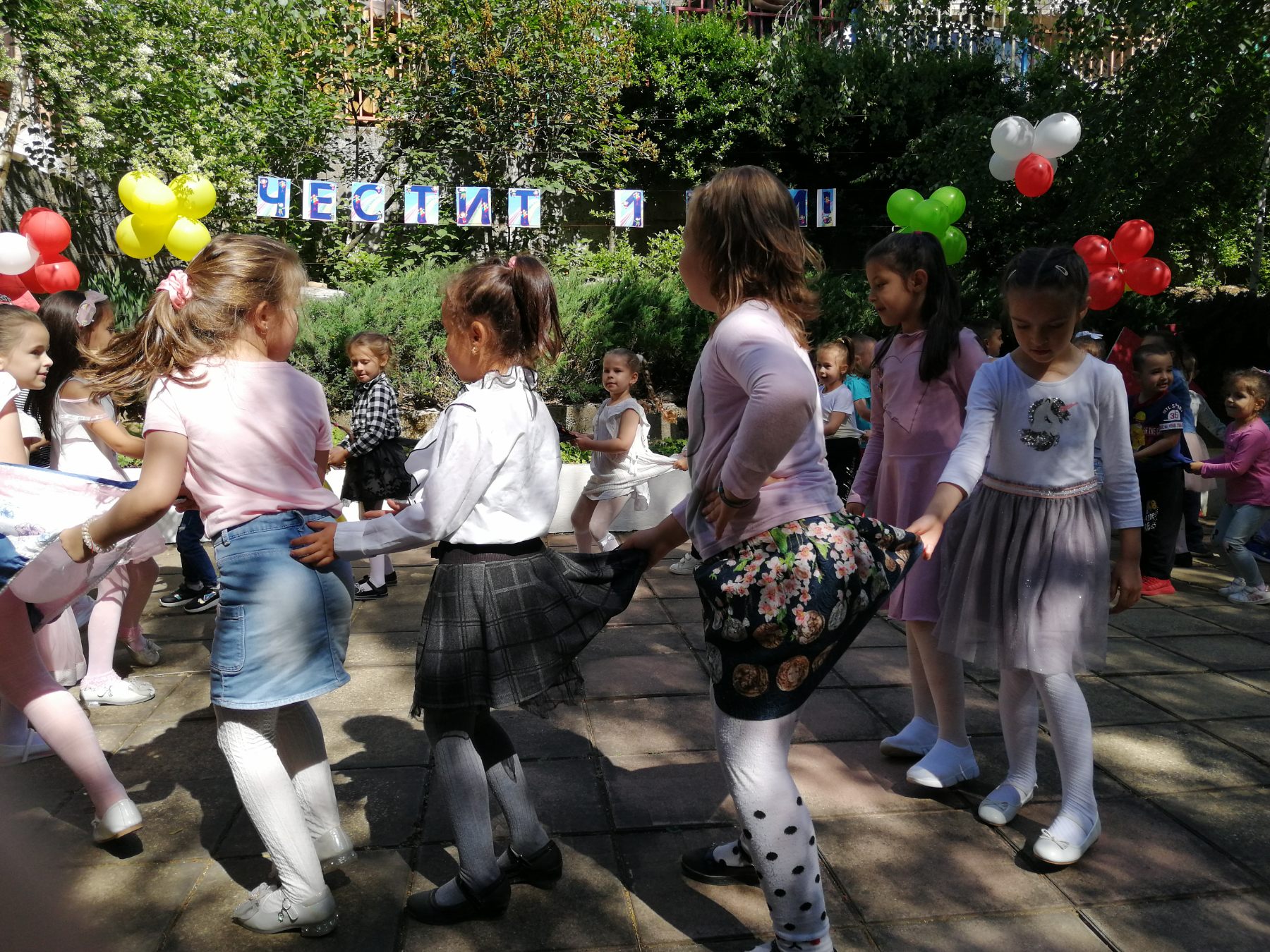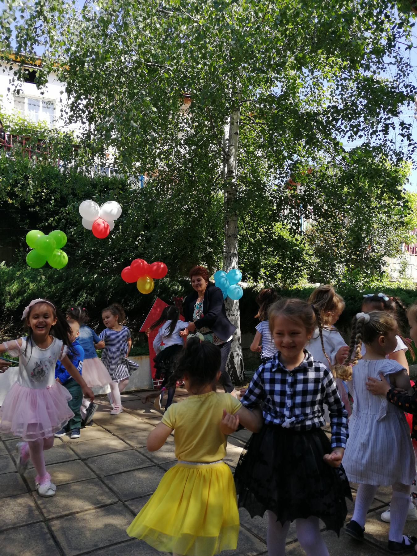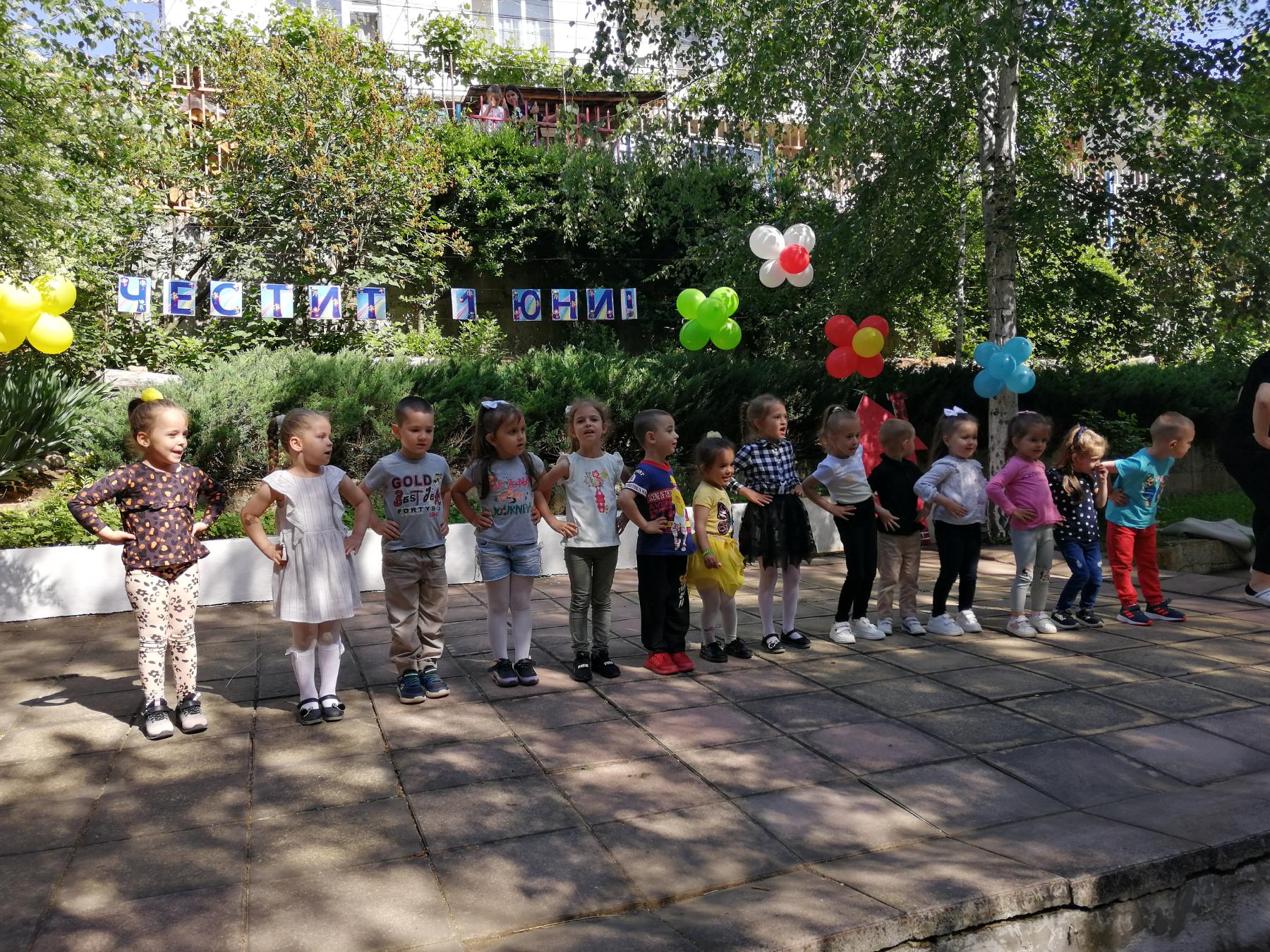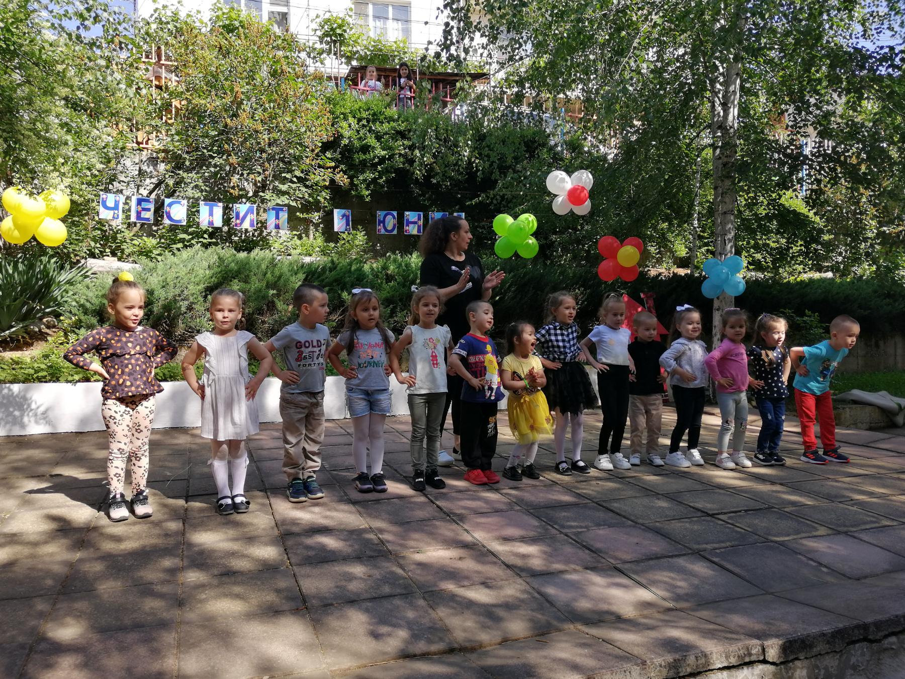 Те рецитираха стихчета, посветени на празника. Рисуваха с тебешири върху асфалт, забавляваха се със сапунени мехури и танцуваха на специално украсена сцена с много балони.