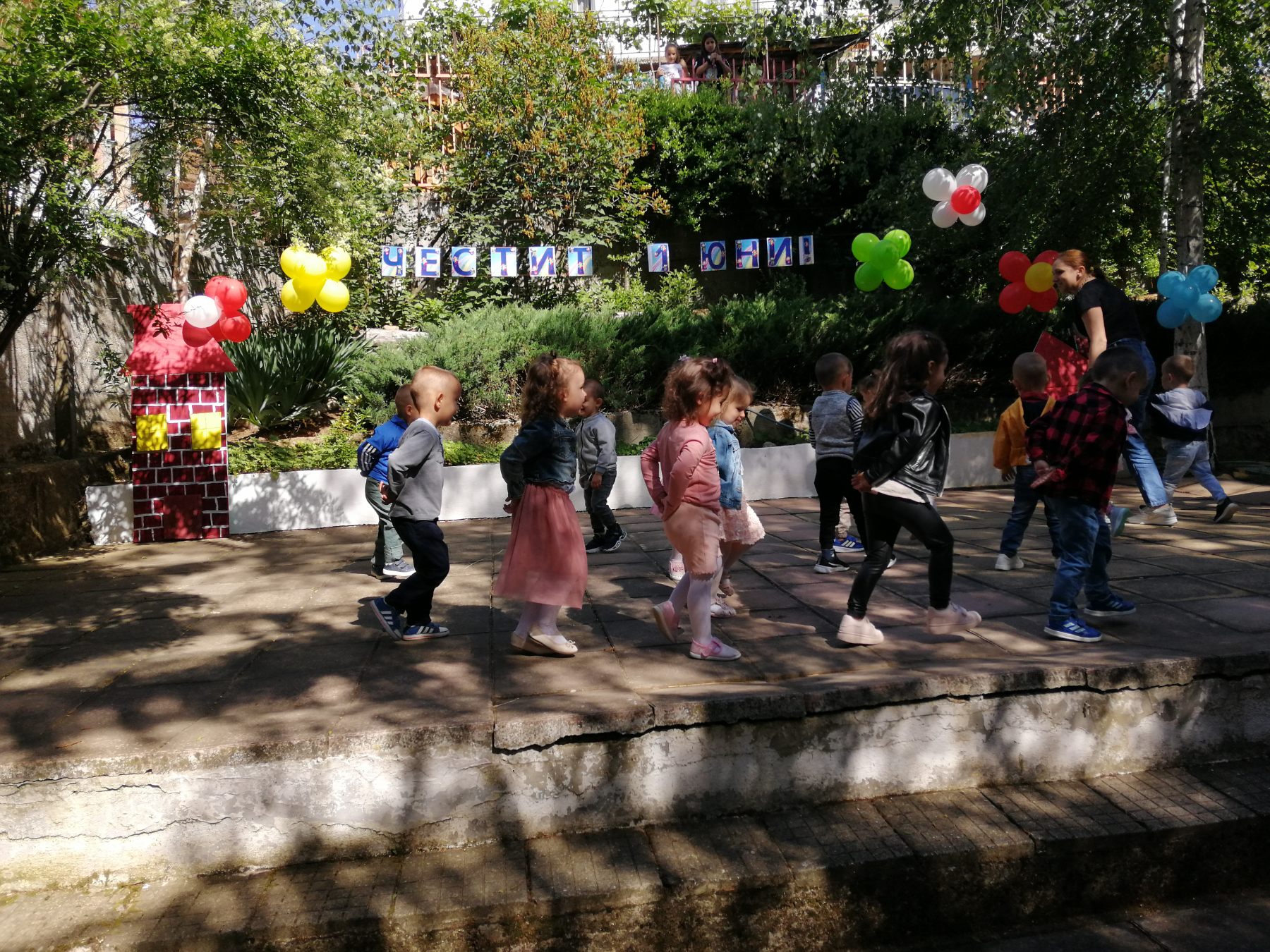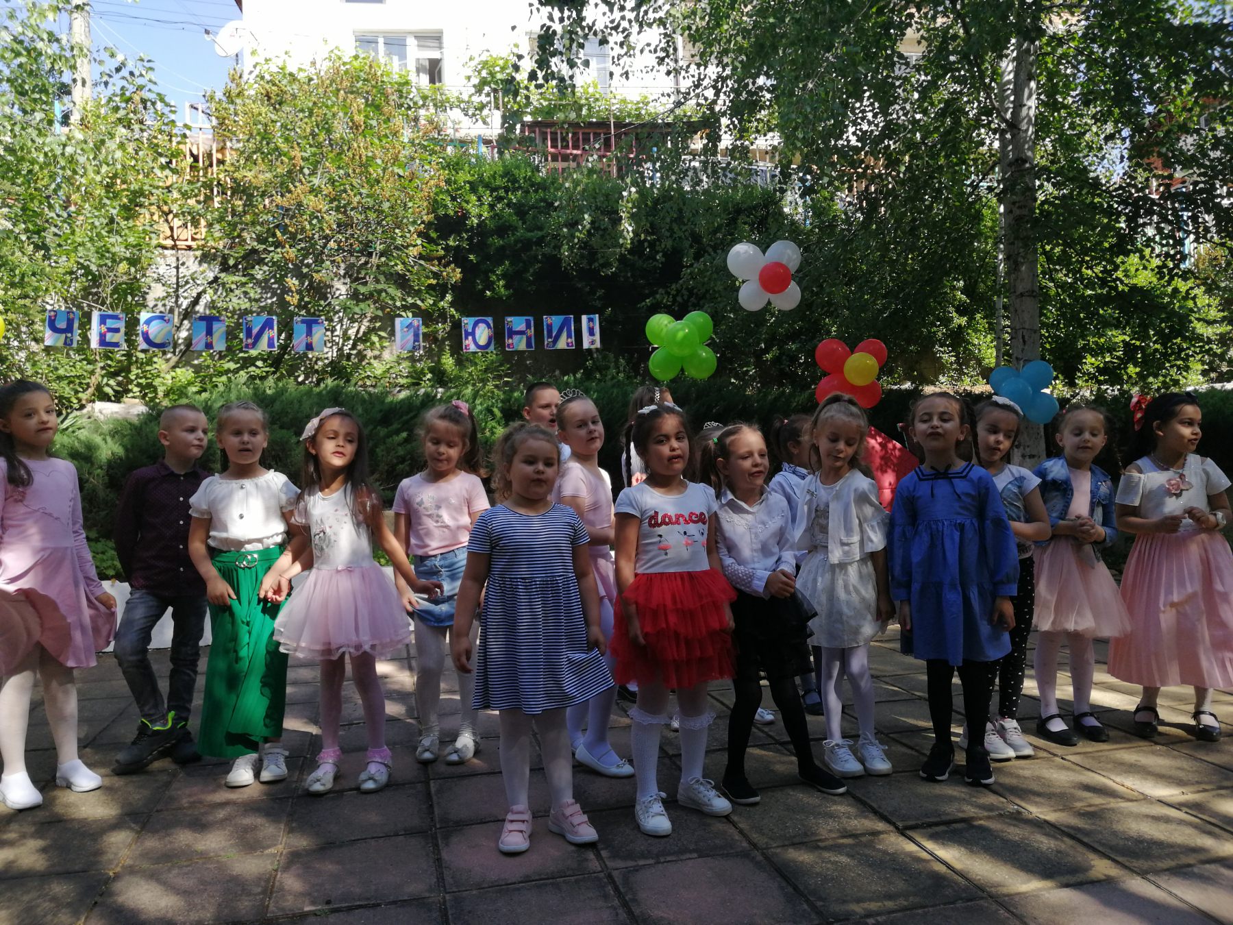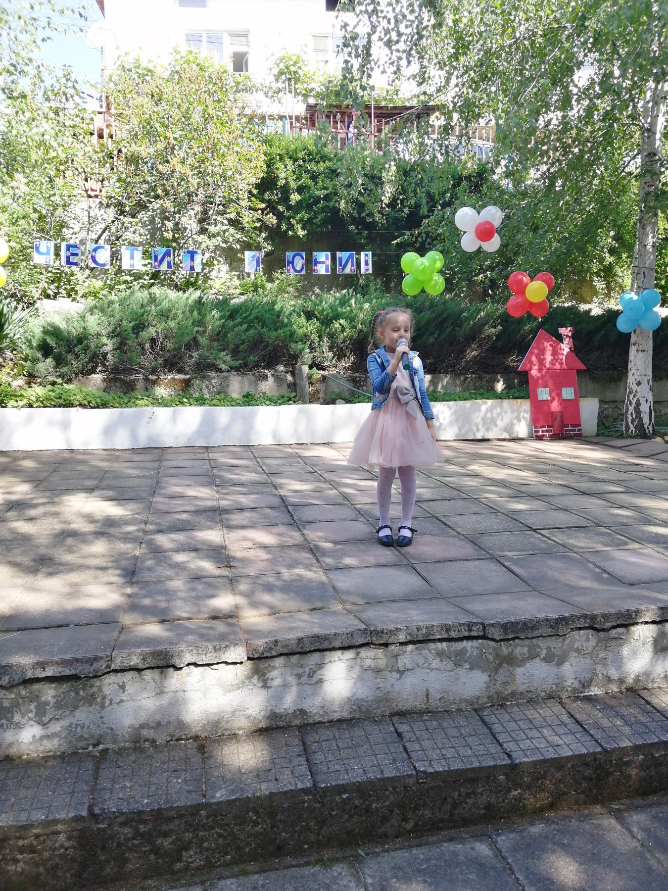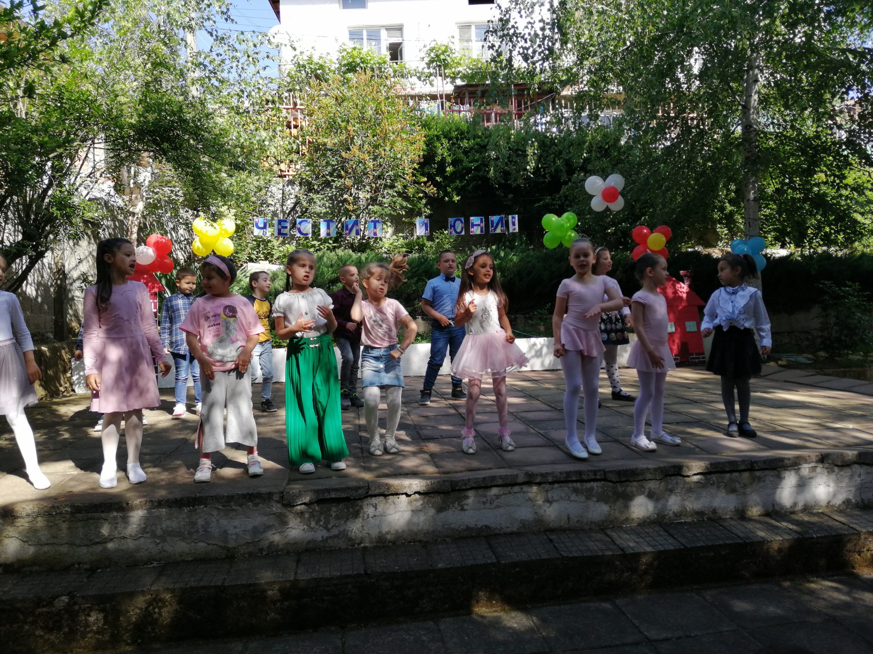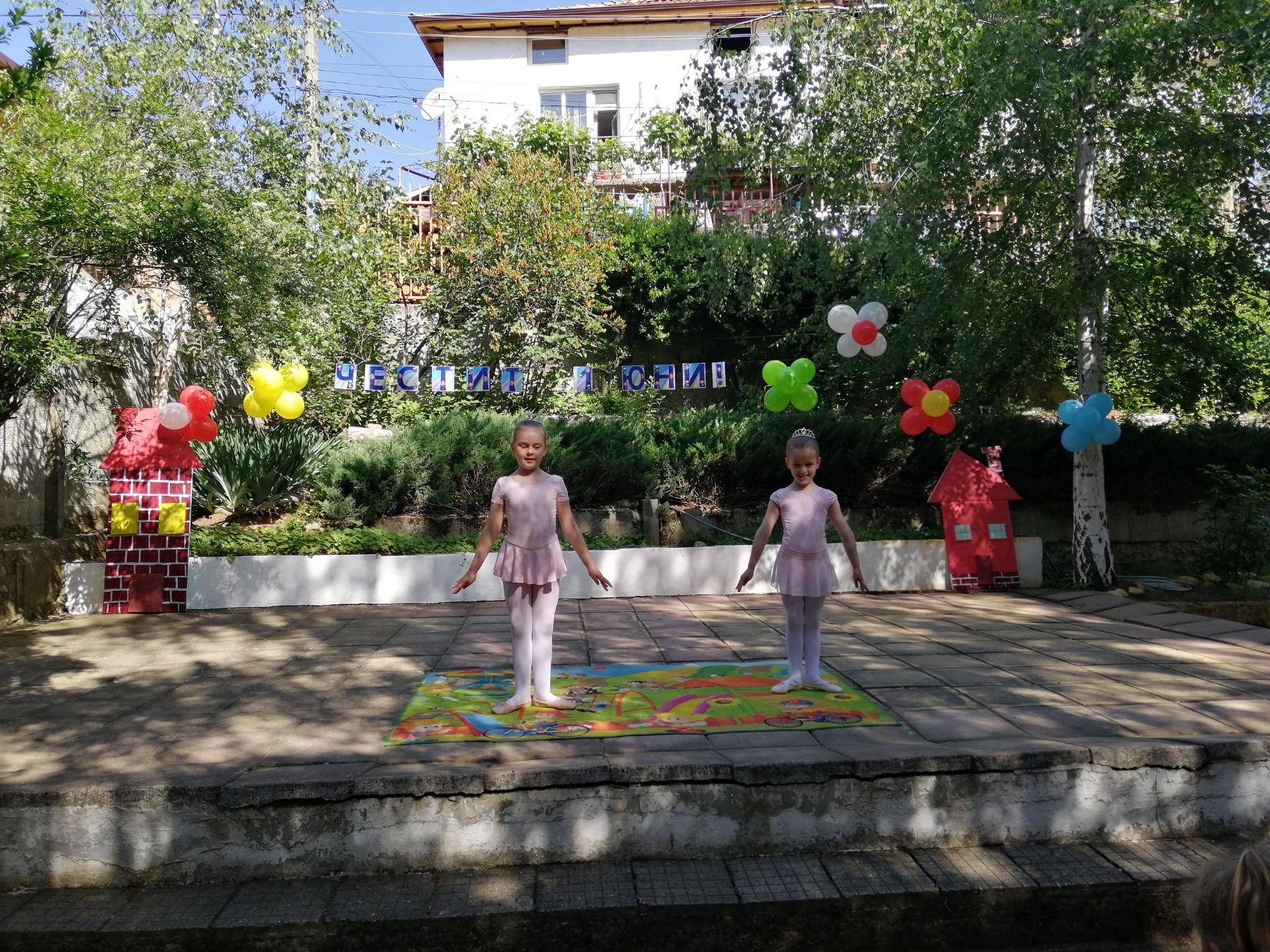 Те рецитираха стихчета, посветени на празника. Рисуваха с тебешири върху асфалт, забавляваха се със сапунени мехури и танцуваха на специално украсена сцена с много балони.