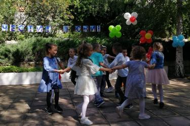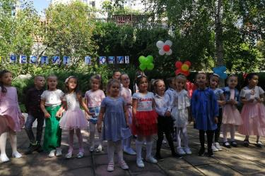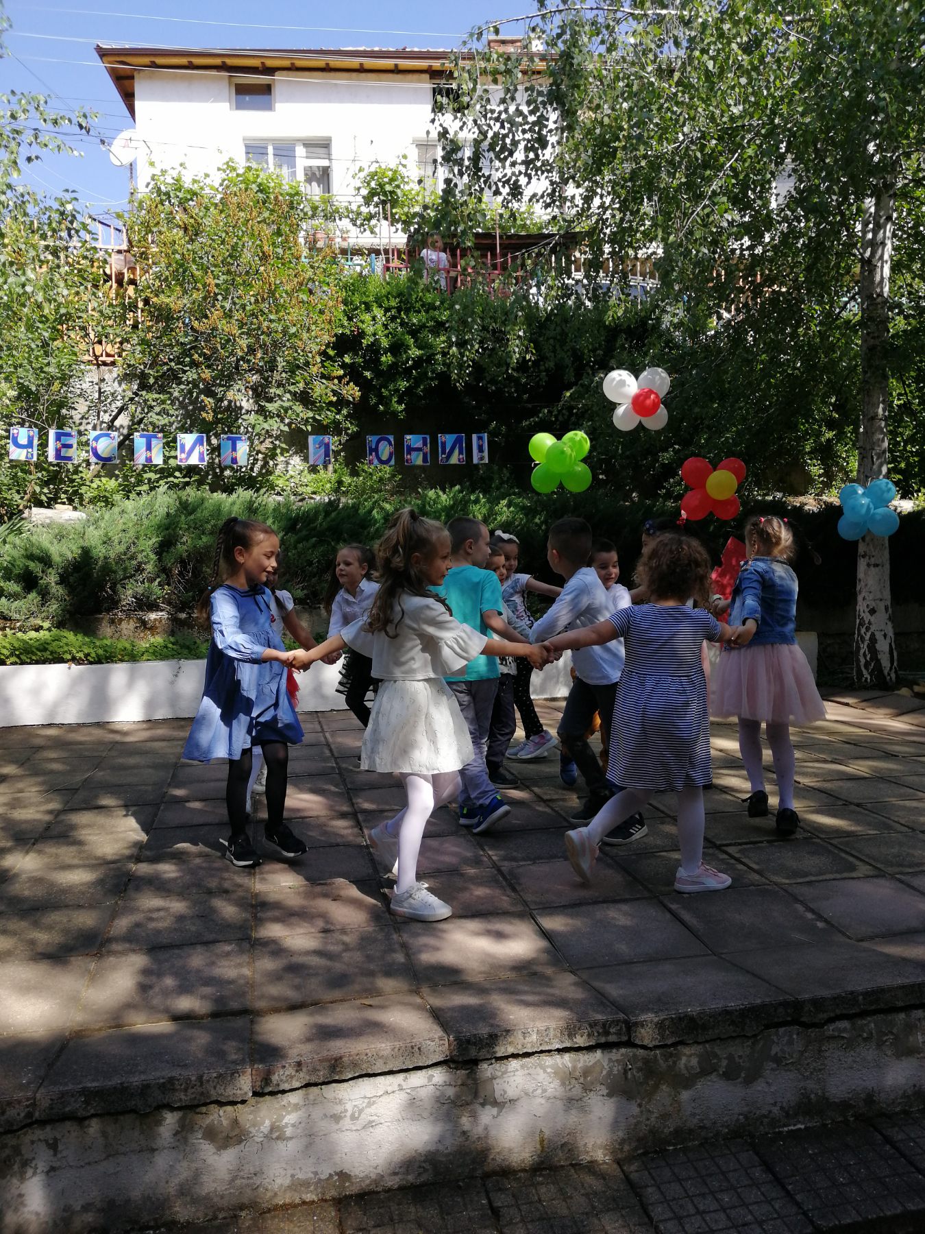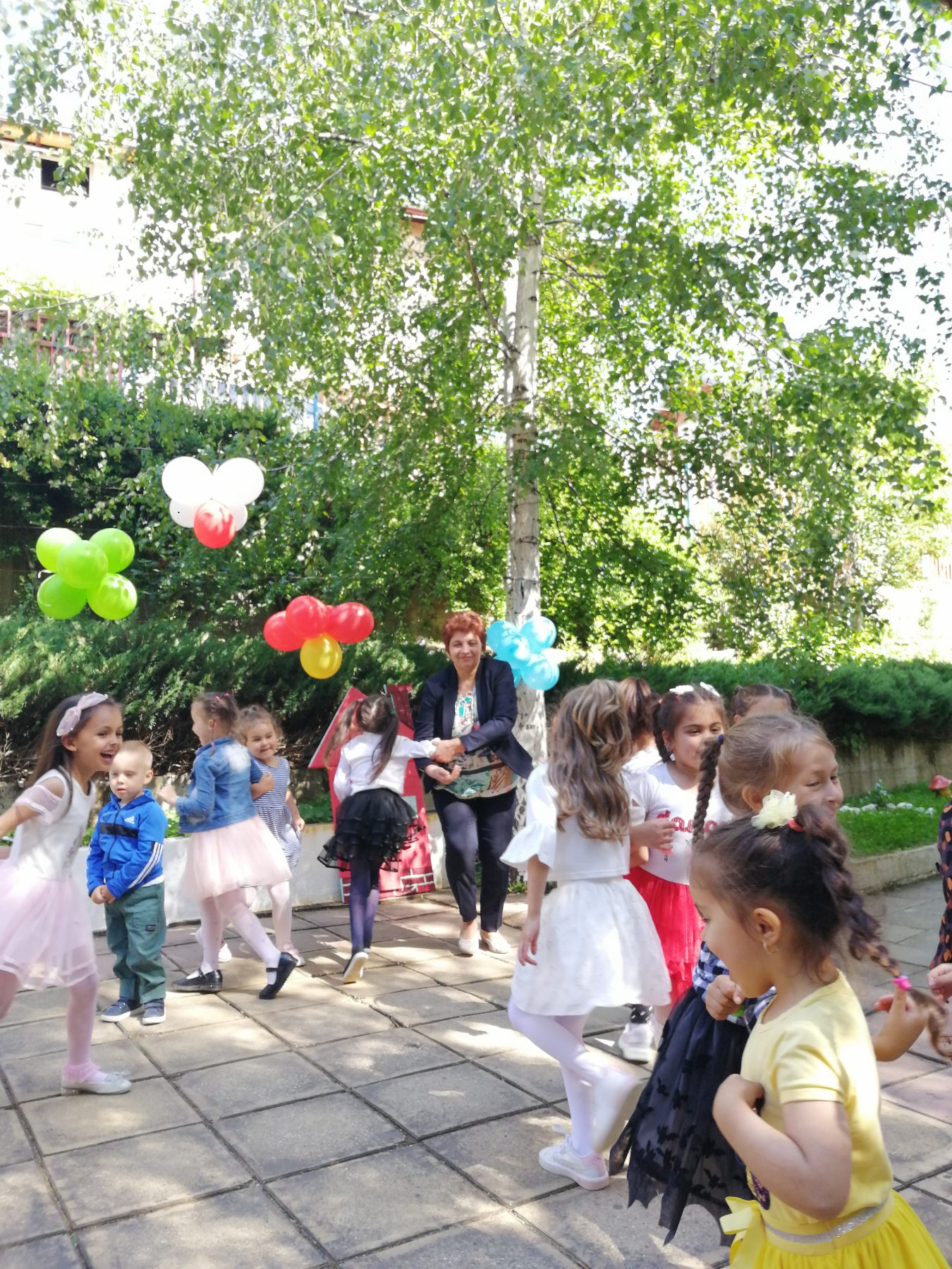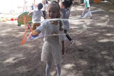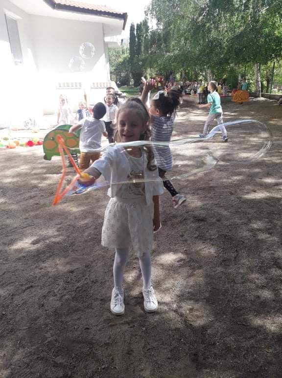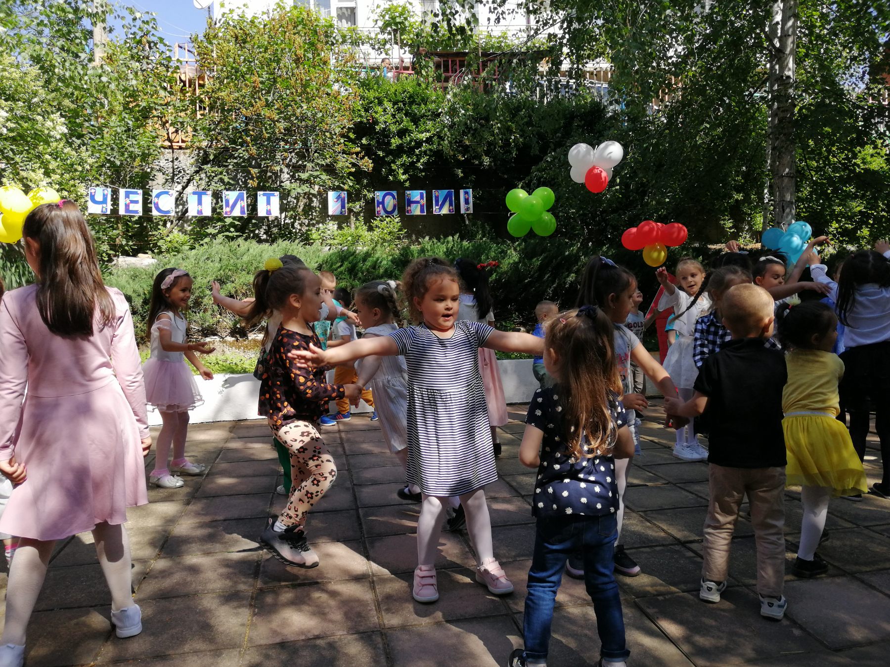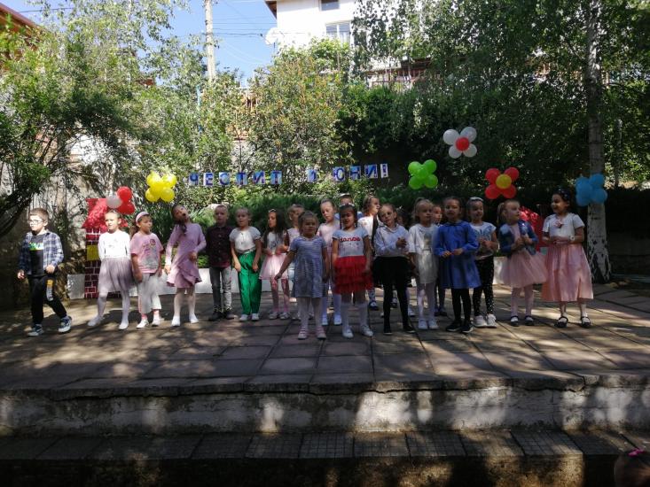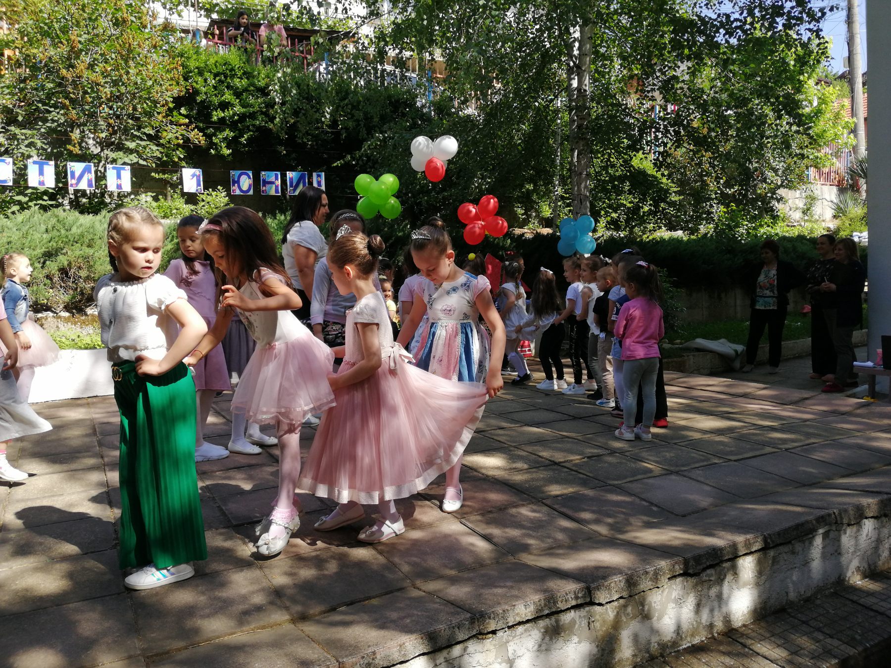 Те рецитираха стихчета, посветени на празника. Рисуваха с тебешири върху асфалт, забавляваха се със сапунени мехури и танцуваха на специално украсена сцена с много балони.