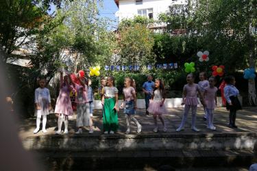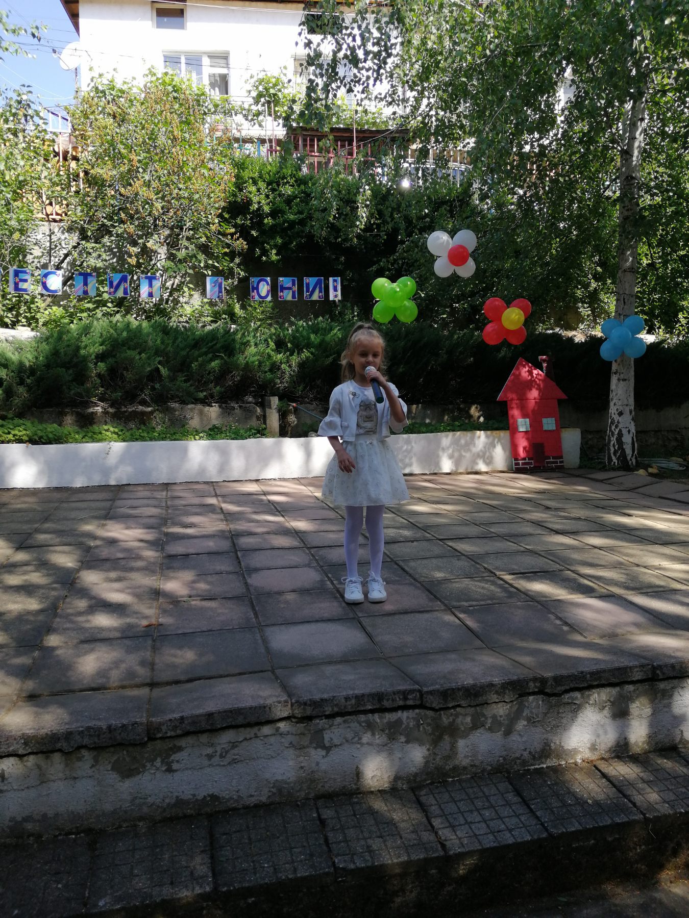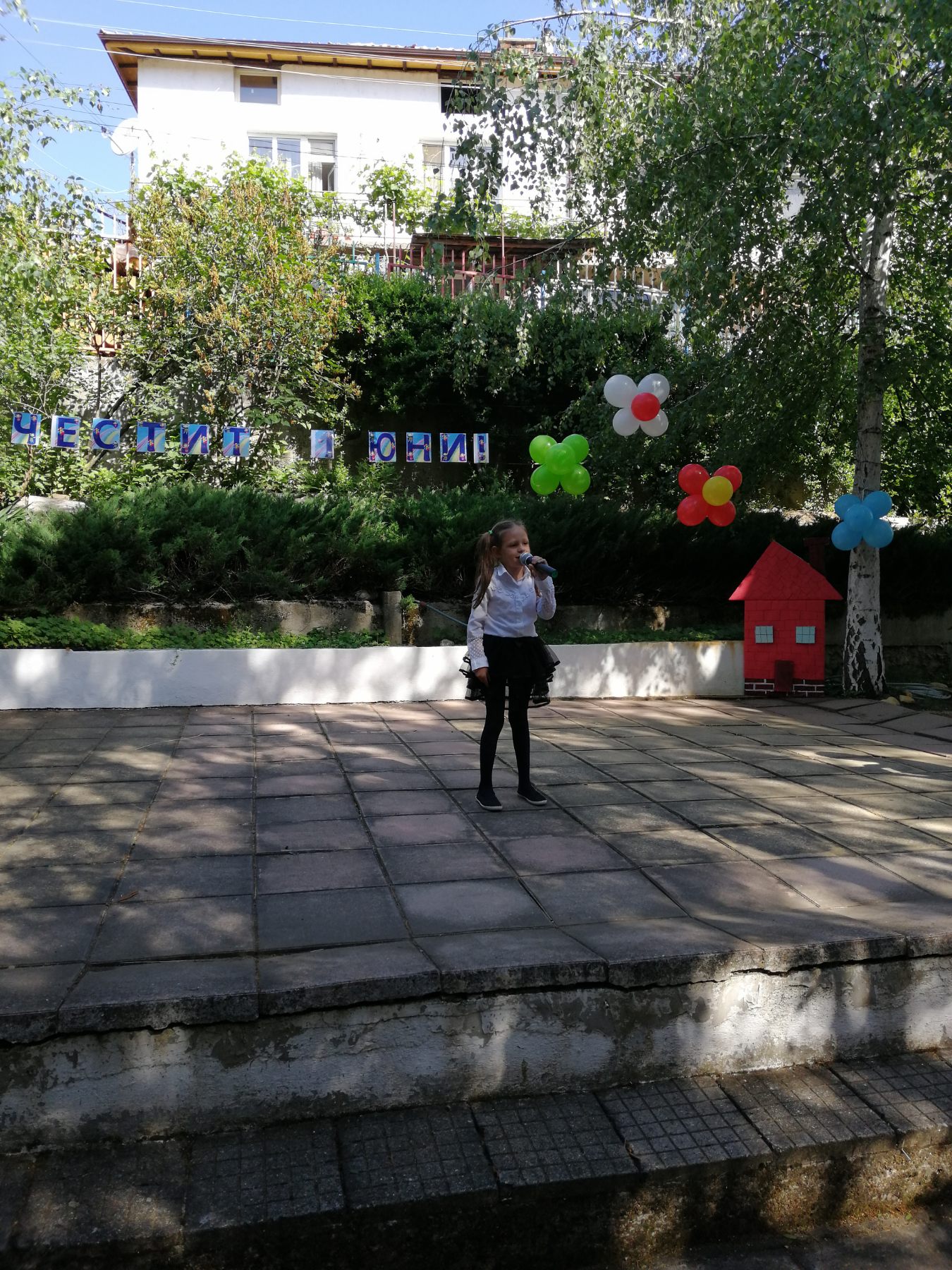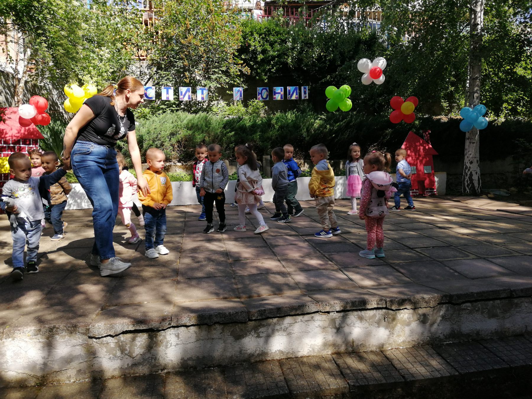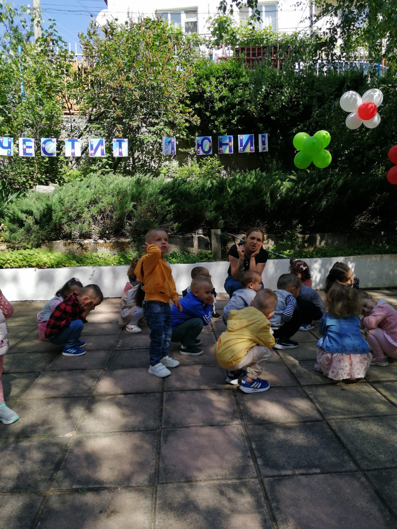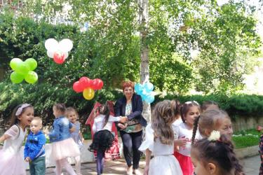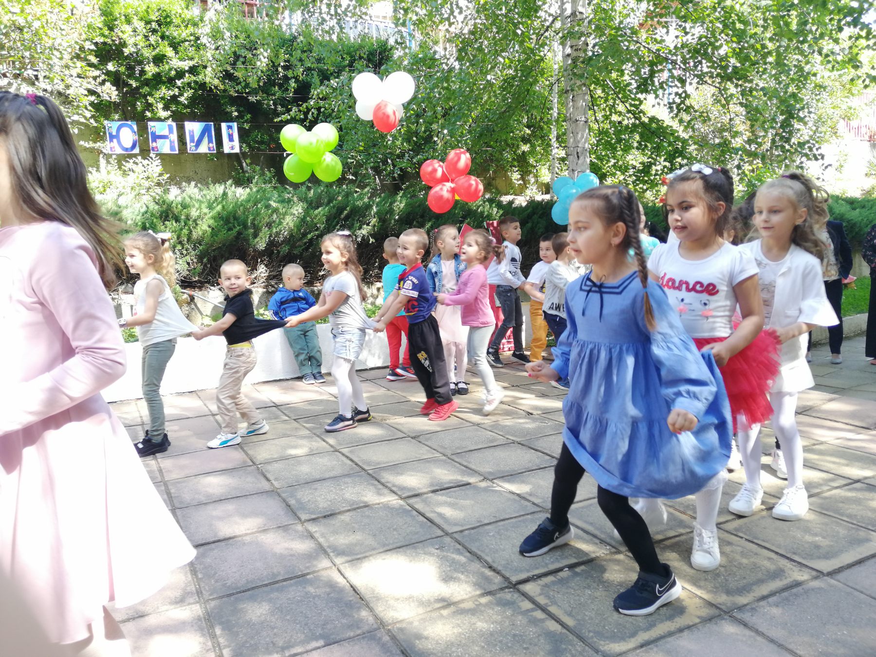 Те рецитираха стихчета, посветени на празника. Рисуваха с тебешири върху асфалт, забавляваха се със сапунени мехури и танцуваха на специално украсена сцена с много балони.