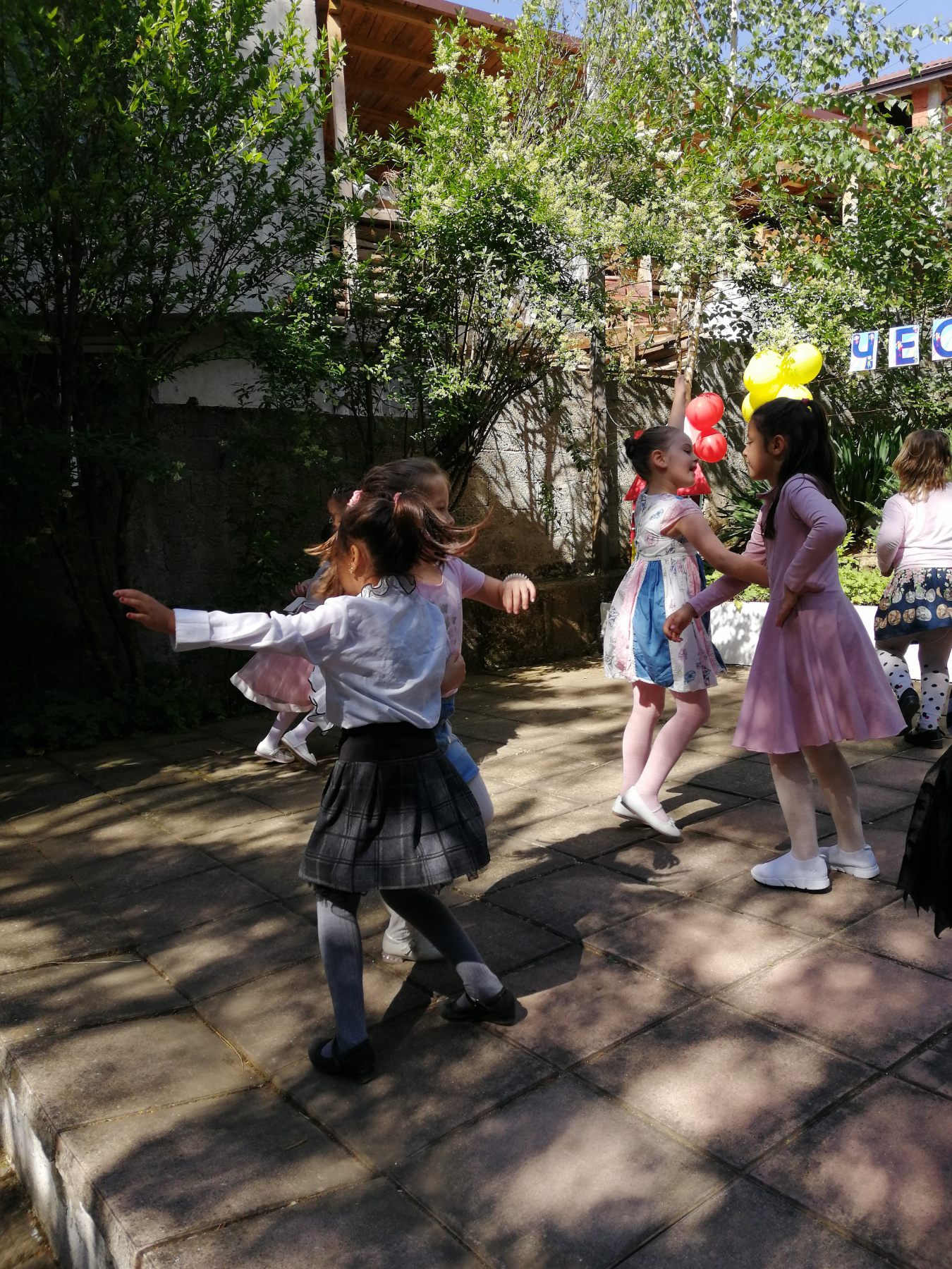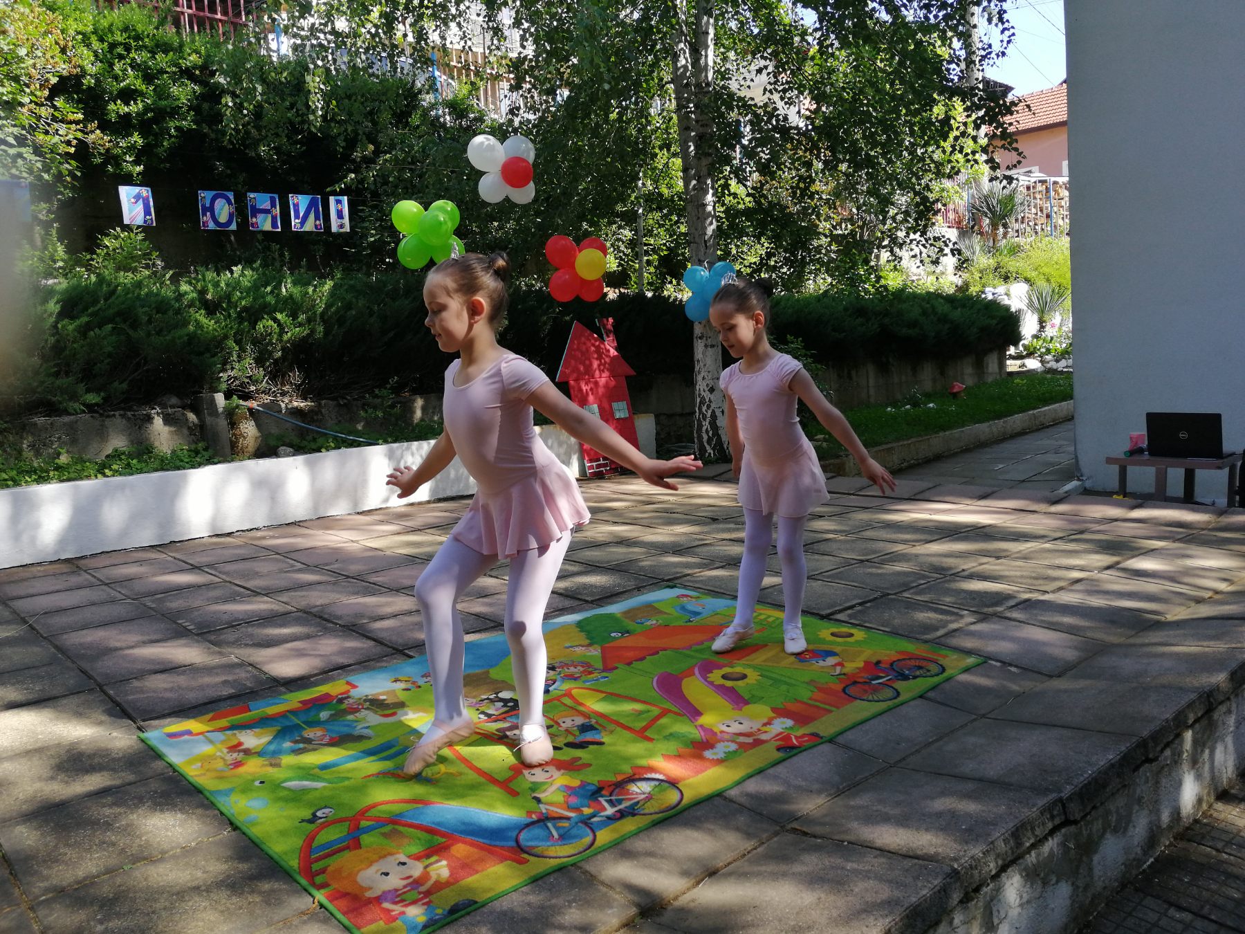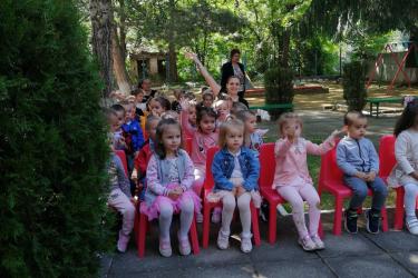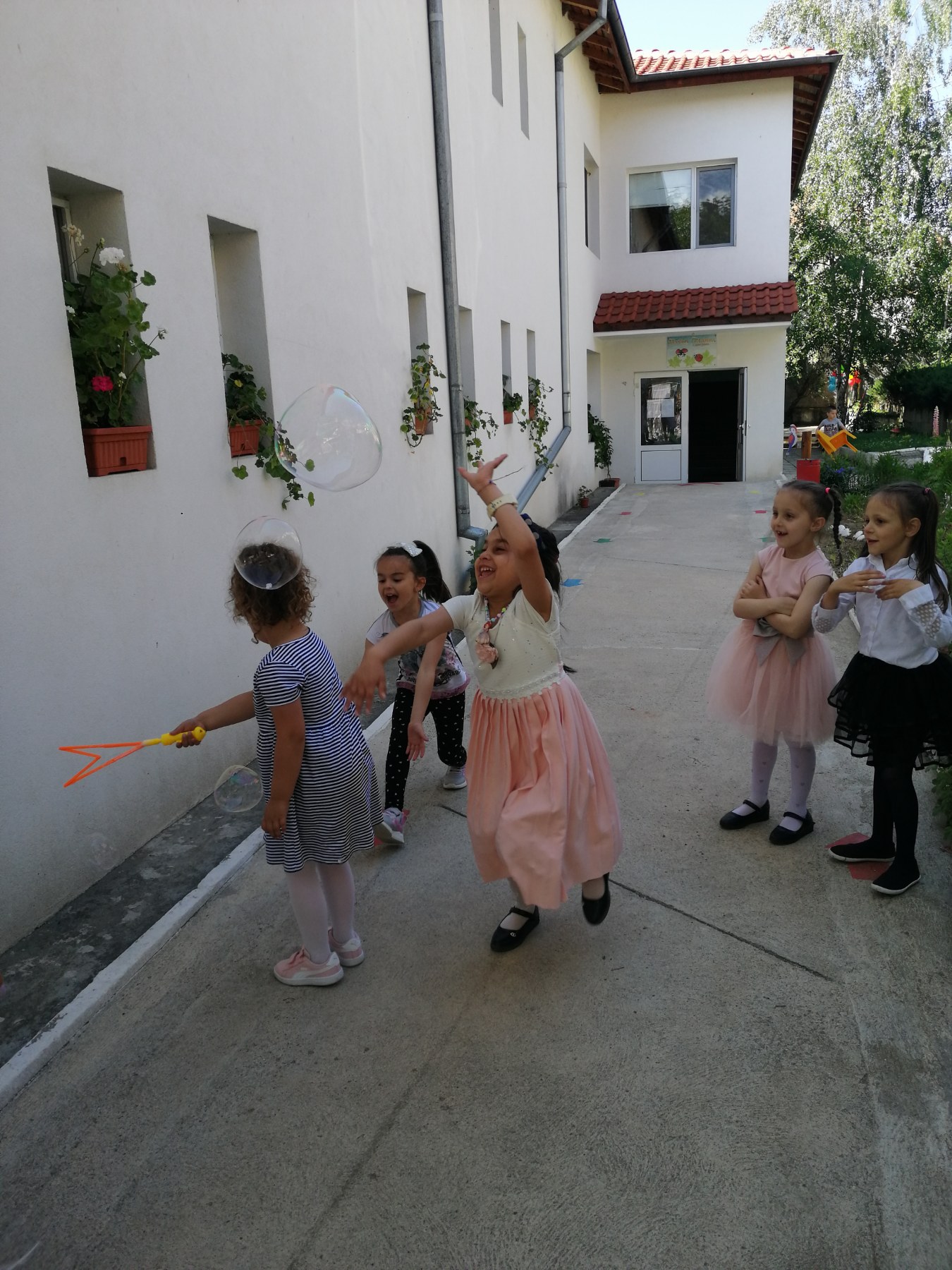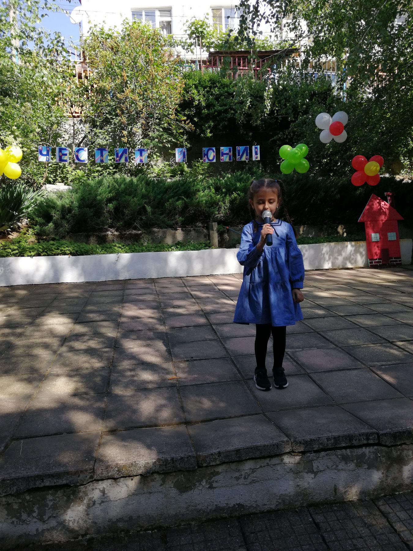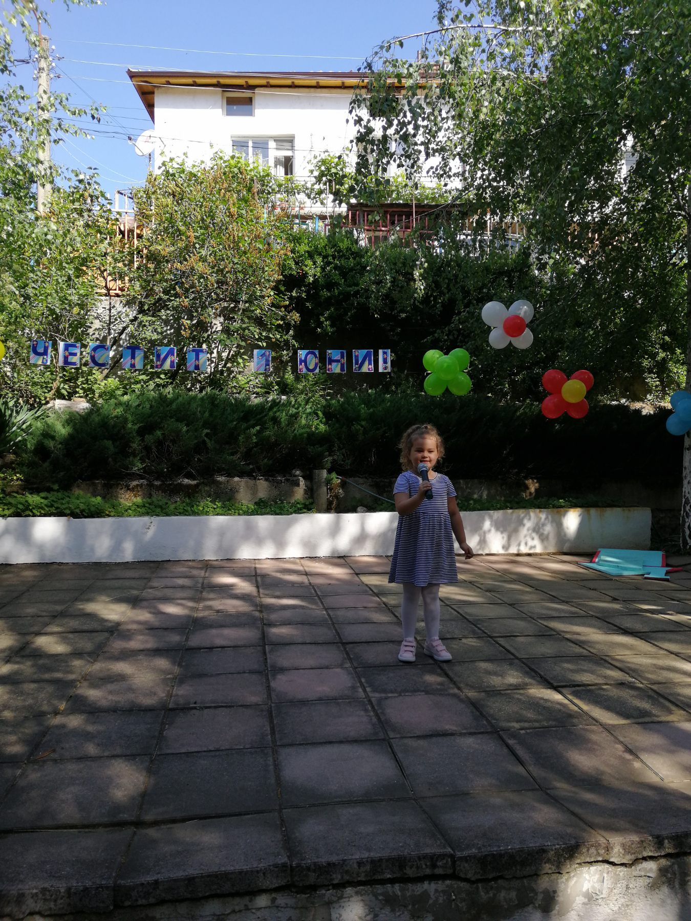Те рецитираха стихчета, посветени на празника. Рисуваха с тебешири върху асфалт, забавляваха се със сапунени мехури и танцуваха на специално украсена сцена с много балони.