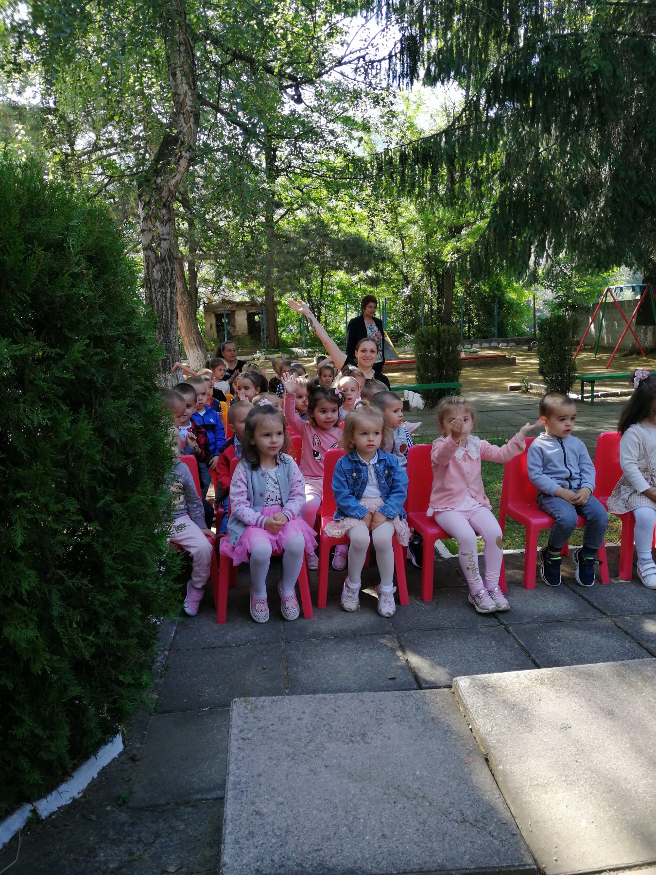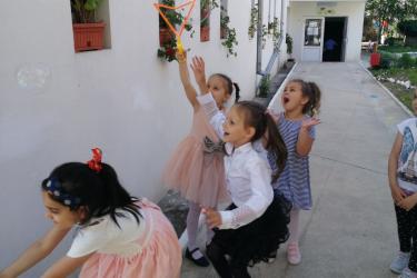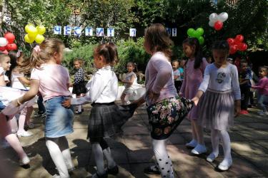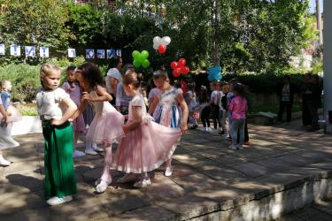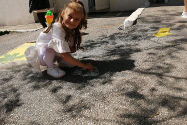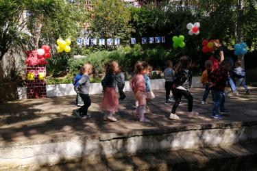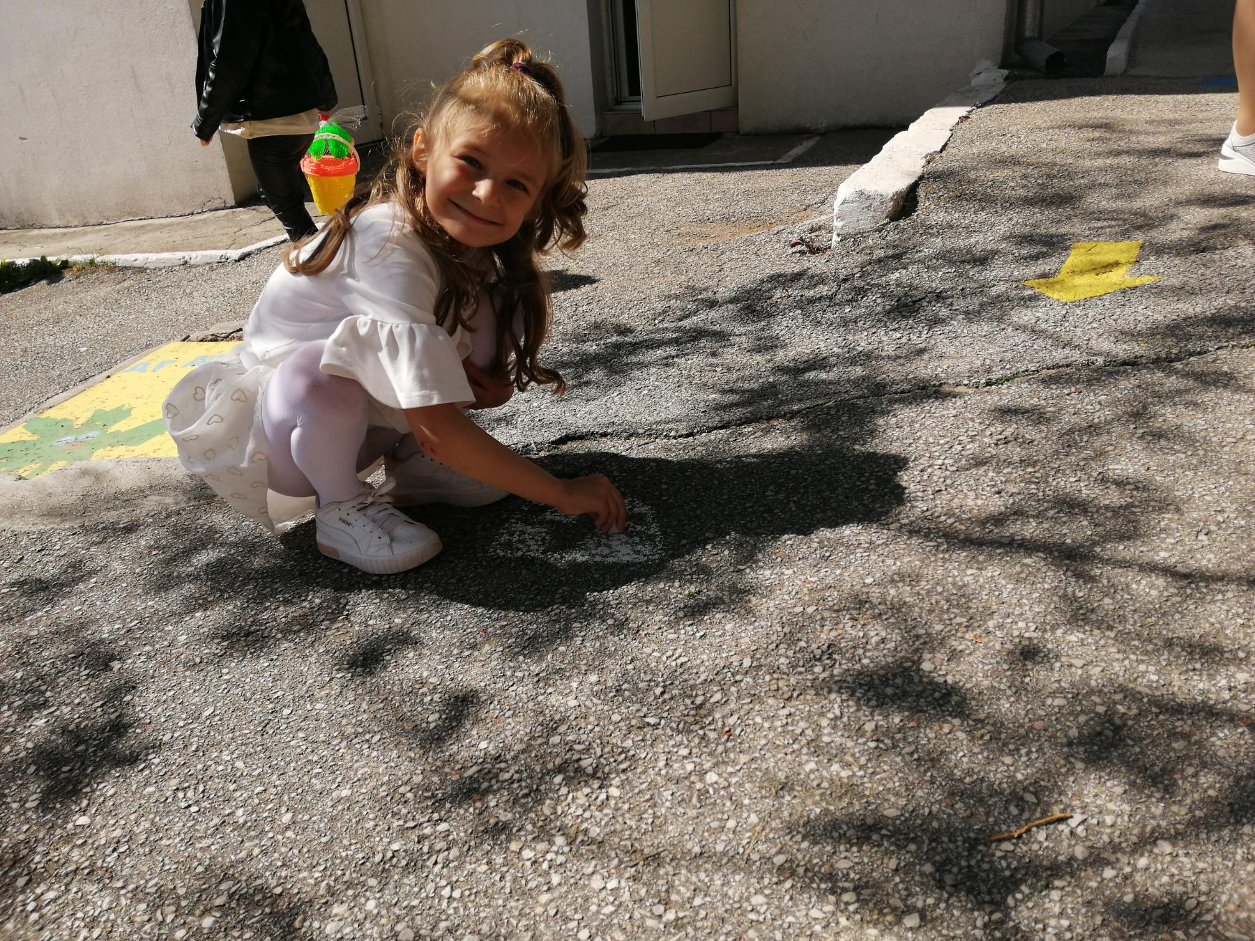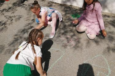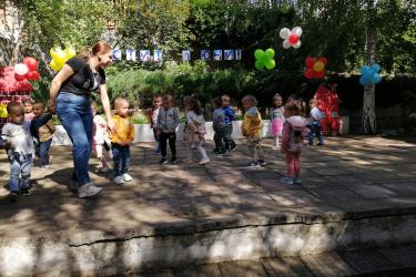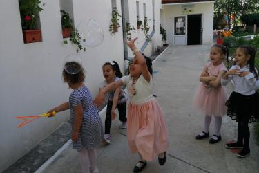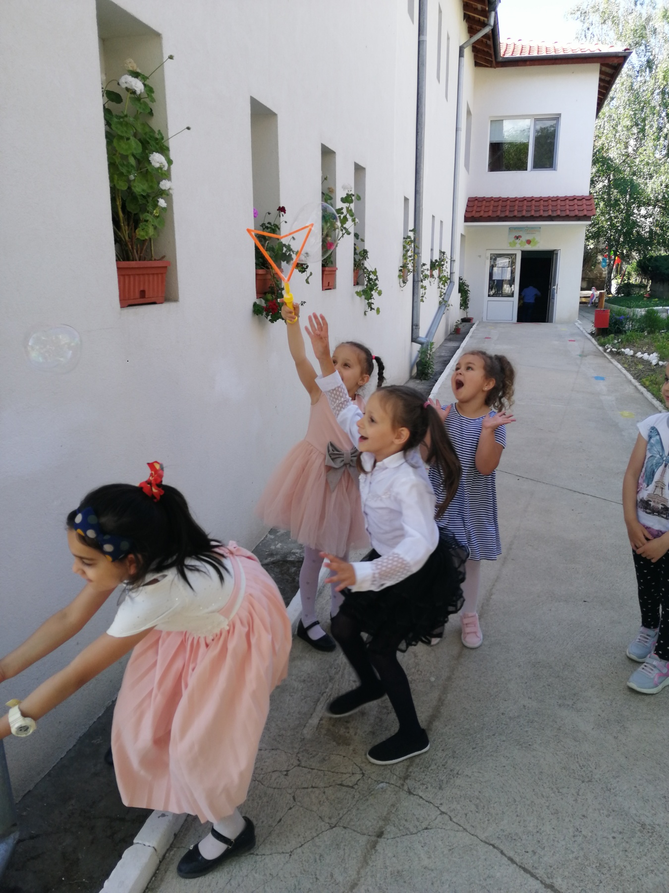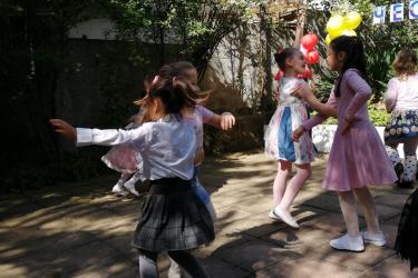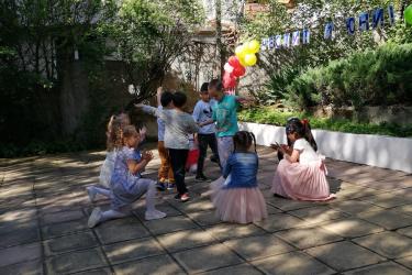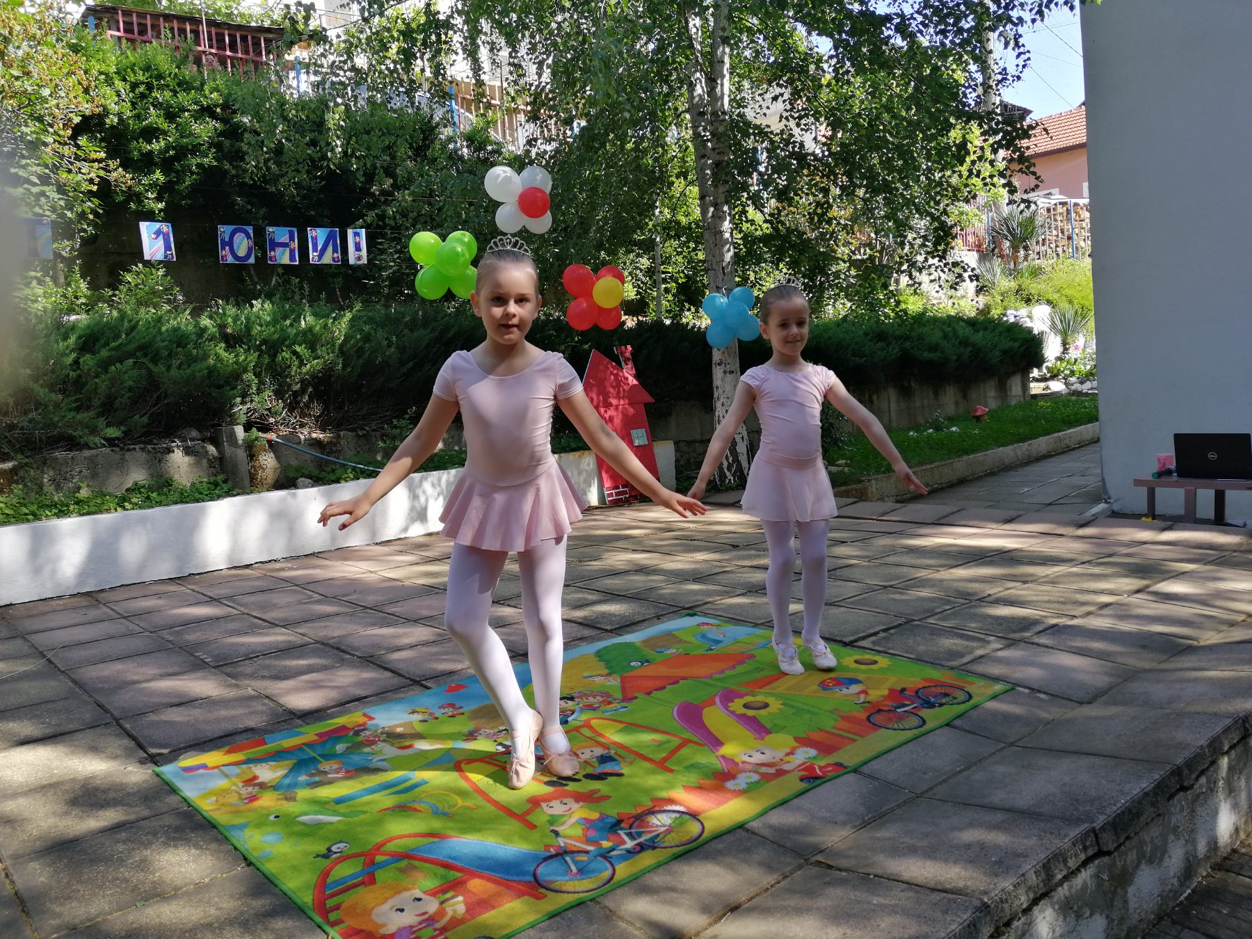 Те рецитираха стихчета, посветени на празника. Рисуваха с тебешири върху асфалт, забавляваха се със сапунени мехури и танцуваха на специално украсена сцена с много балони.
