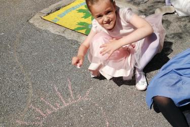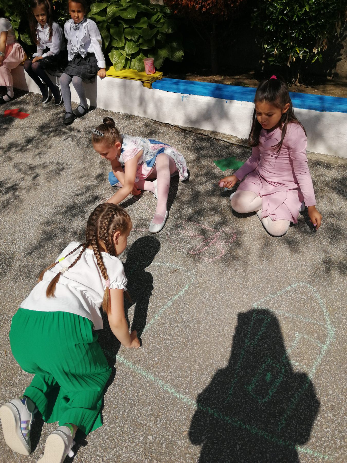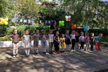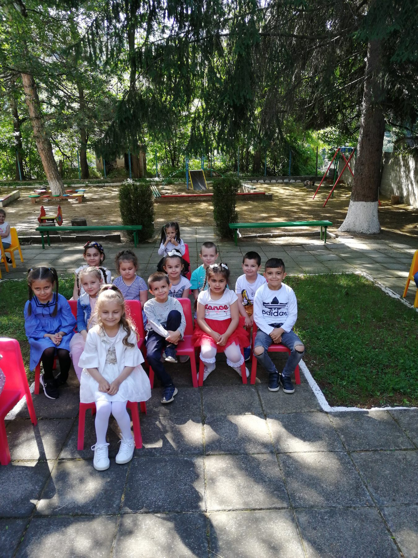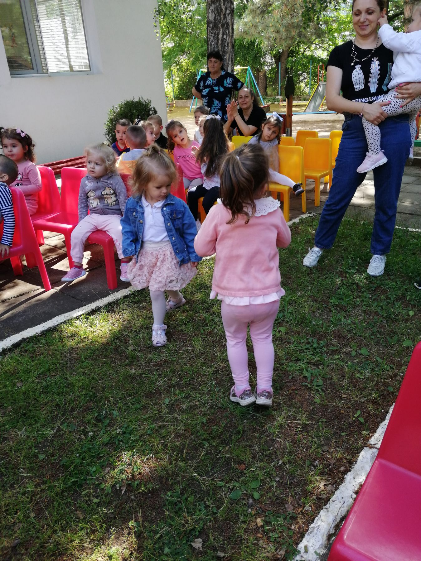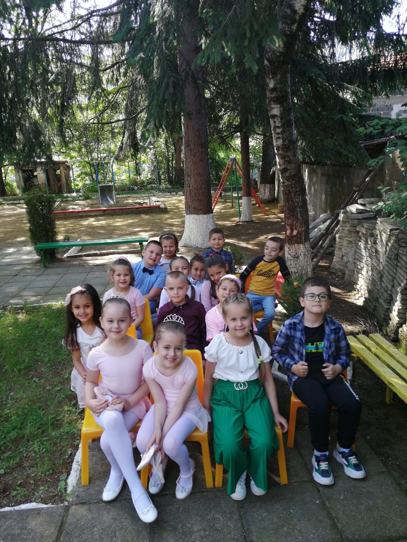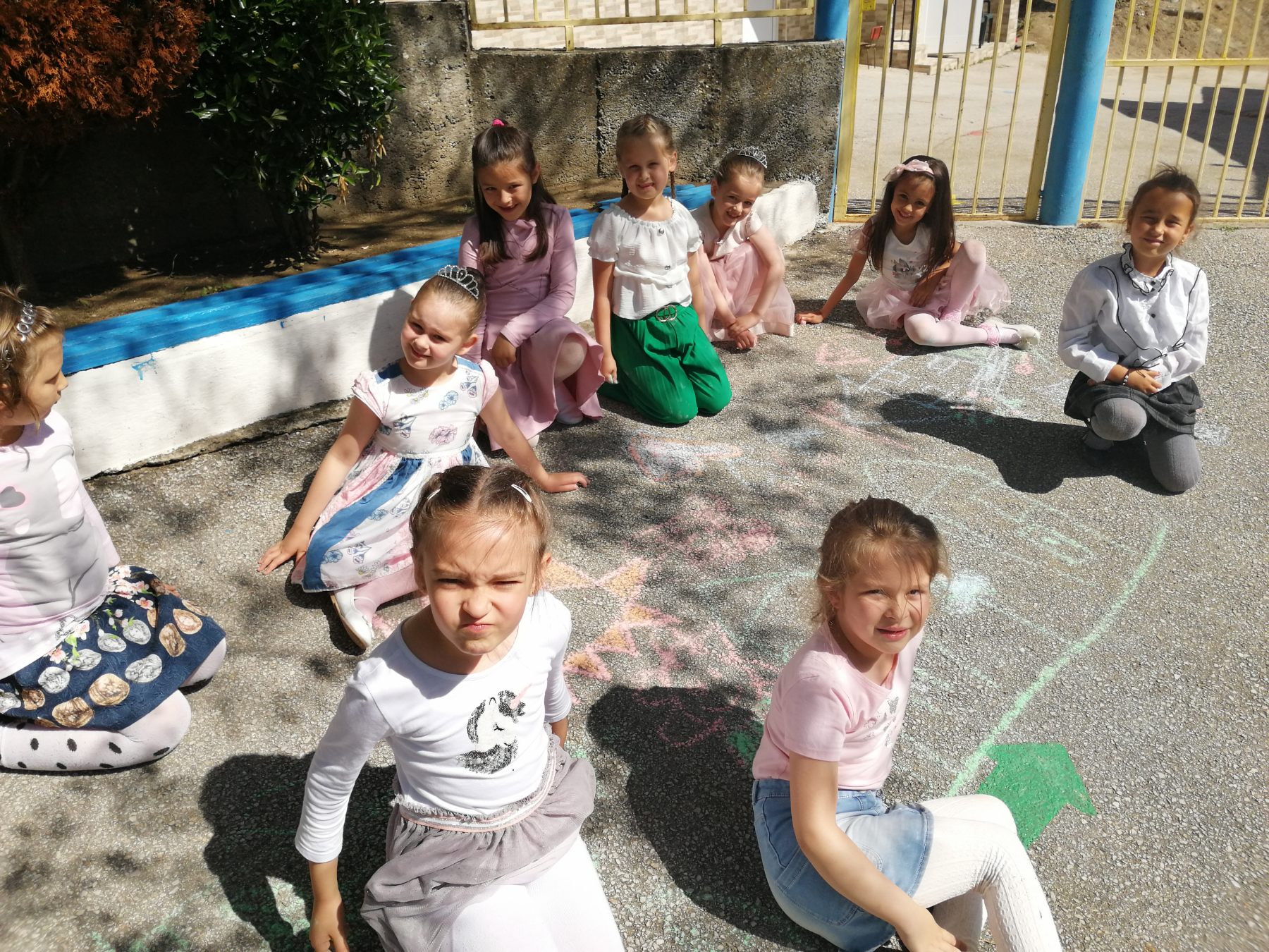 Те рецитираха стихчета, посветени на празника. Рисуваха с тебешири върху асфалт, забавляваха се със сапунени мехури и танцуваха на специално украсена сцена с много балони.