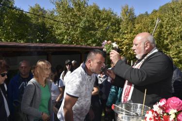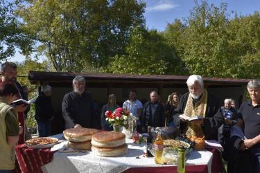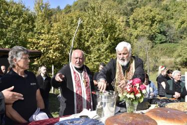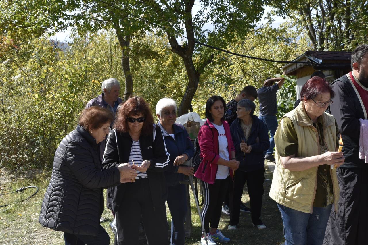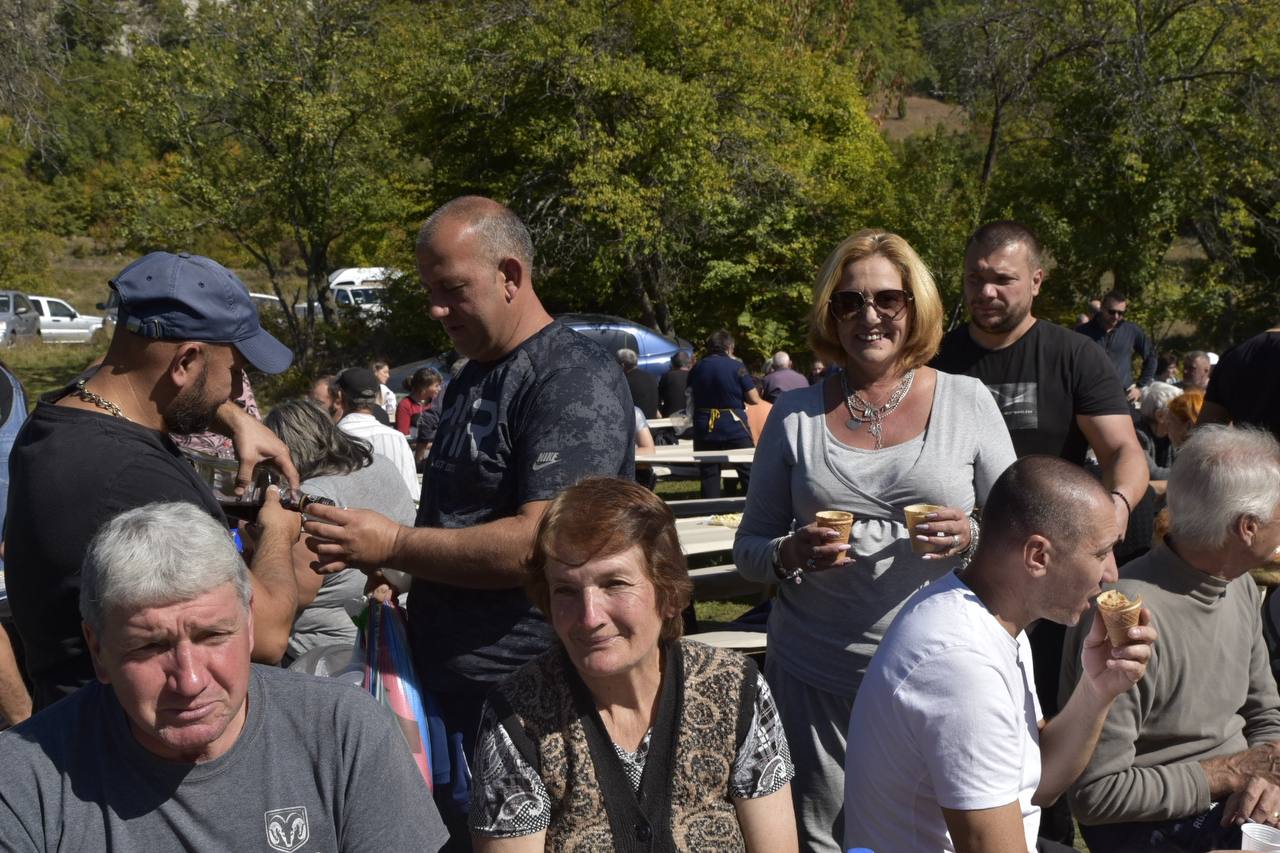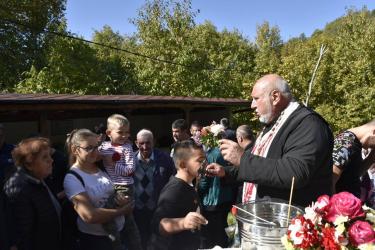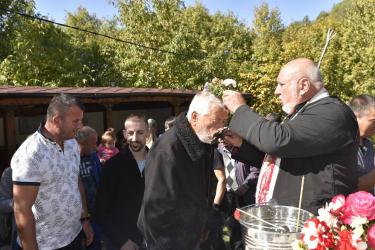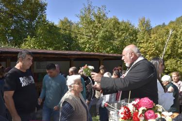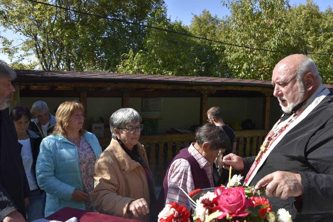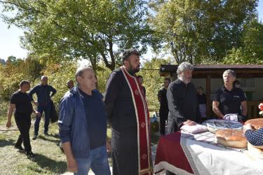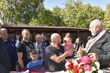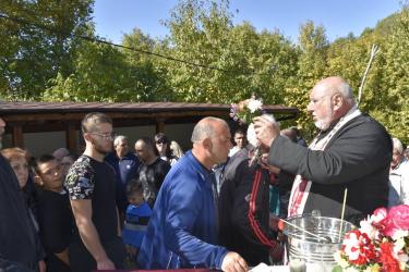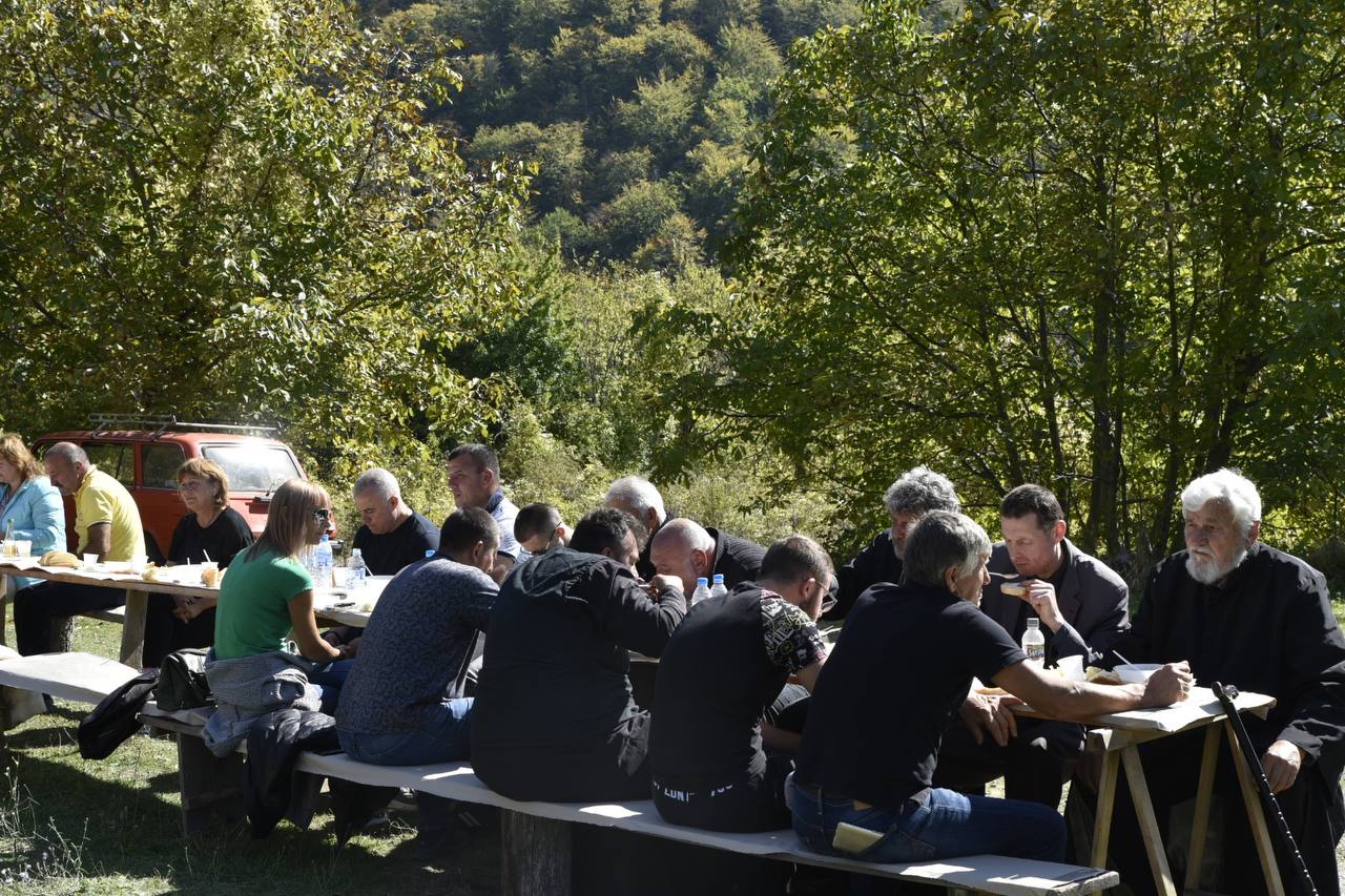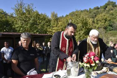 В днешния неделен ден отец Яне, отец Велизар и отец Величко отслужиха литургия на мястото, след което осветиха вкусния курбан, приготвен и раздаден за здравето на всички.