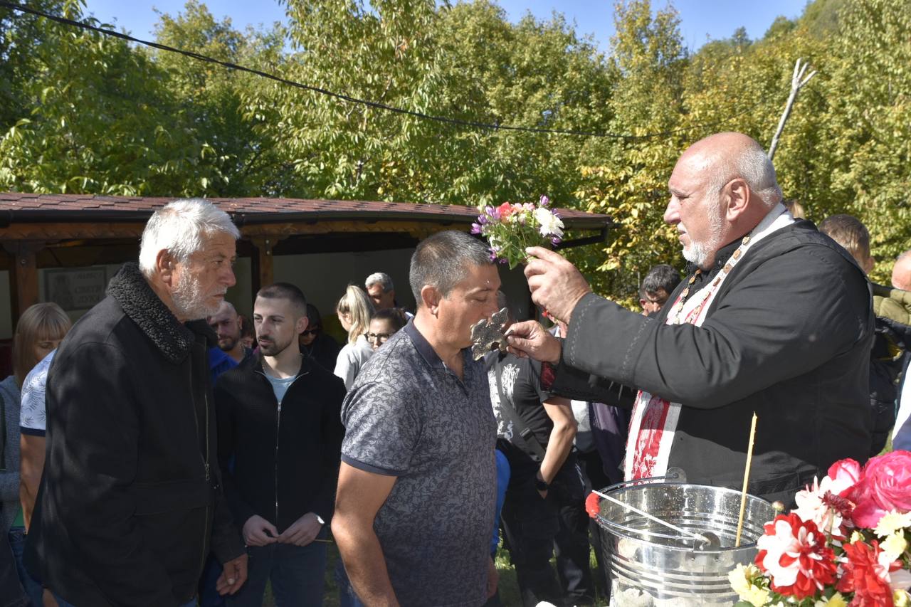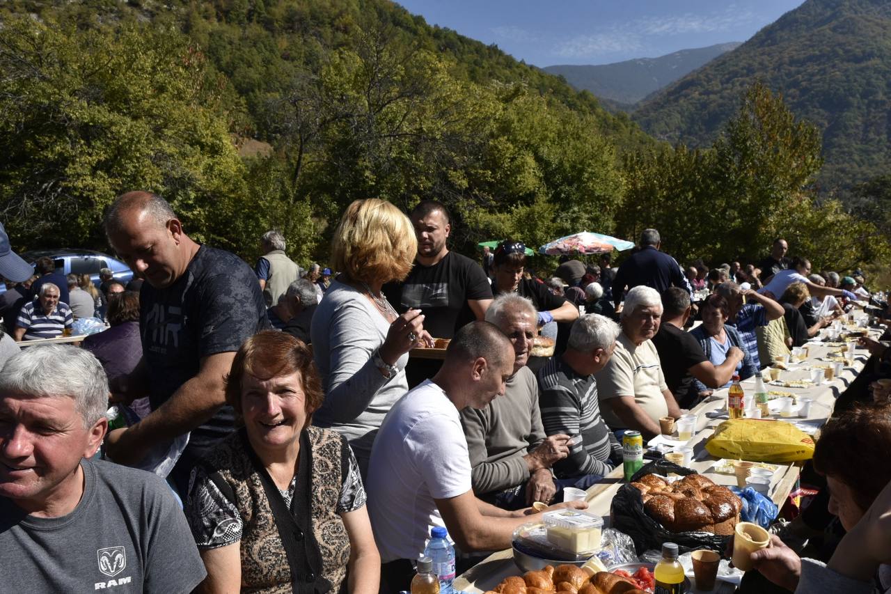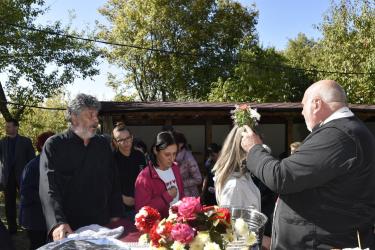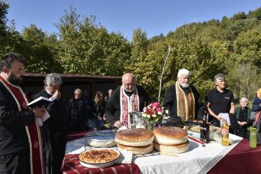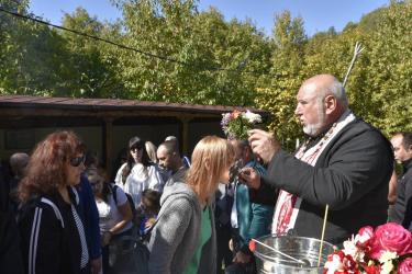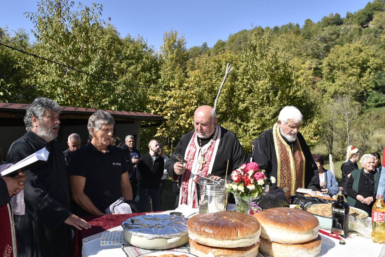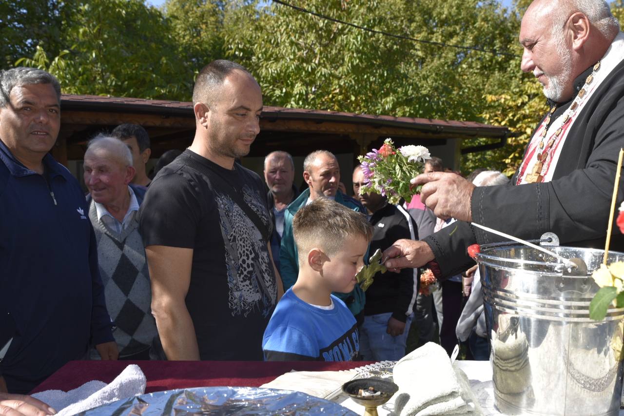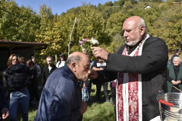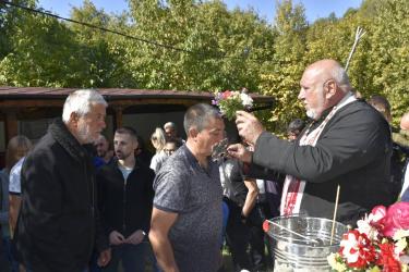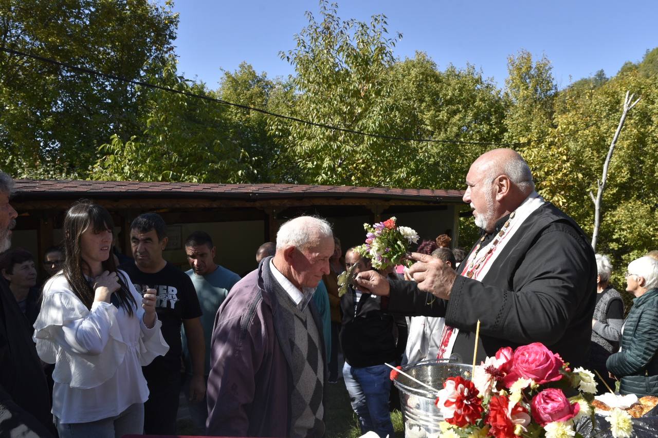 В днешния неделен ден отец Яне, отец Велизар и отец Величко отслужиха литургия на мястото, след което осветиха вкусния курбан, приготвен и раздаден за здравето на всички.
