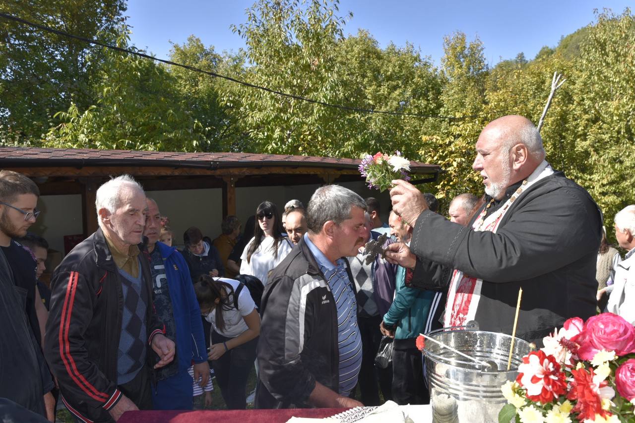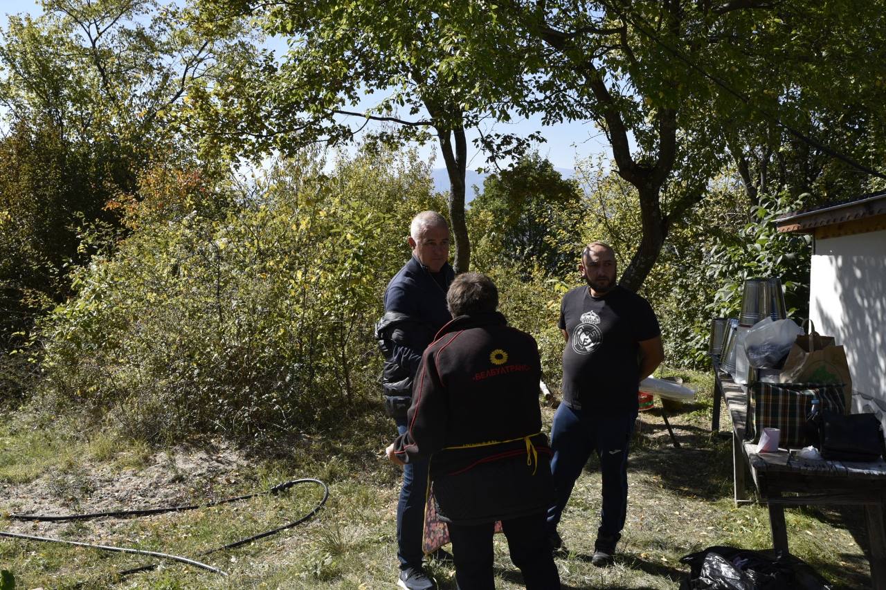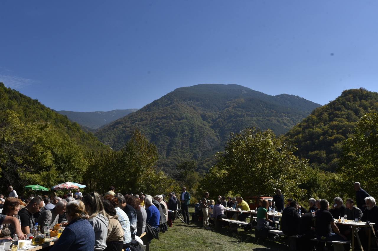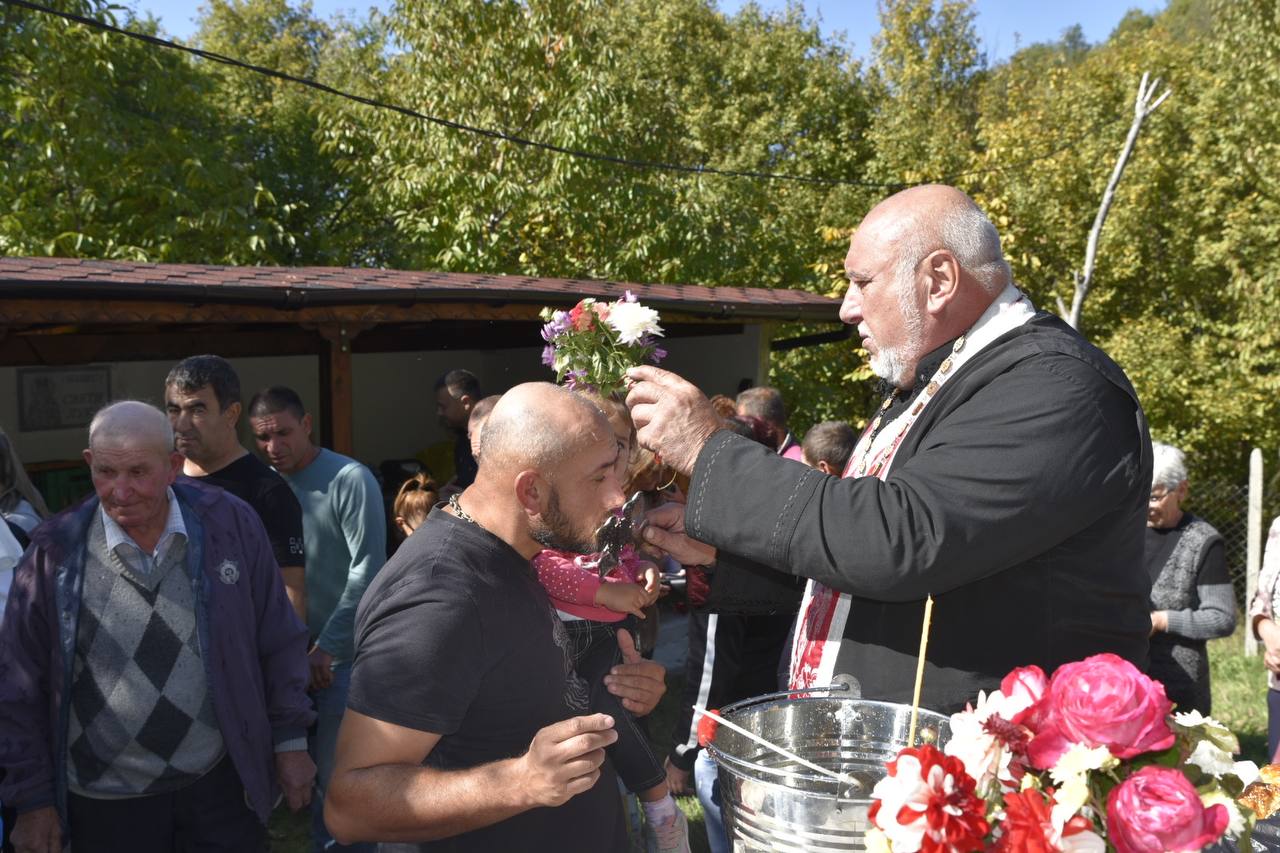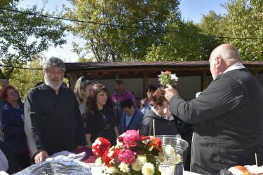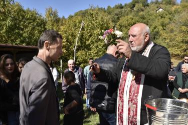 В днешния неделен ден отец Яне, отец Велизар и отец Величко отслужиха литургия на мястото, след което осветиха вкусния курбан, приготвен и раздаден за здравето на всички.