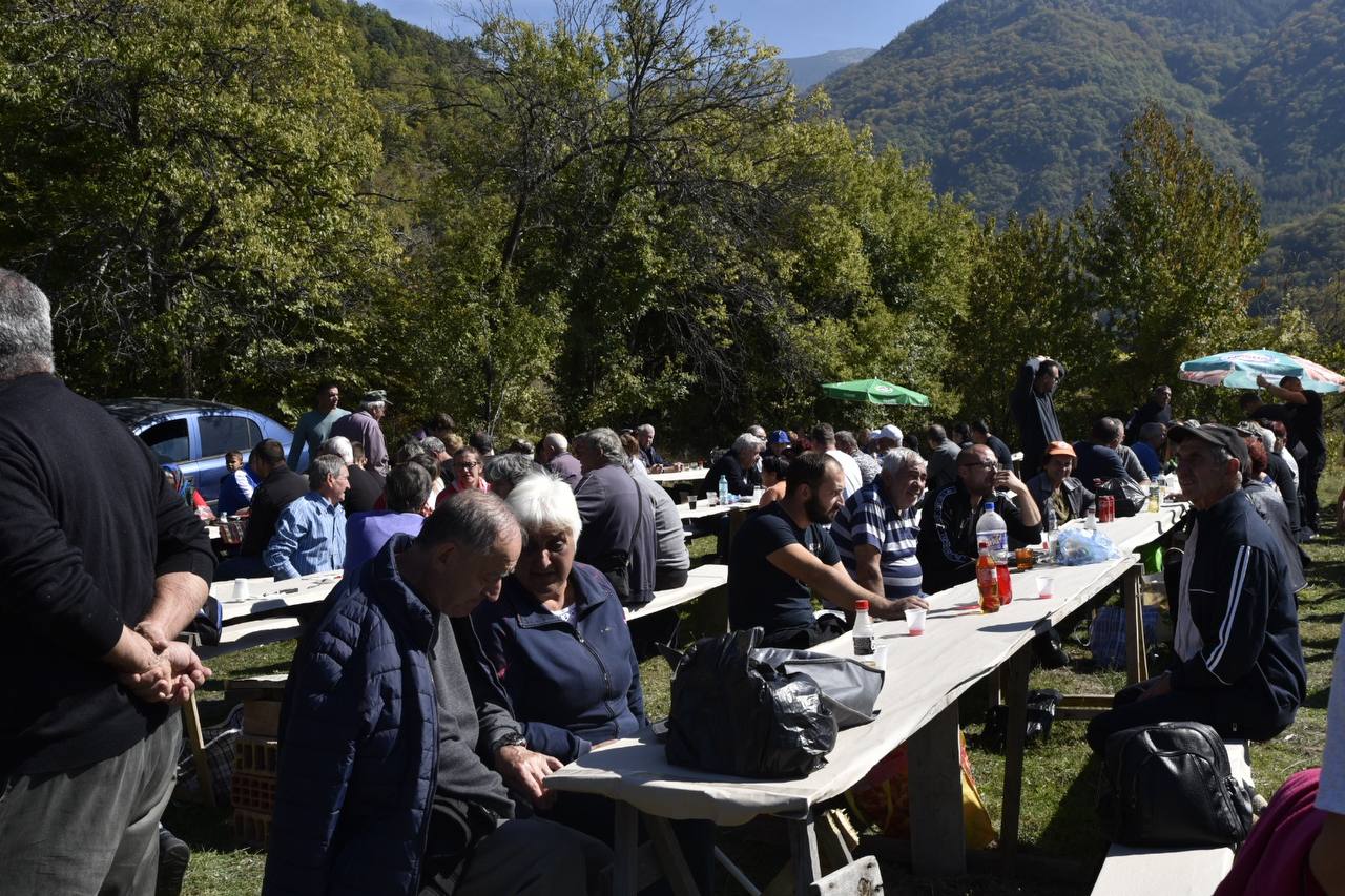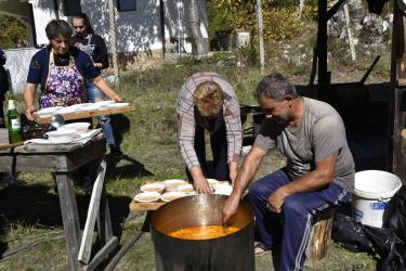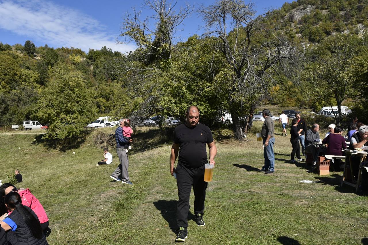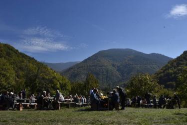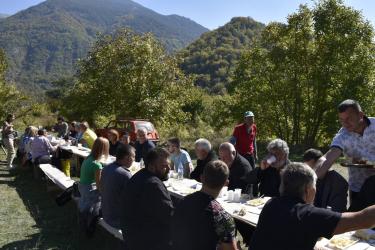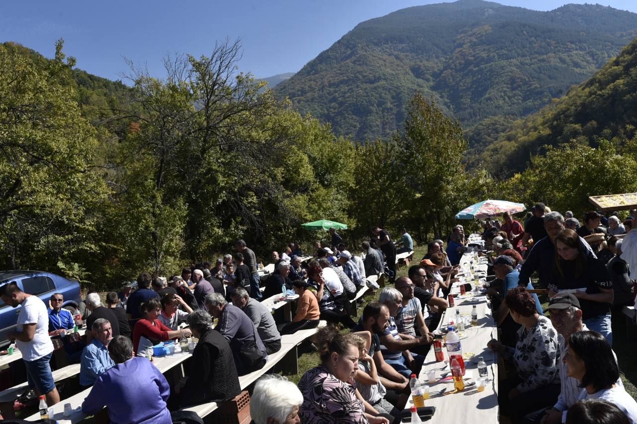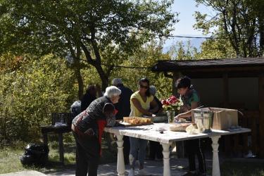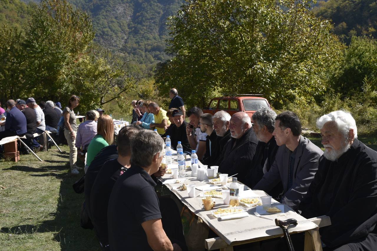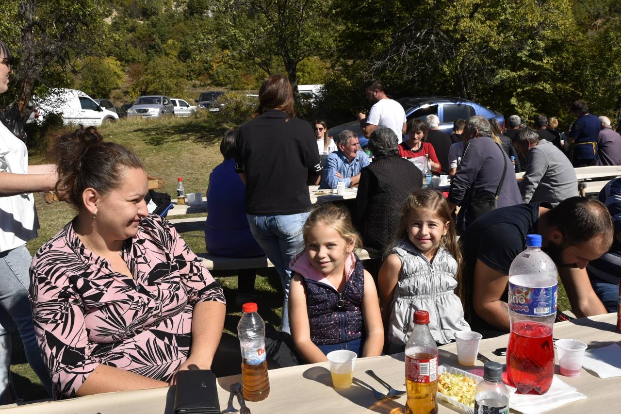 В днешния неделен ден отец Яне, отец Велизар и отец Величко отслужиха литургия на мястото, след което осветиха вкусния курбан, приготвен и раздаден за здравето на всички.
