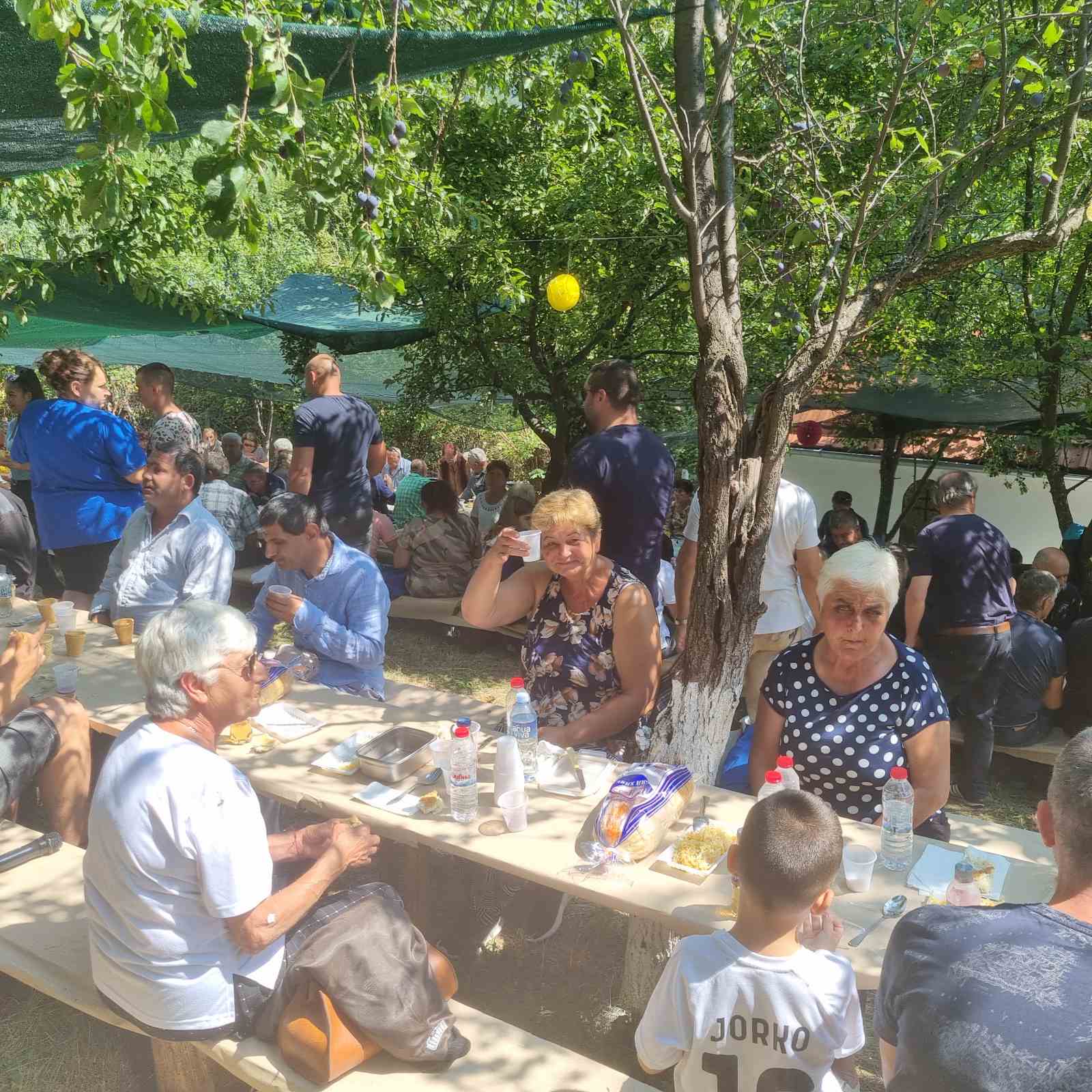 Отец Яне отслужи тържествен водосвет, освети ястията и поръси всички дошли със светена вода. Няколко казана курбан бяха приготвили семейство Стоименови, които всяка година се грижат за всичко по организацията на празника. Около 1000 жители на цялата община се събраха под сенките на десетките дървета в Брежанско на дълги трапези.