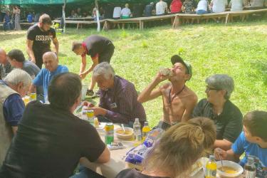 За поредна година стотици жители на село Брежани, техни роднини и приятели от близо и далеч се събраха на голям курбан край село Брежани за Голяма Богородица.