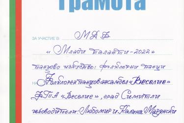 Те взеха участие в поредното издание на Международния детски фестивал „Млади таланти“ – София 2022 година, в който показаха своите страхотни танцови умения и впечатлиха всички, които имаха възможността да се насладят на тяхното изкуство.